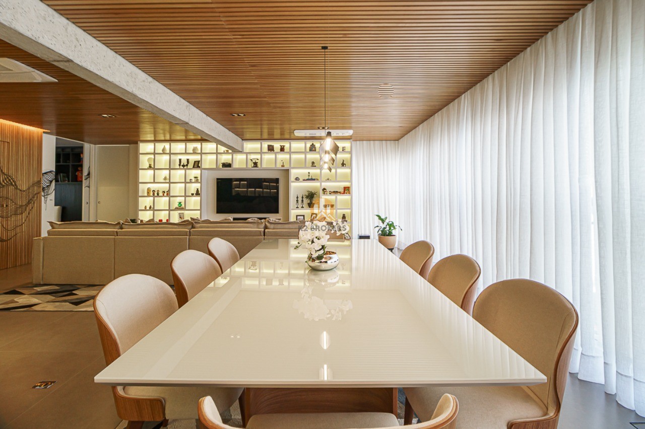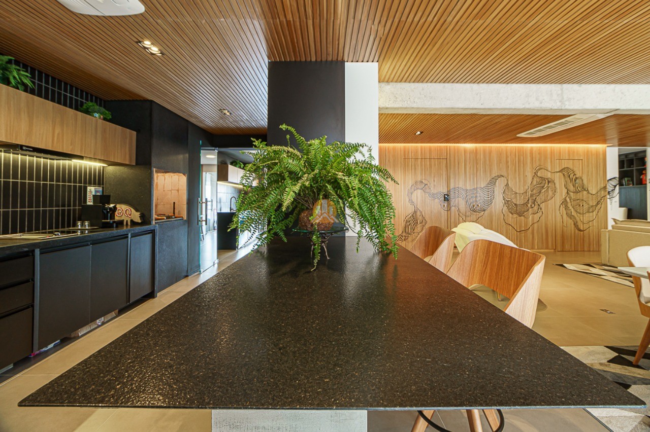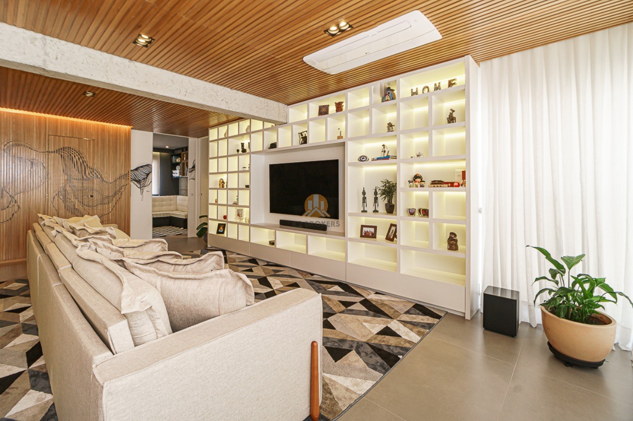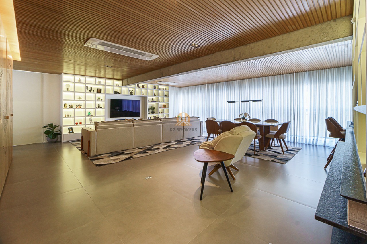 Ao adentrar neste apartamento, você será recebido por um hall social privativo com um jardim vertical e um espelho elegante, criando um ambiente acolhedor e luxuoso logo de cara. O living é espaçoso e integrado à sala de jantar e ao espaço gourmet, todos envidraçados para proporcionar uma vista deslumbrante. O ambiente conta com ar condicionado de teto, jardim vertical, churrasqueira e uma maravilhosa obra de arte do renomado artista plástico Giuliano Martinuzzo.