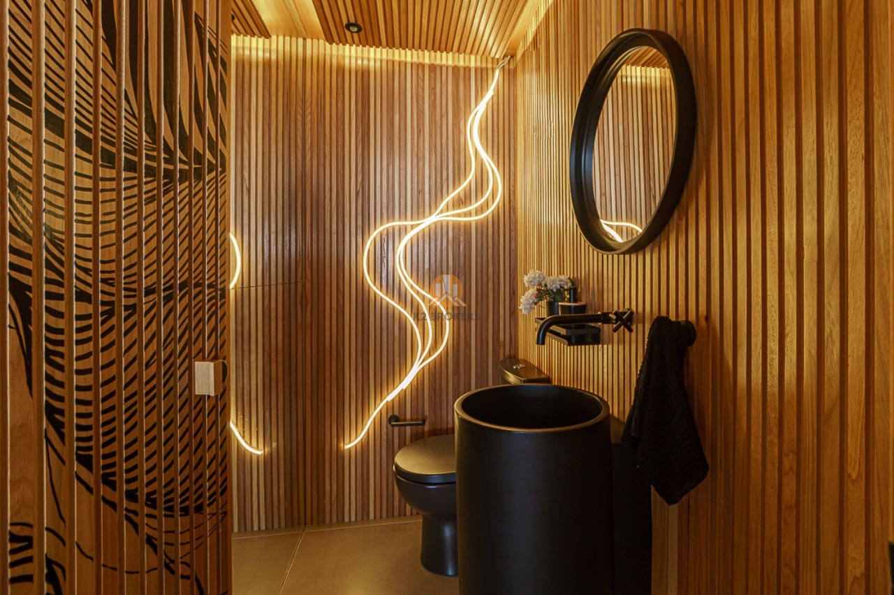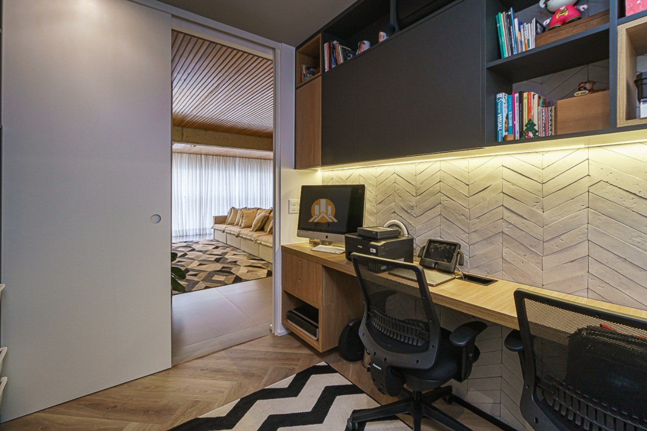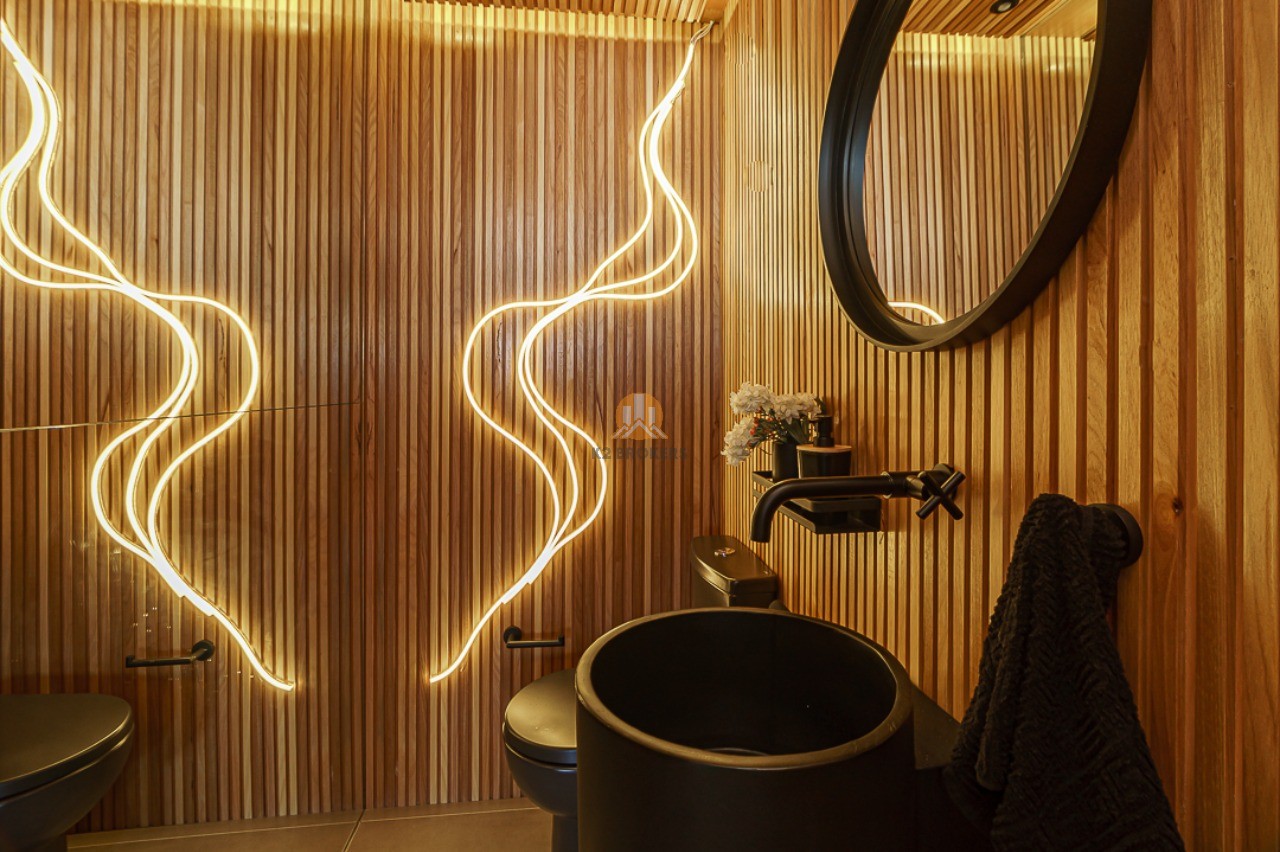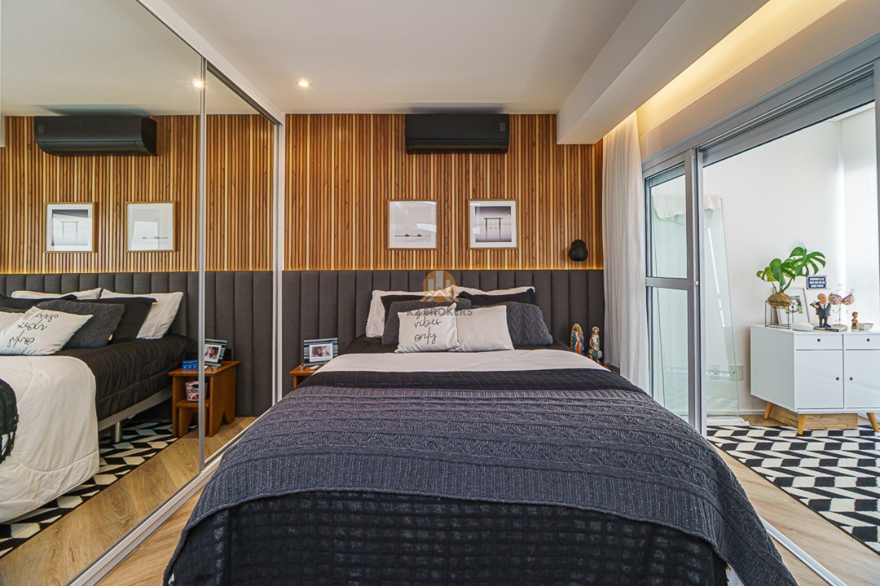 Ao adentrar neste apartamento, você será recebido por um hall social privativo com um jardim vertical e um espelho elegante, criando um ambiente acolhedor e luxuoso logo de cara. O living é espaçoso e integrado à sala de jantar e ao espaço gourmet, todos envidraçados para proporcionar uma vista deslumbrante. O ambiente conta com ar condicionado de teto, jardim vertical, churrasqueira e uma maravilhosa obra de arte do renomado artista plástico Giuliano Martinuzzo.