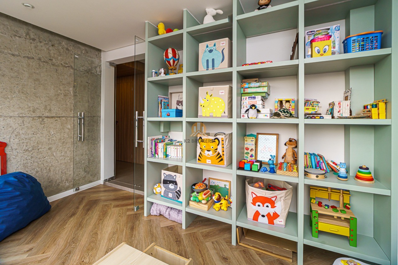 A cozinha é ampla e funcional, a lavanderia é espaçosa e a brinquedoteca foi montada em uma das varandas. O condomínio oferece uma infraestrutura completa com piscina aquecida, brinquedoteca, playground, quadras esportivas, academia, salão de jogos, salão de festas, área gourmet com churrasqueira, pet place e muito mais.