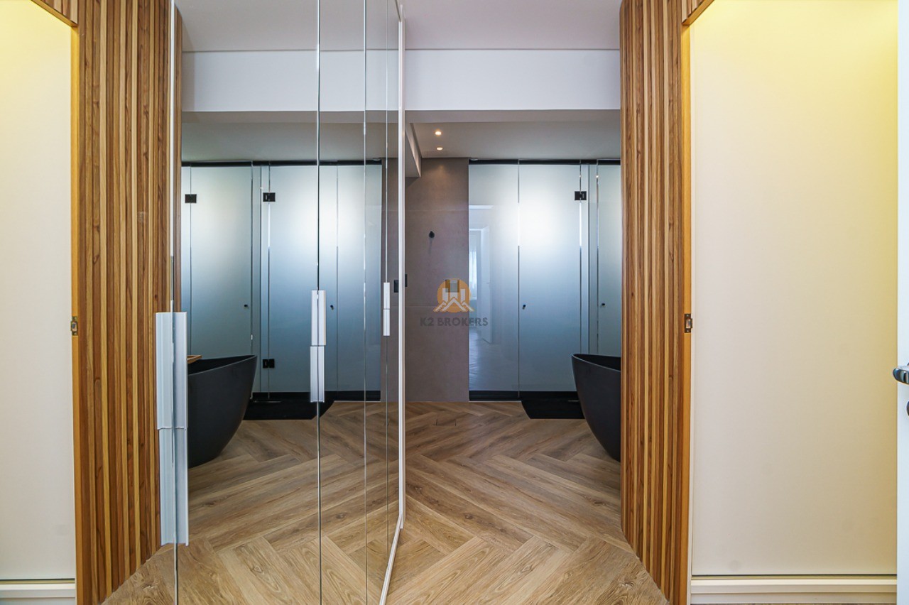 As suítes são verdadeiros refúgios de conforto, equipadas com ar condicionado e automação nas janelas. A suíte master é um verdadeiro luxo, com closet, banheira de pedra natural negra e varanda com escritório. O banheiro da suíte master possui vidro inteligente e privada eletrônica estilo japonês.