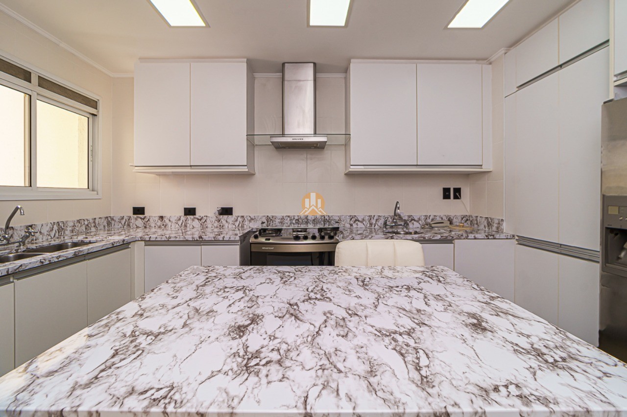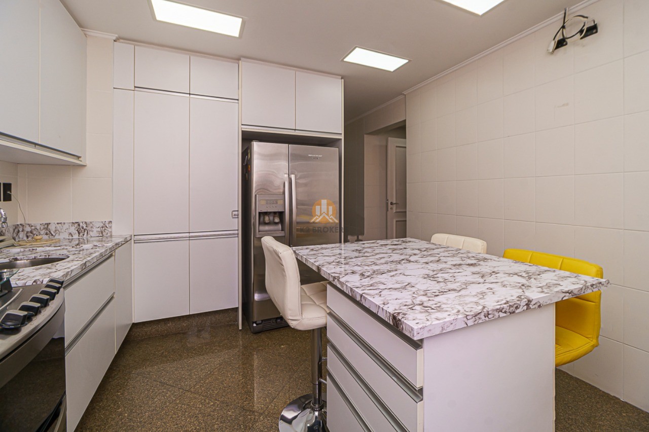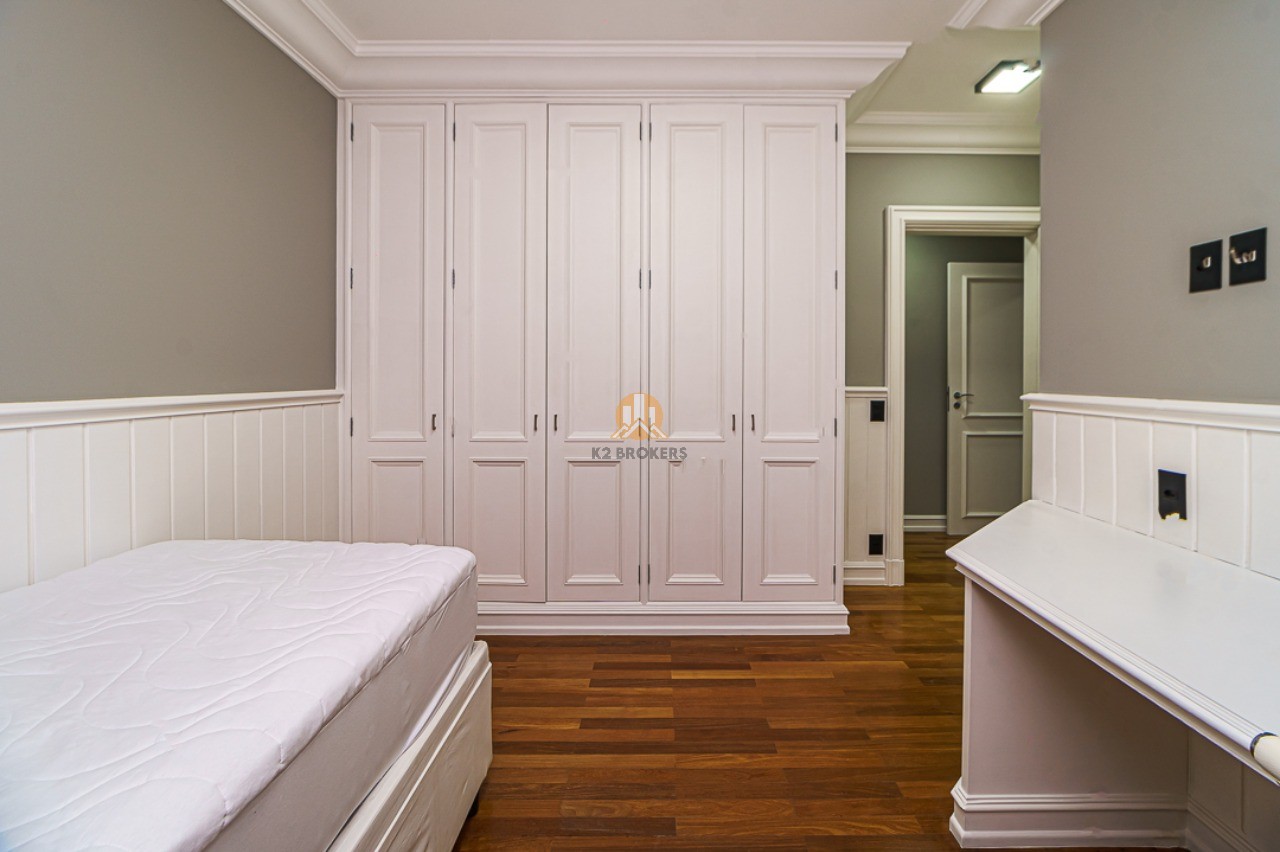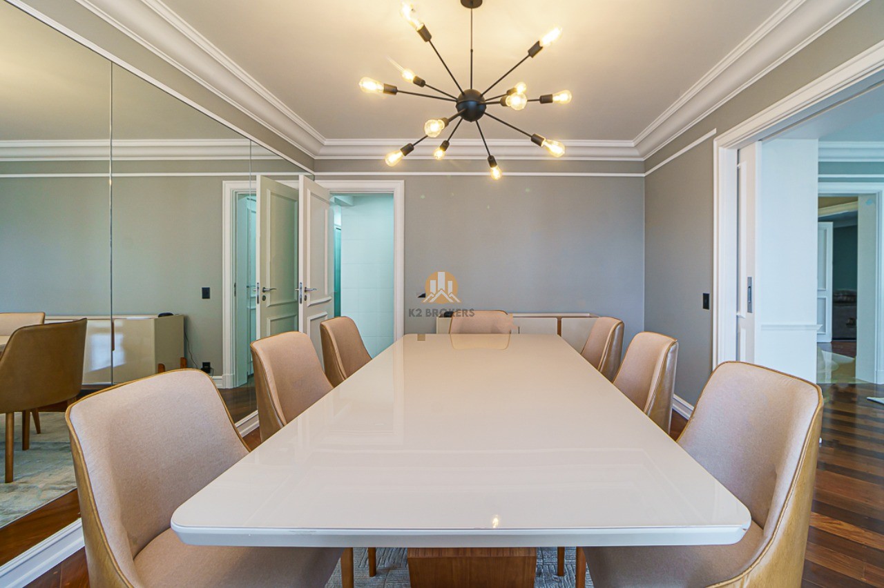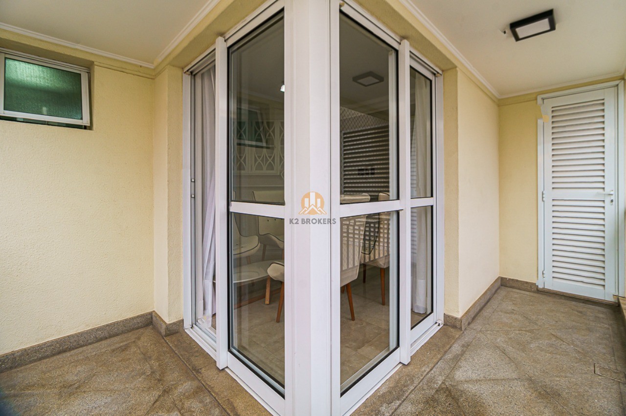 Todos os ambientes possuem ar condicionado e armários de marcenaria de alta qualidade, garantindo praticidade e elegância. A cozinha é equipada com ilha, fogão e coifa, além de uma ampla e arejada área de serviço.