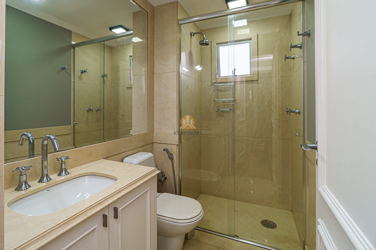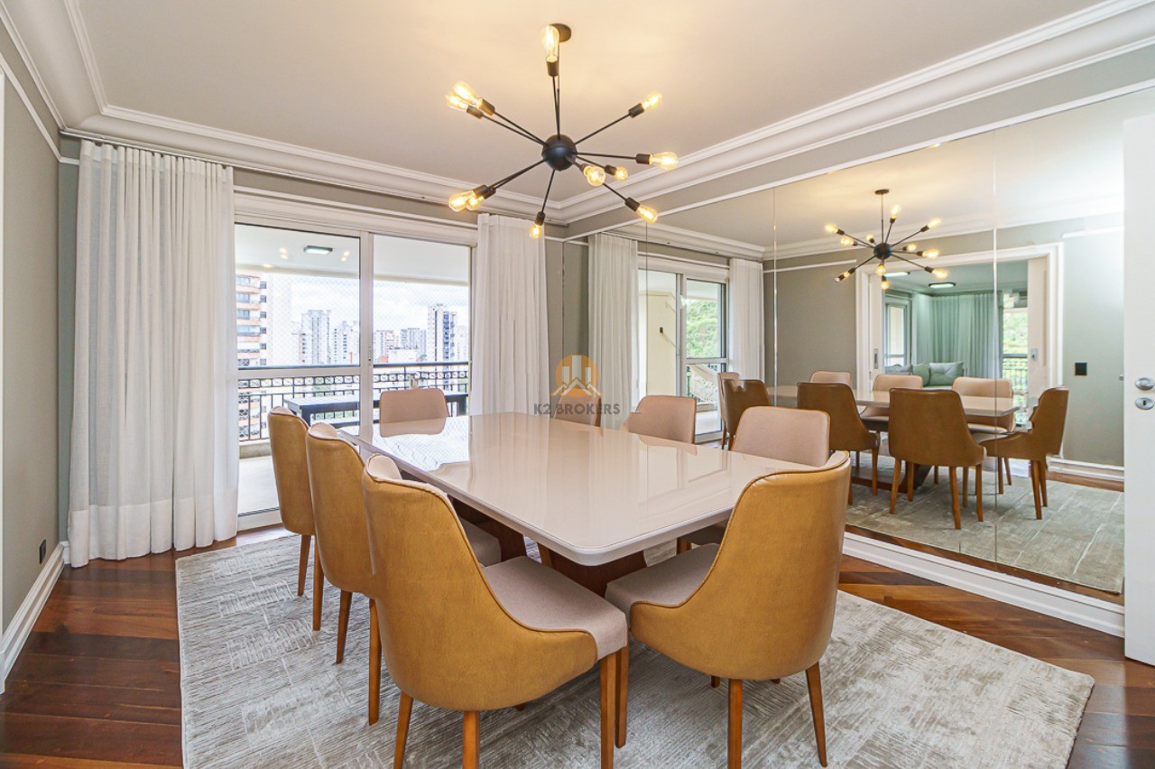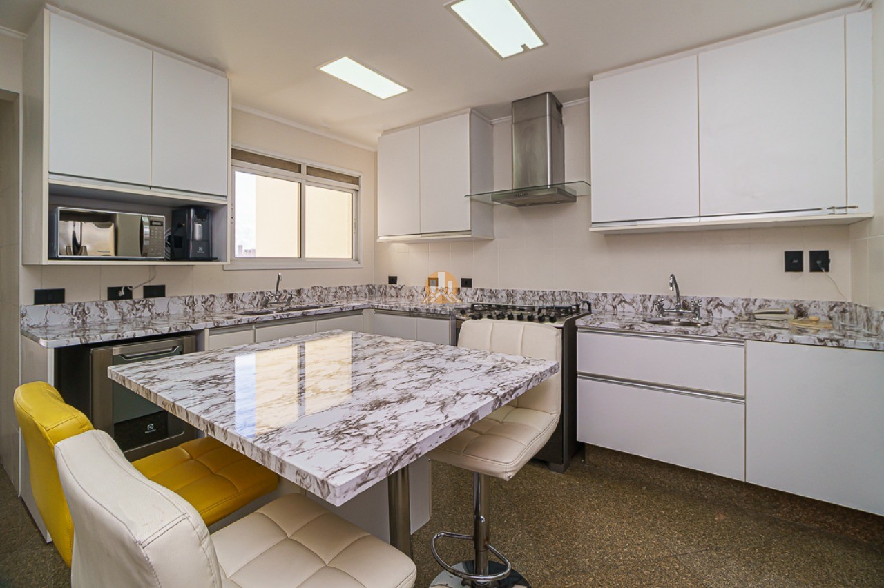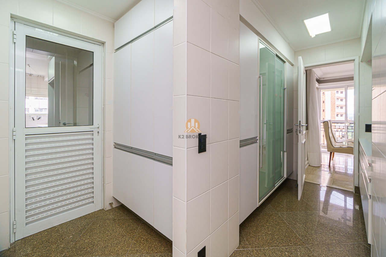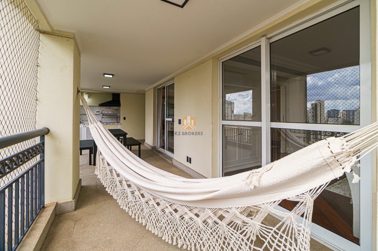 Todos os ambientes possuem ar condicionado e armários de marcenaria de alta qualidade, garantindo praticidade e elegância. A cozinha é equipada com ilha, fogão e coifa, além de uma ampla e arejada área de serviço.