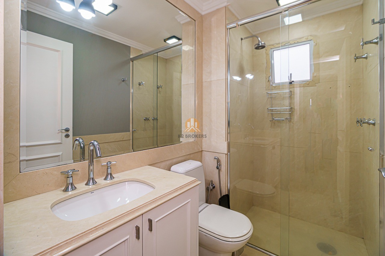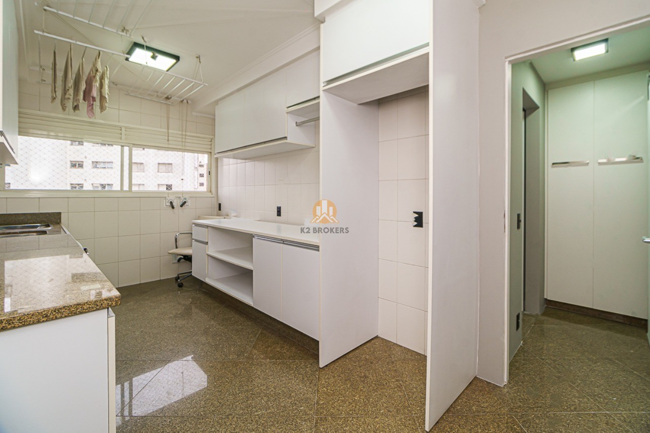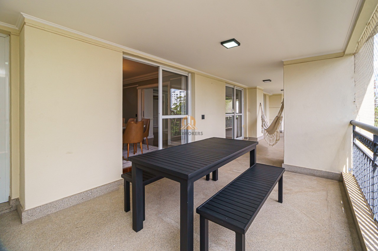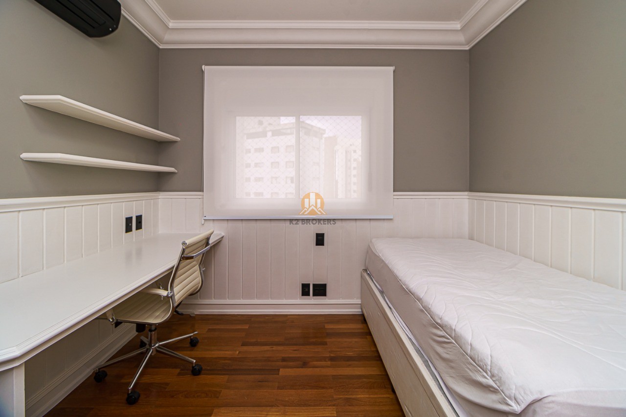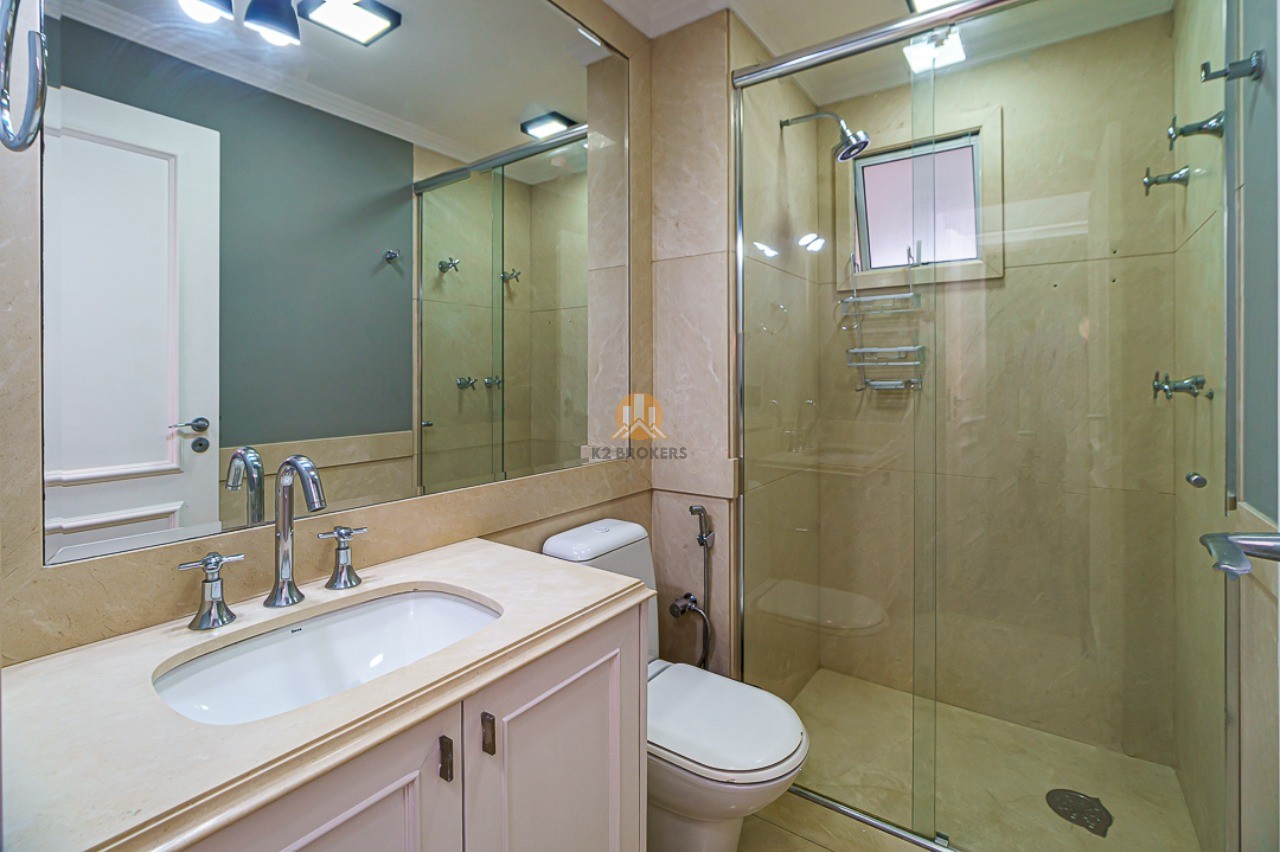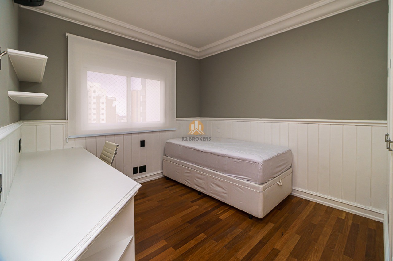 Todos os ambientes possuem ar condicionado e armários de marcenaria de alta qualidade, garantindo praticidade e elegância. A cozinha é equipada com ilha, fogão e coifa, além de uma ampla e arejada área de serviço.