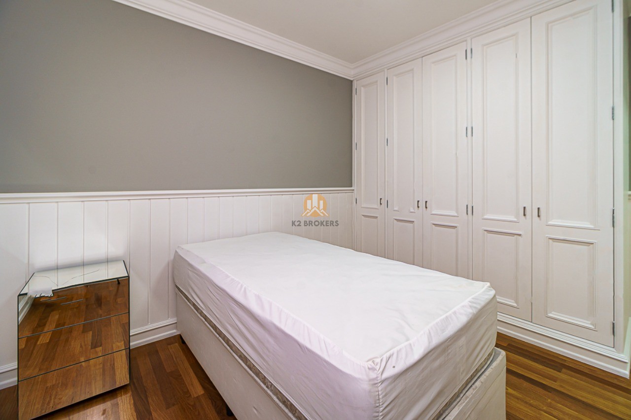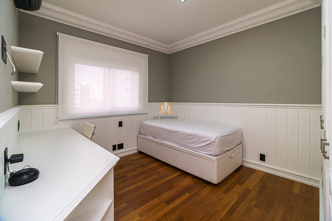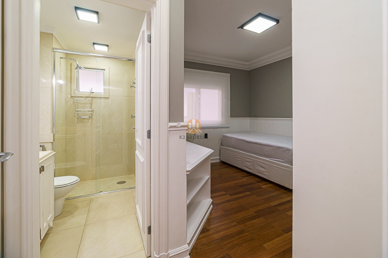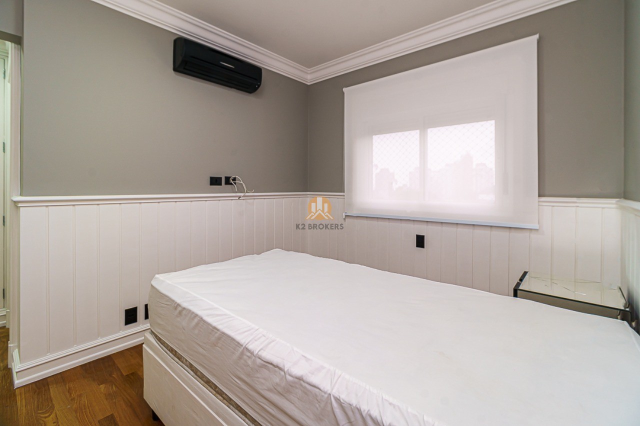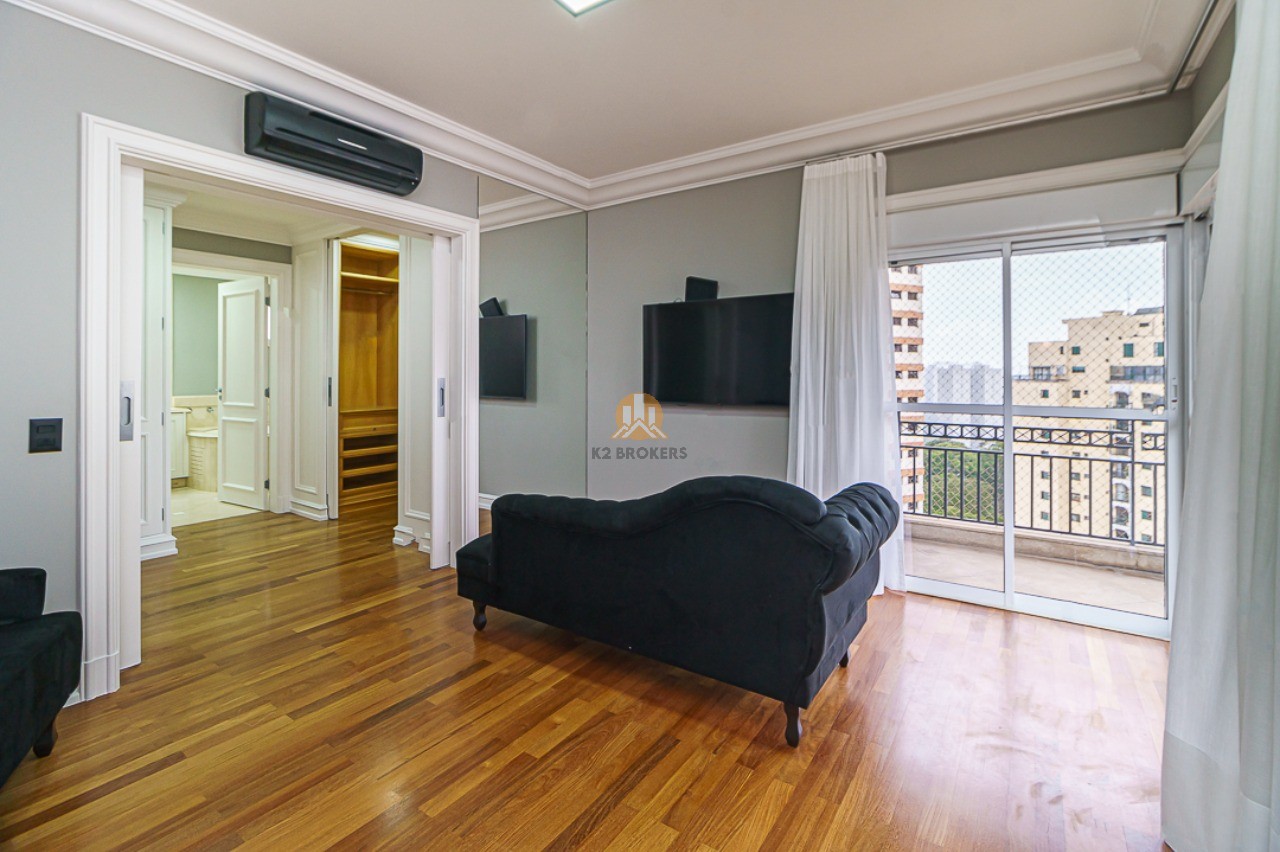 Todos os ambientes possuem ar condicionado e armários de marcenaria de alta qualidade, garantindo praticidade e elegância. A cozinha é equipada com ilha, fogão e coifa, além de uma ampla e arejada área de serviço.