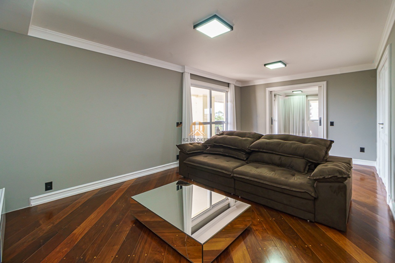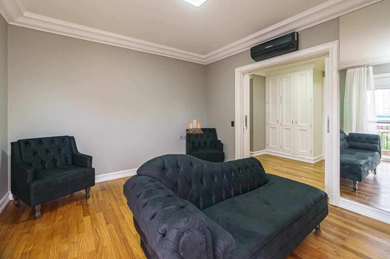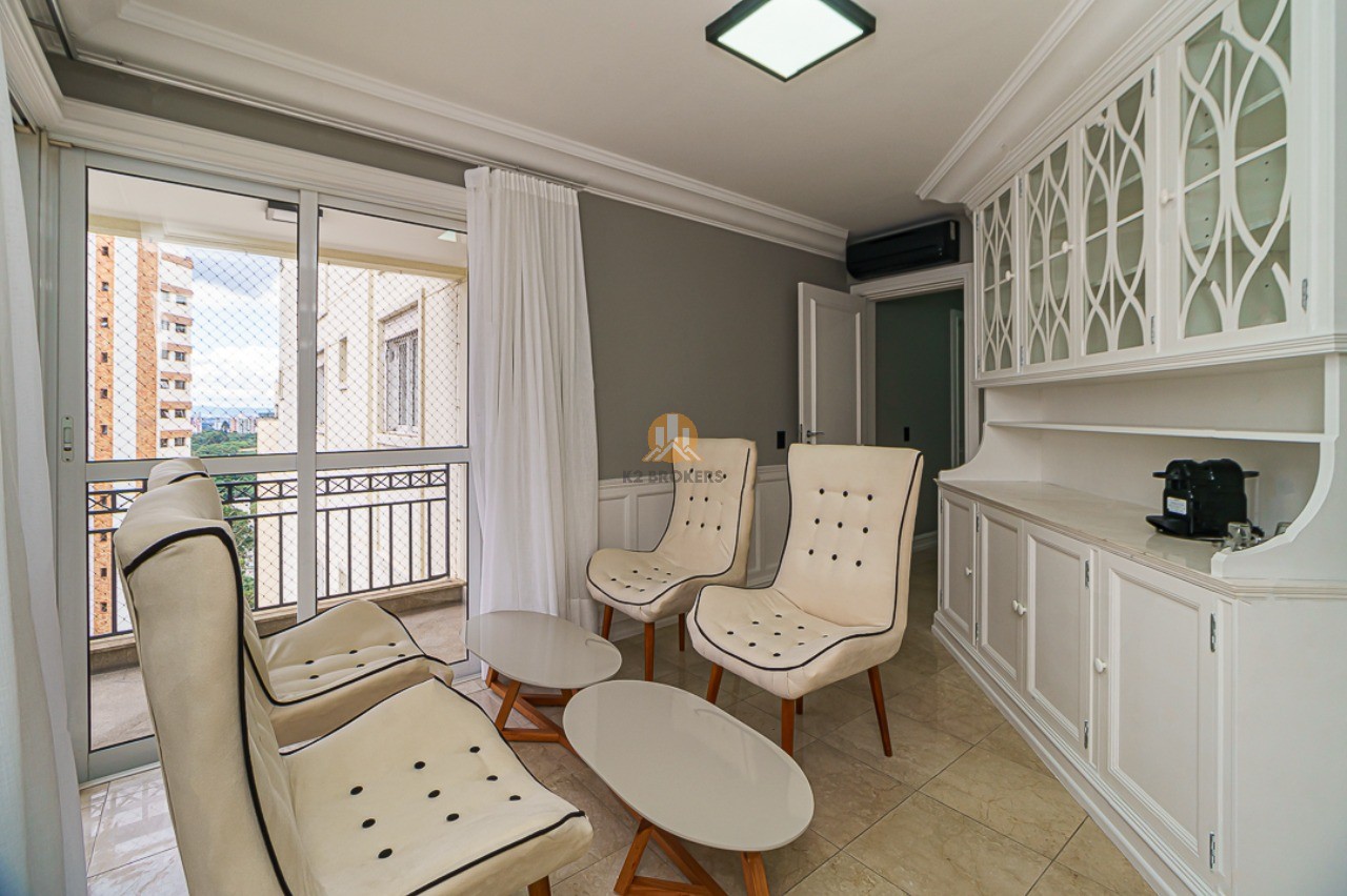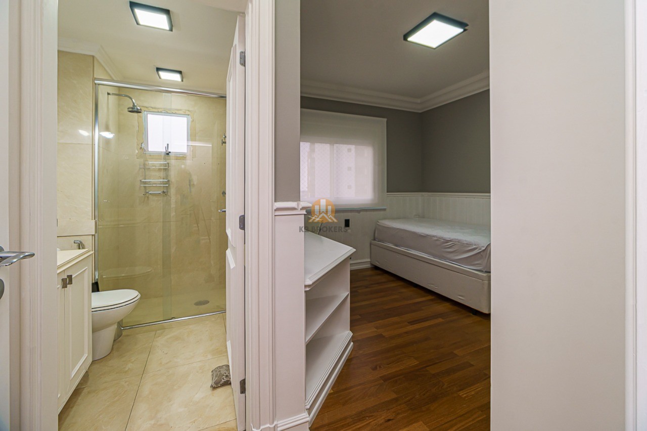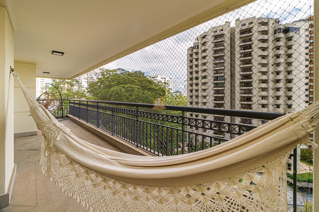 Todos os ambientes possuem ar condicionado e armários de marcenaria de alta qualidade, garantindo praticidade e elegância. A cozinha é equipada com ilha, fogão e coifa, além de uma ampla e arejada área de serviço.