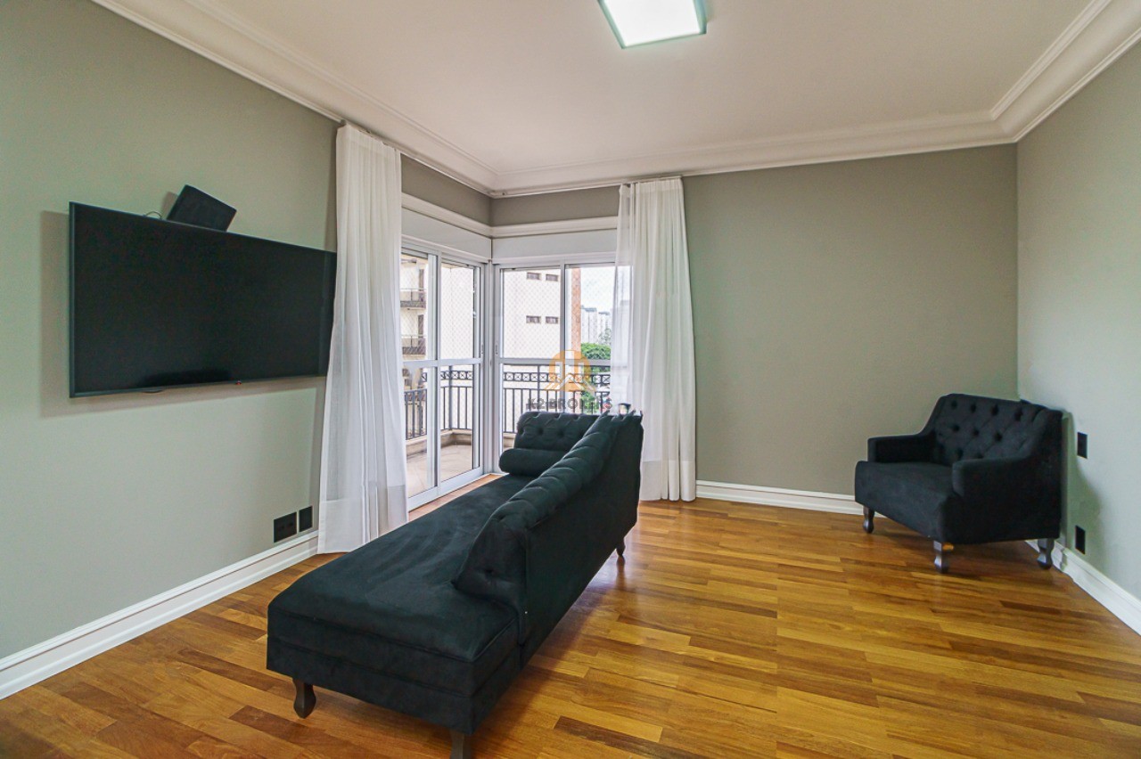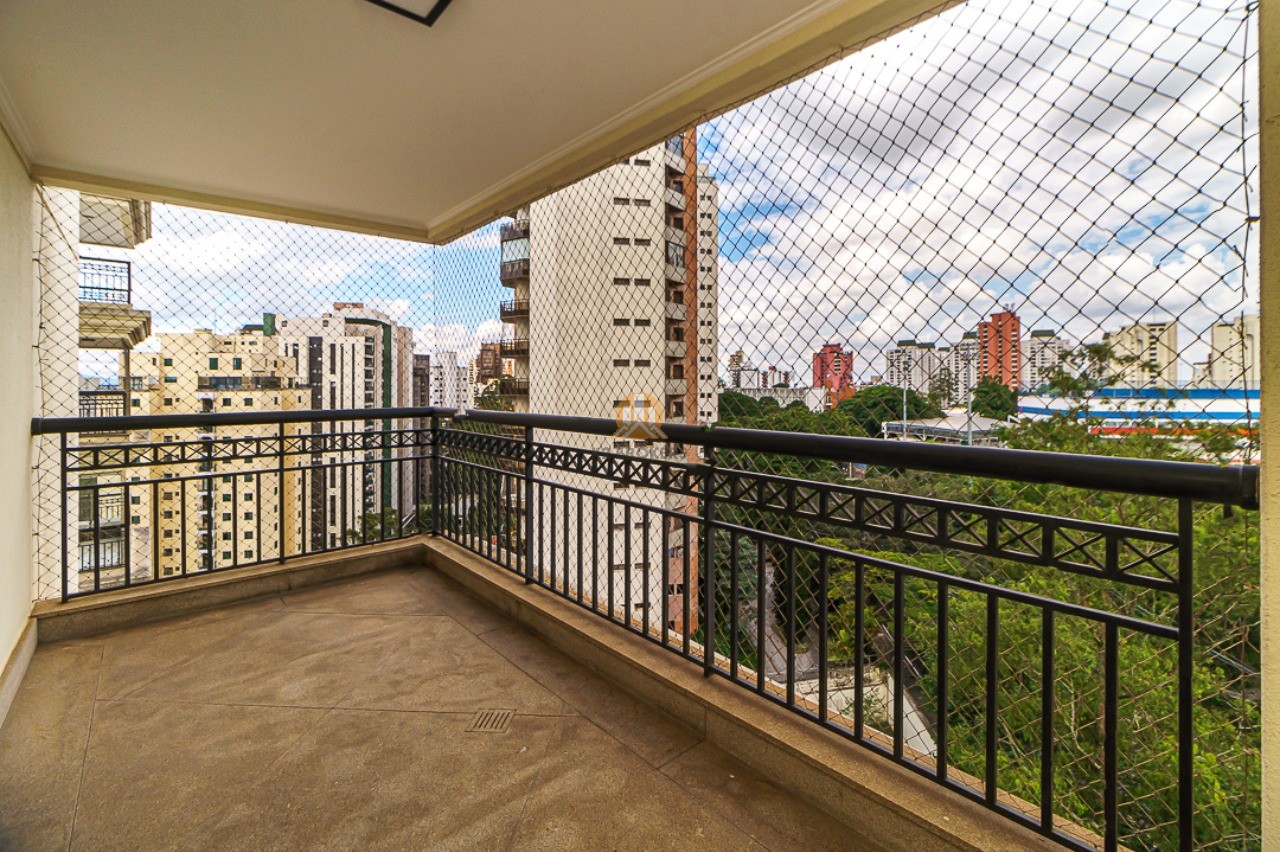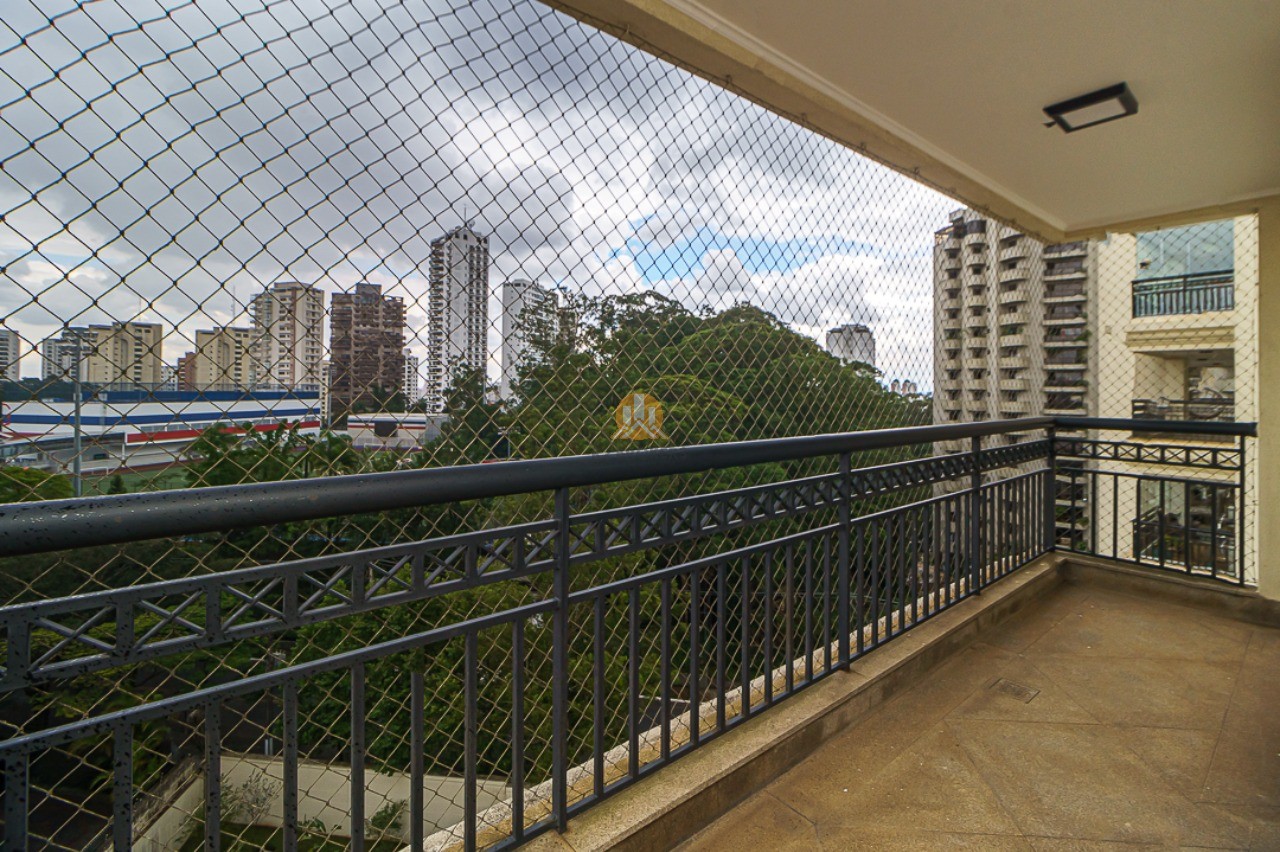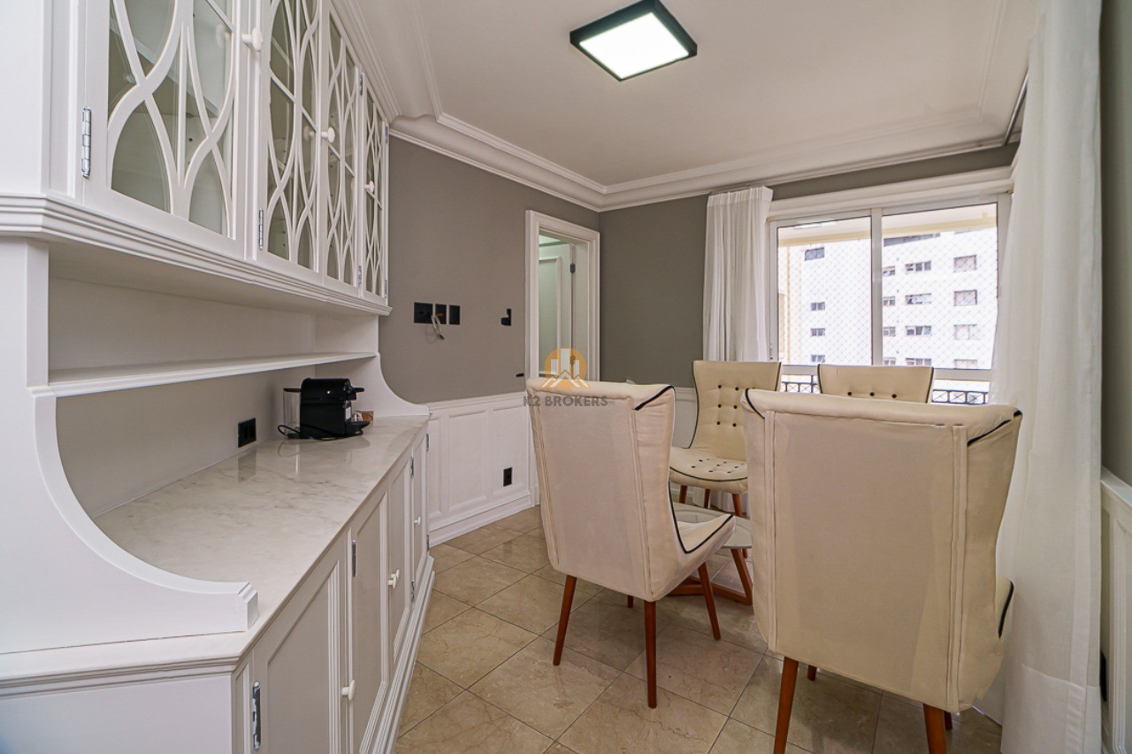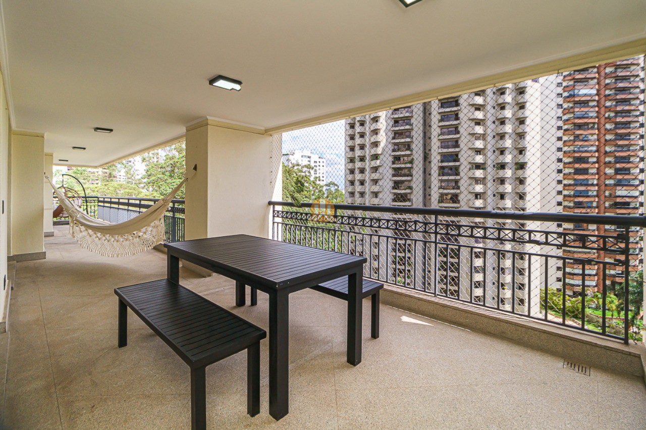 Todos os ambientes possuem ar condicionado e armários de marcenaria de alta qualidade, garantindo praticidade e elegância. A cozinha é equipada com ilha, fogão e coifa, além de uma ampla e arejada área de serviço.