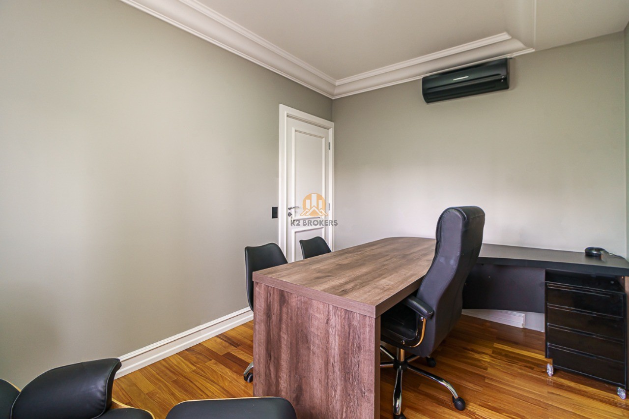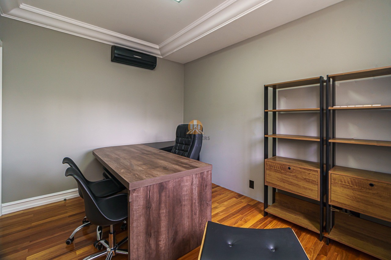 Na área íntima, são 4 suítes, sendo uma master com 2 closets e banheiro com hidromassagem, garantindo privacidade e conforto. Além disso, possui um escritório para aqueles que necessitam de um espaço tranquilo para trabalhar ou estudar.