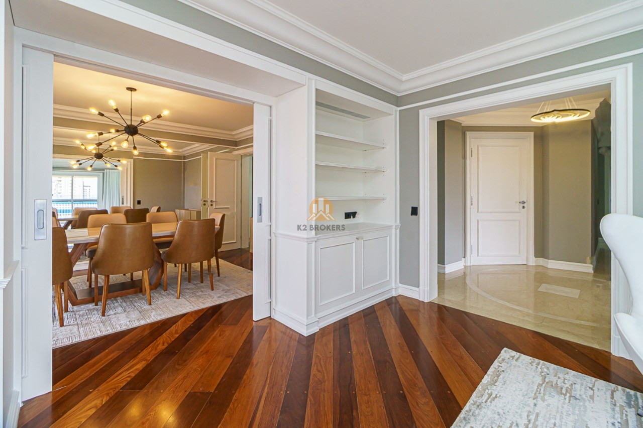 Com 401 m2 de área total, este apartamento único no andar oferece privacidade e exclusividade. São disponibilizadas 5 vagas demarcadas e um depósito para sua comodidade.