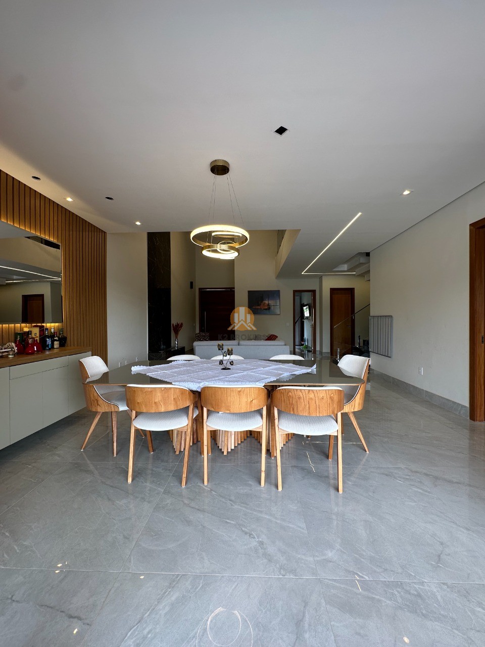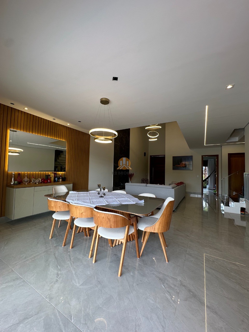 Com 5 suítes climatizadas, incluindo uma suíte no térreo e uma suíte master com closet e hidromassagem, a casa é perfeita para quem busca espaço, privacidade e conforto. Os ambientes são amplamente integrados, com pé-direito duplo e uma cozinha moderna com ilha central e marcenaria de alta qualidade. A área gourmet é um convite para receber amigos, com sistema de som integrado e uma piscina com aquecimento solar.