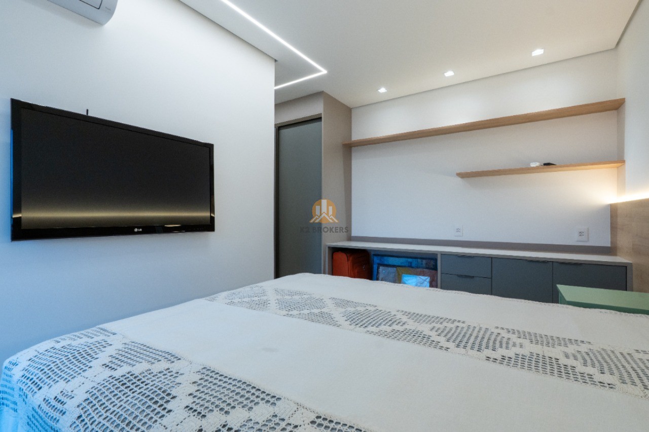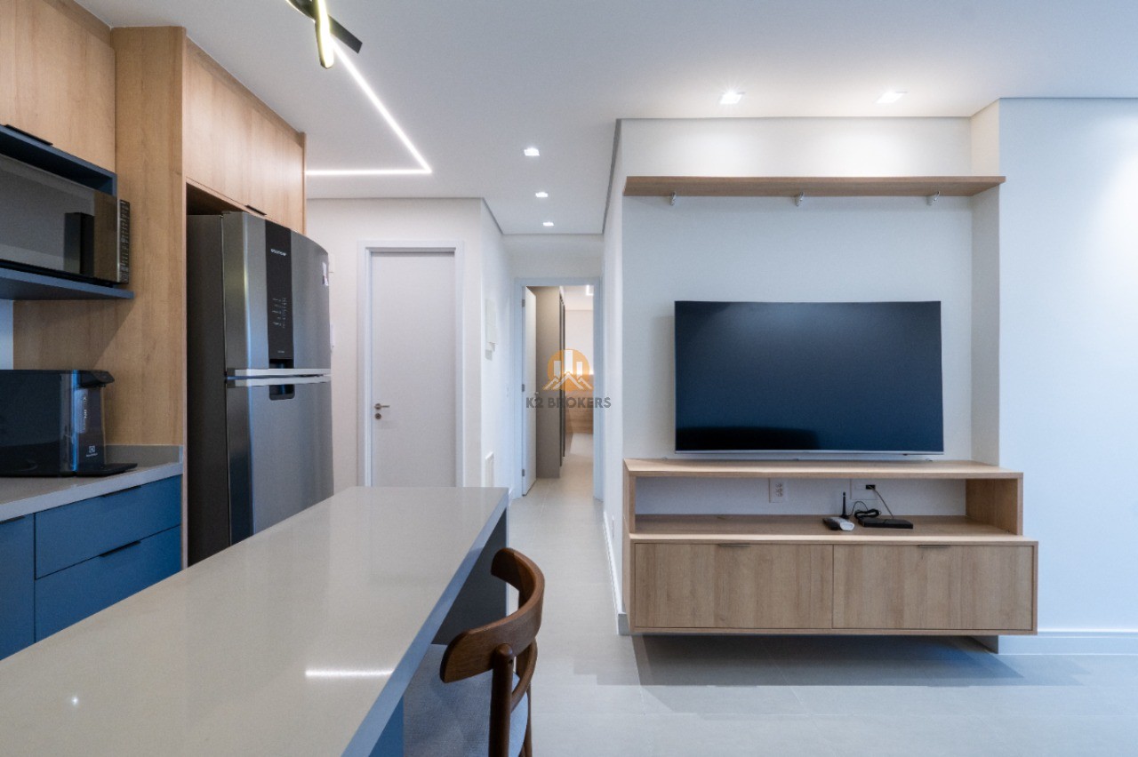 O apartamento está pronto para morar, mobiliado com bom gosto e com um espaçoso home office para trabalhar com estilo e foco.