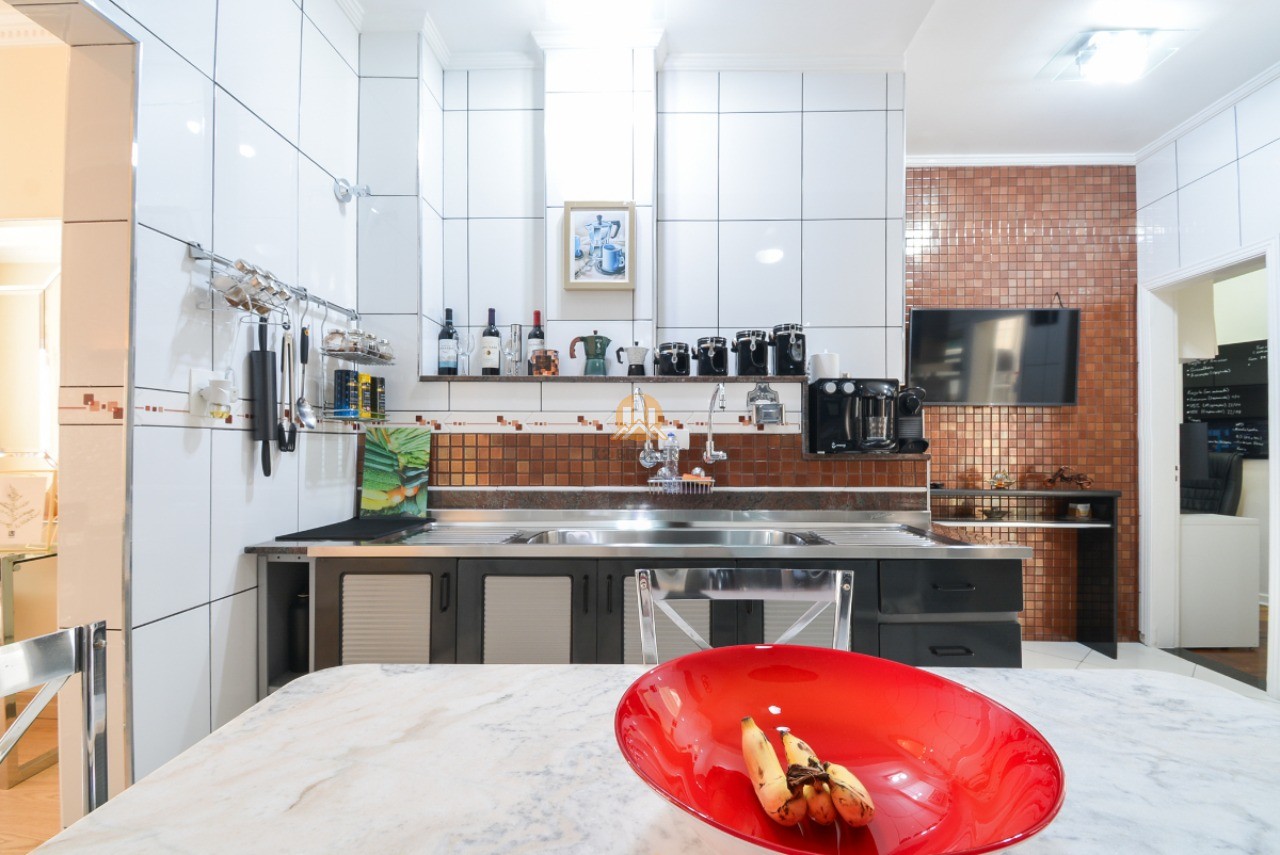 A cozinha é funcional, com ótima circulação e integrada à área de serviço, que ainda conta com um banheiro de serviço, um diferencial cada vez mais raro na região. E para completar, o apartamento possui 1 vaga de garagem.