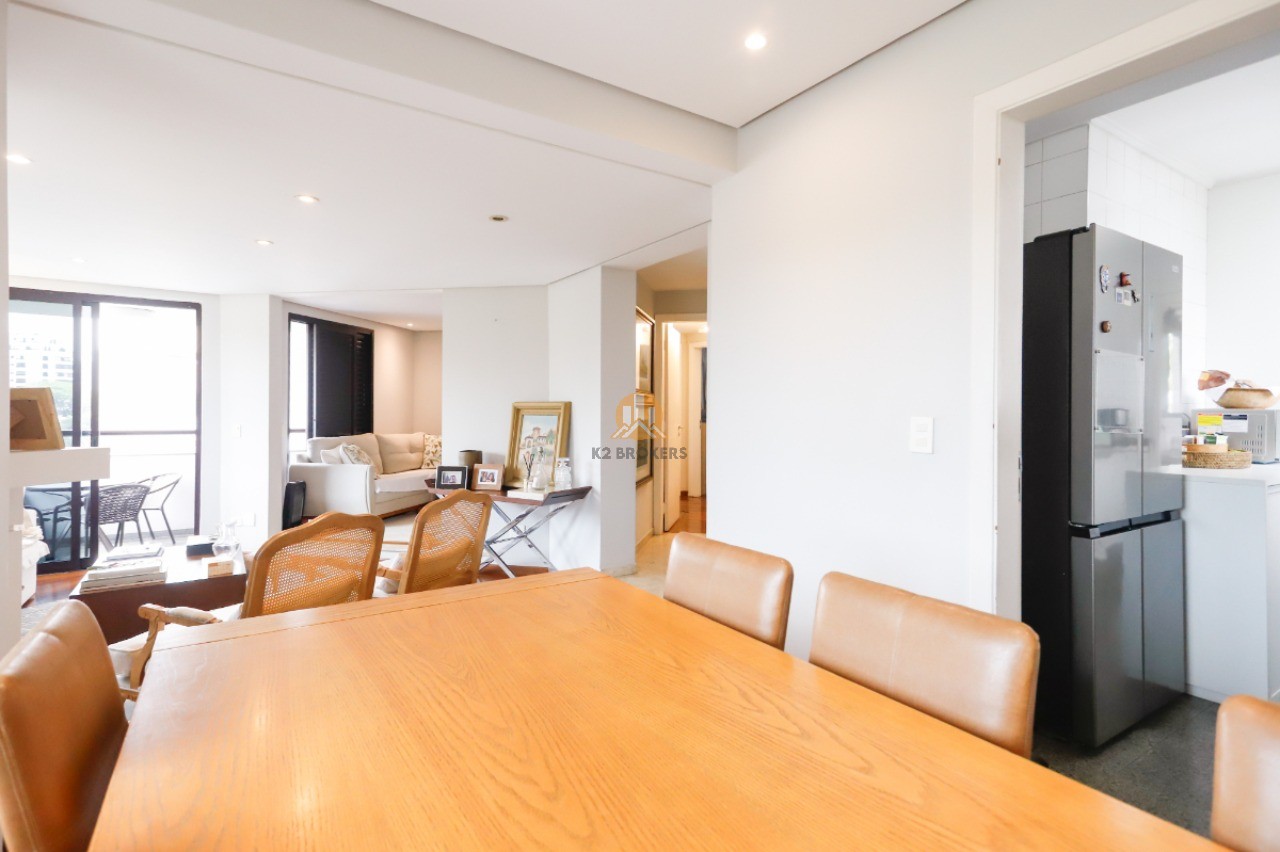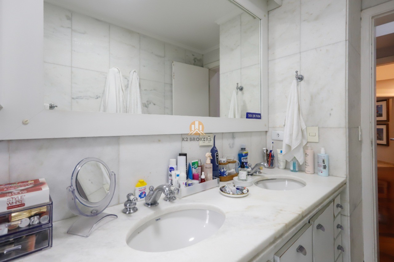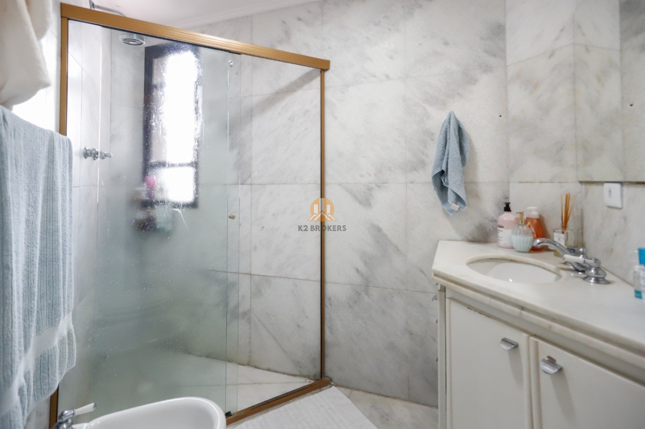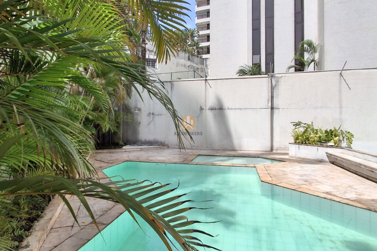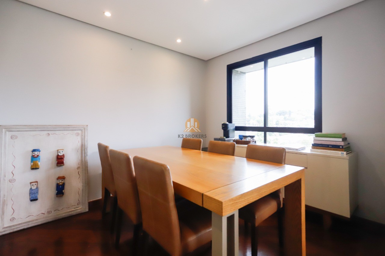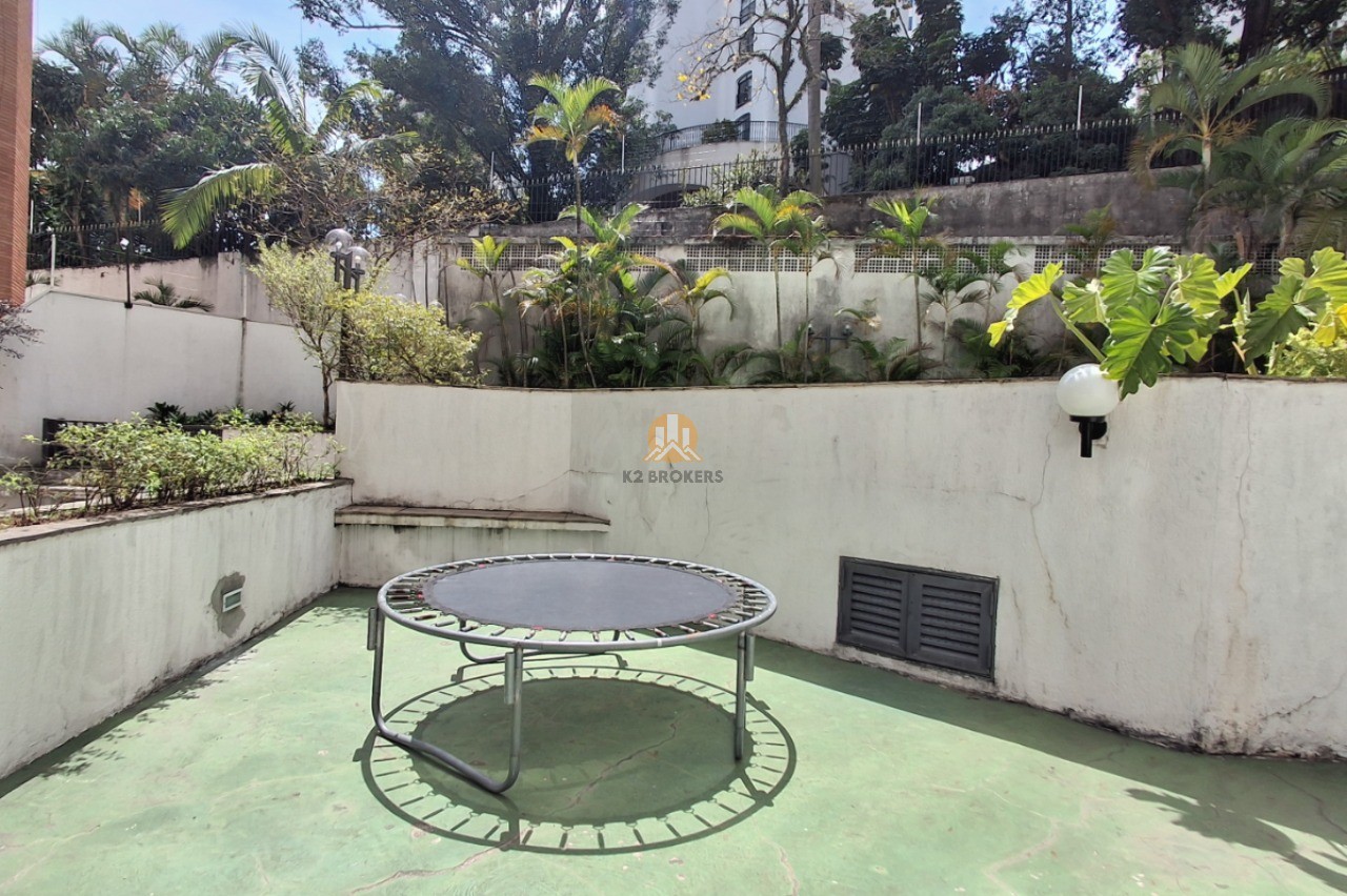 Possui sala ampla com lareira e sacada, lavabo, cozinha com área de serviço independente, dependência de empregada com banheiro, além de 3 vagas de garagem e depósito privativo.