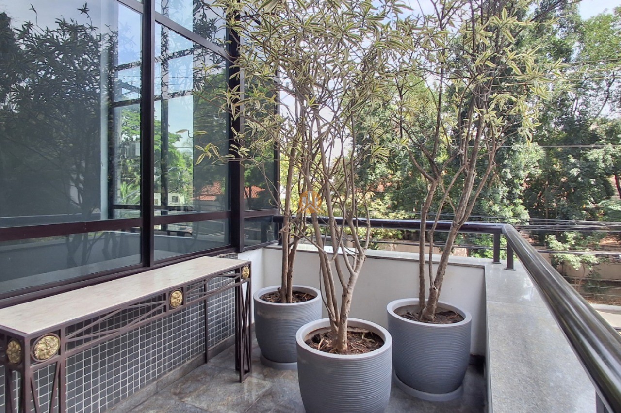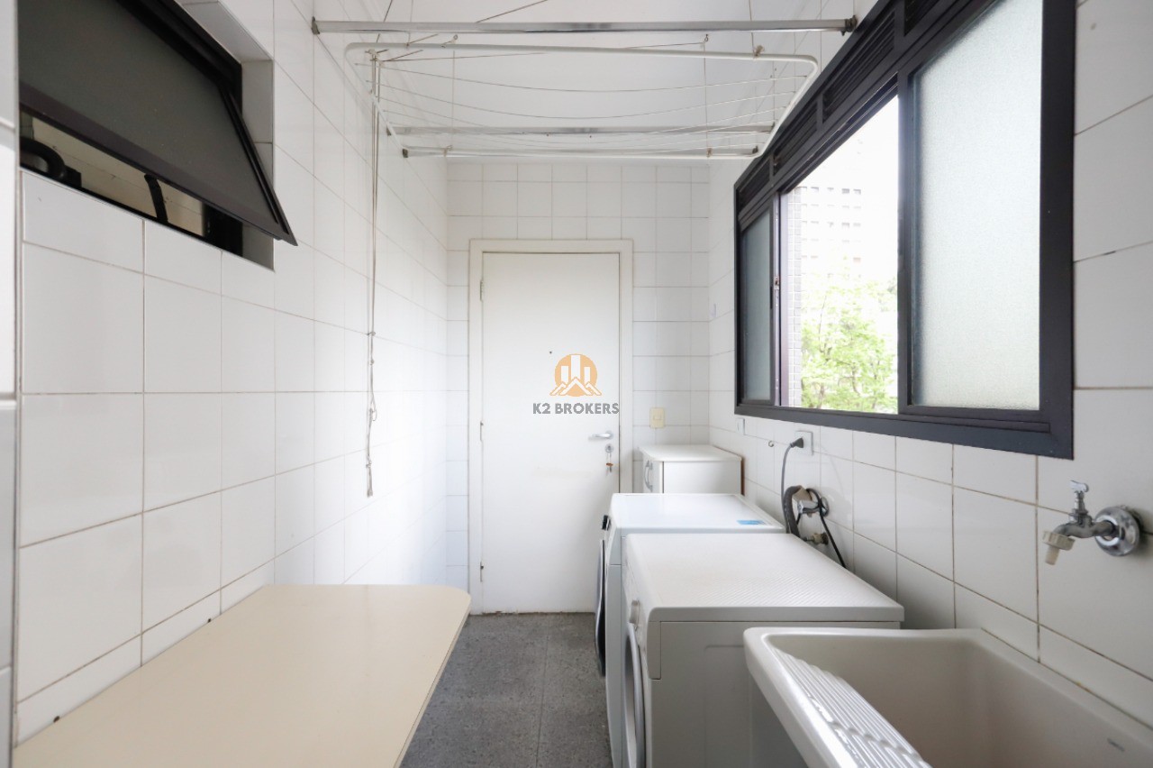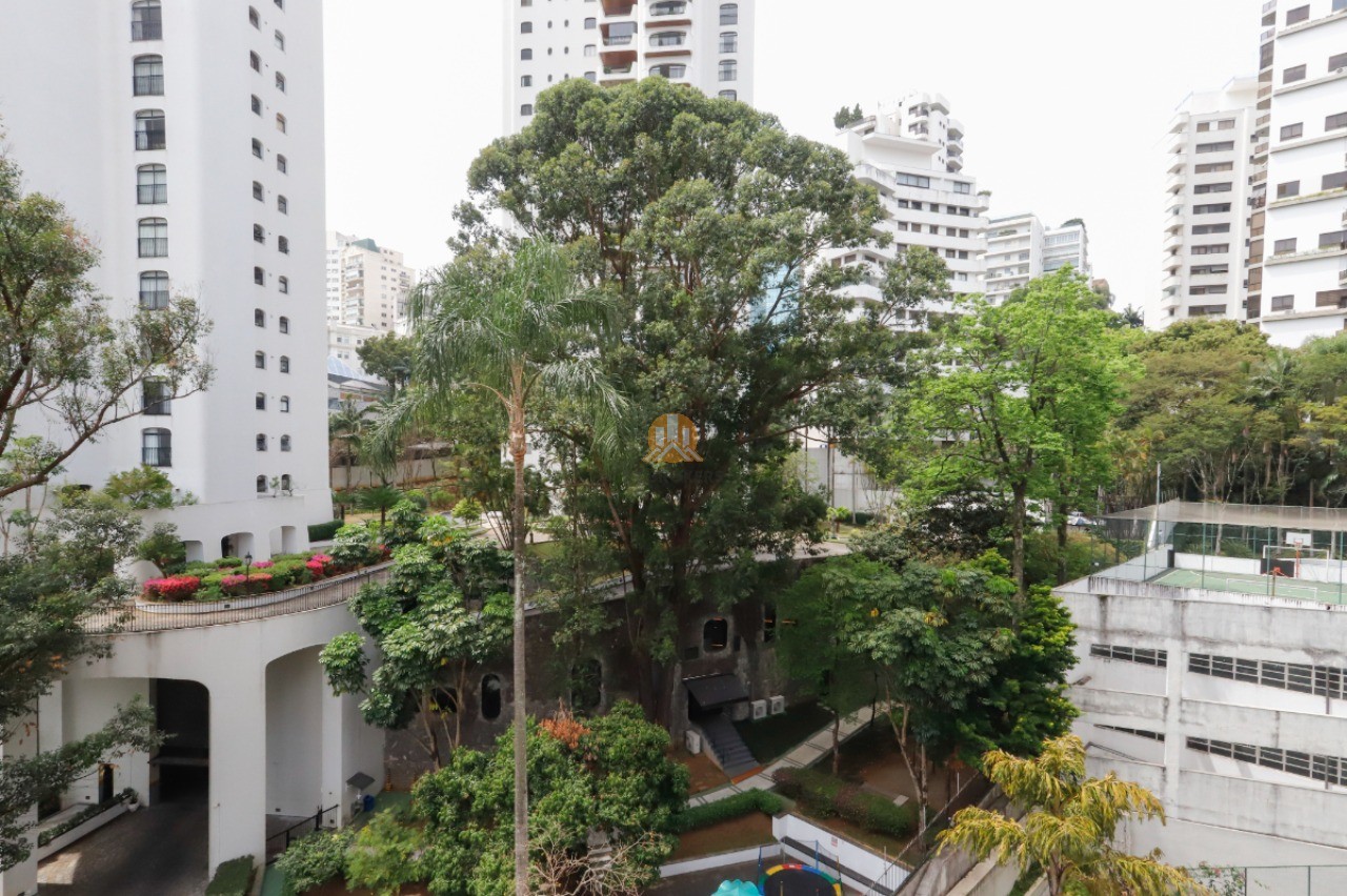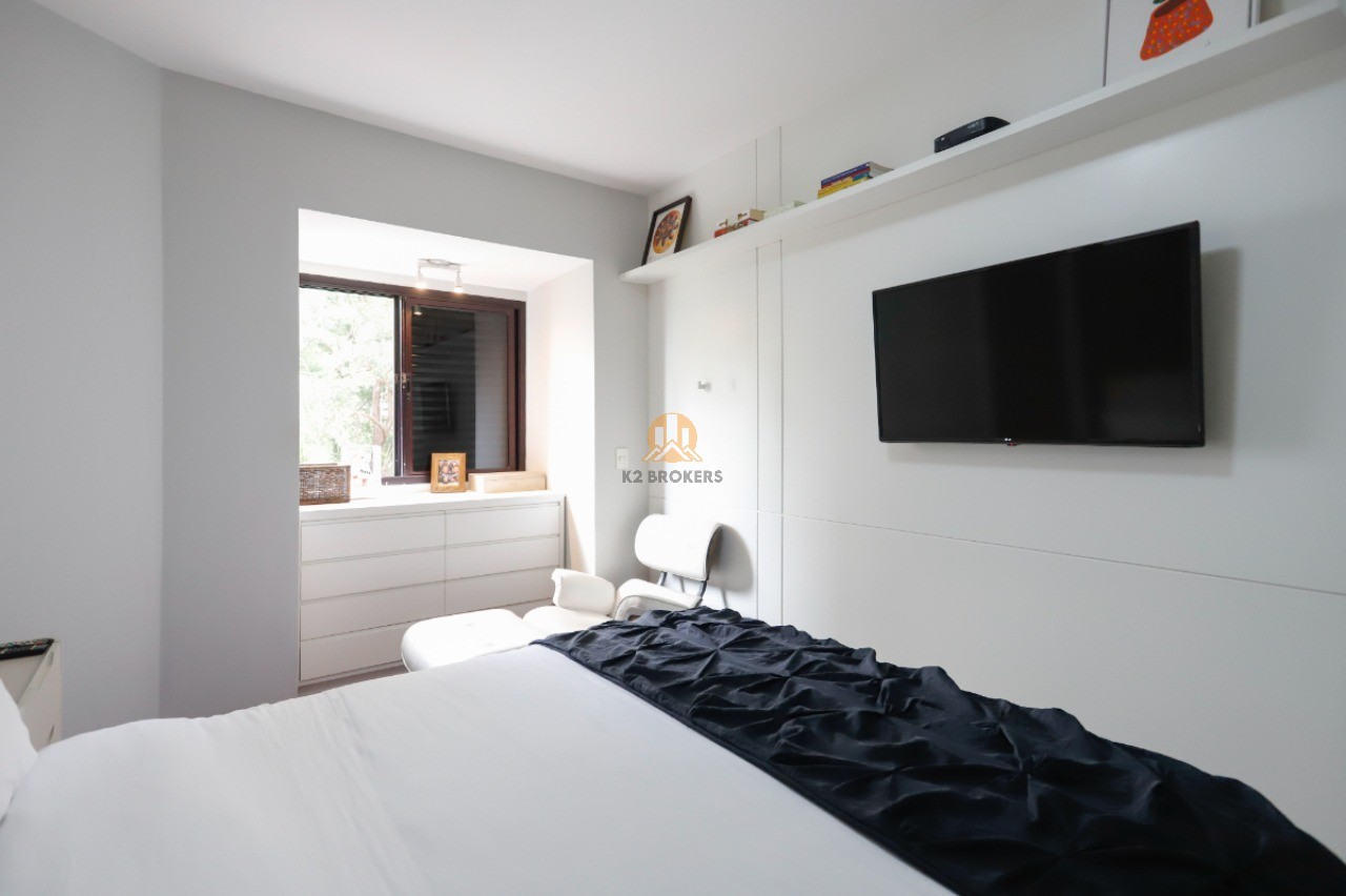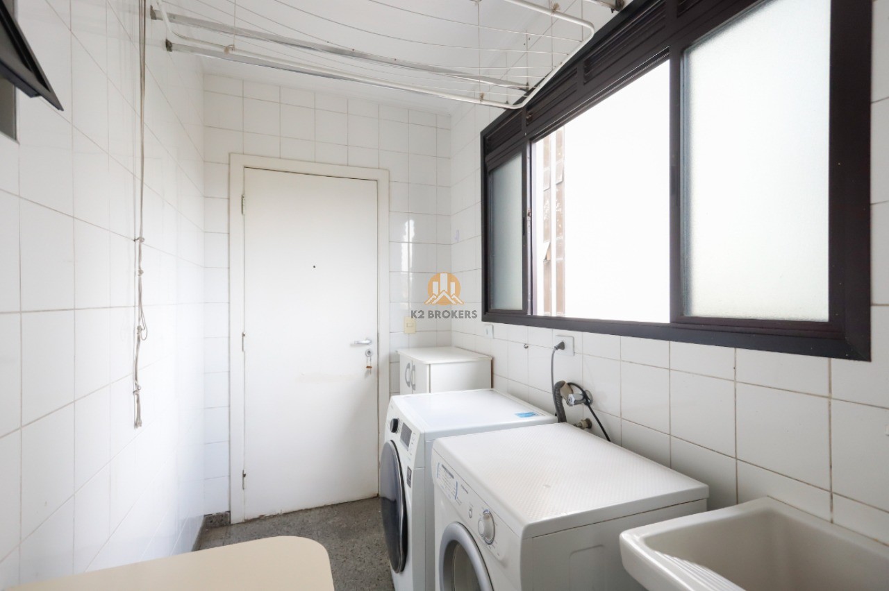 Possui sala ampla com lareira e sacada, lavabo, cozinha com área de serviço independente, dependência de empregada com banheiro, além de 3 vagas de garagem e depósito privativo.