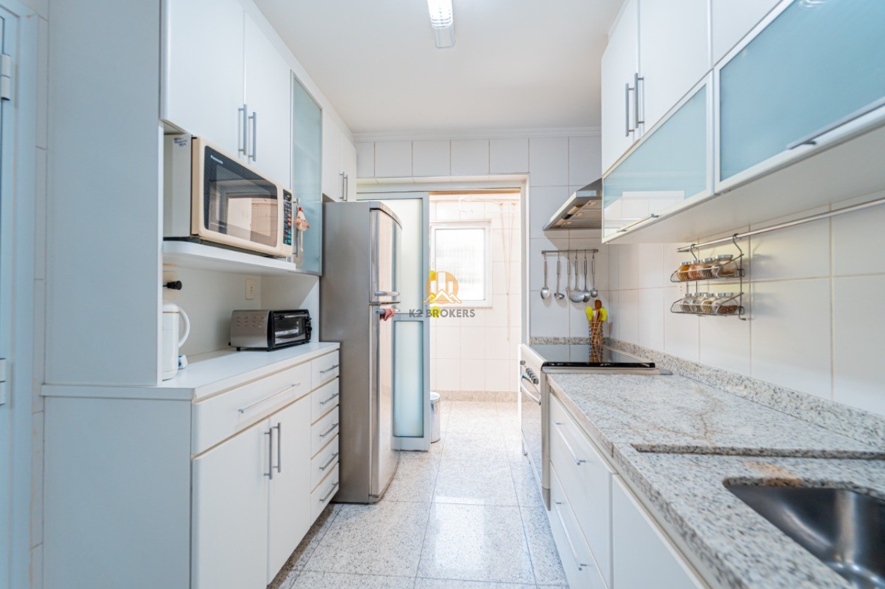 Com 123m² muito bem distribuídos, o imóvel conta com um living para 2 ambientes com piso em porcelanato, cozinha espaçosa repleta de armários planejados, área de serviço com armários e entrada de serviço. Além disso, o condomínio possui salão de festas, espaço de convivência, playground infantil a ser instalado, portaria eletrônica e zeladoria.