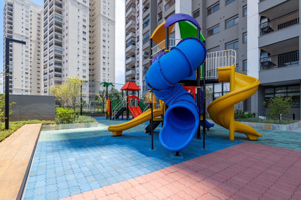O condomínio oferece lazer completo com piscina, academia, salão de festas, brinquedoteca, espaço gourmet com churrasqueiras, playground, quadra recreativa, espaço pet, portaria 24h e segurança total.