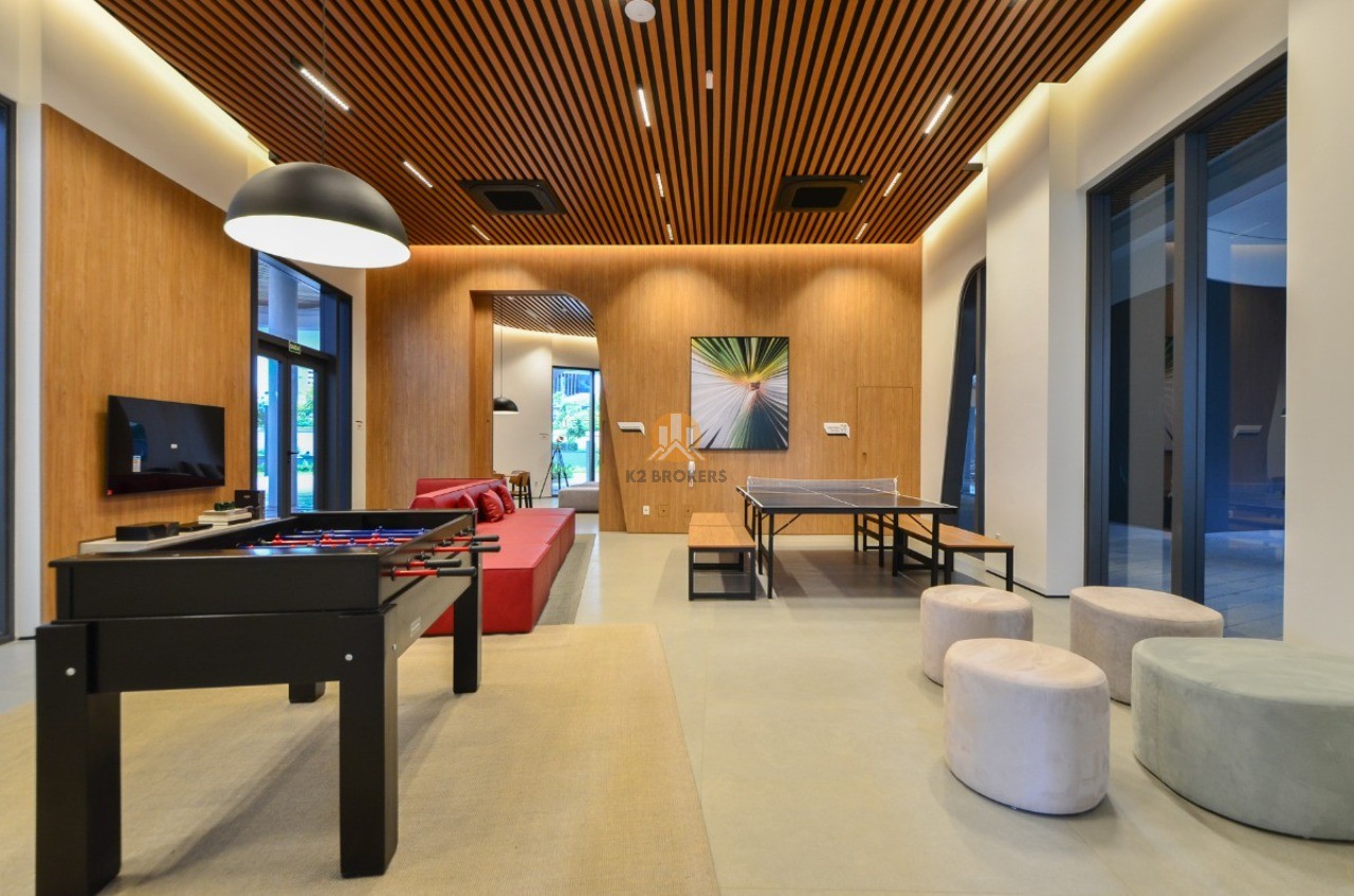 Além disso, o condomínio oferece lazer completo de alto padrão, com piscinas, academia, salões de festas, salas de estudos, playground e acesso direto ao parque com lago e restaurantes renomados.