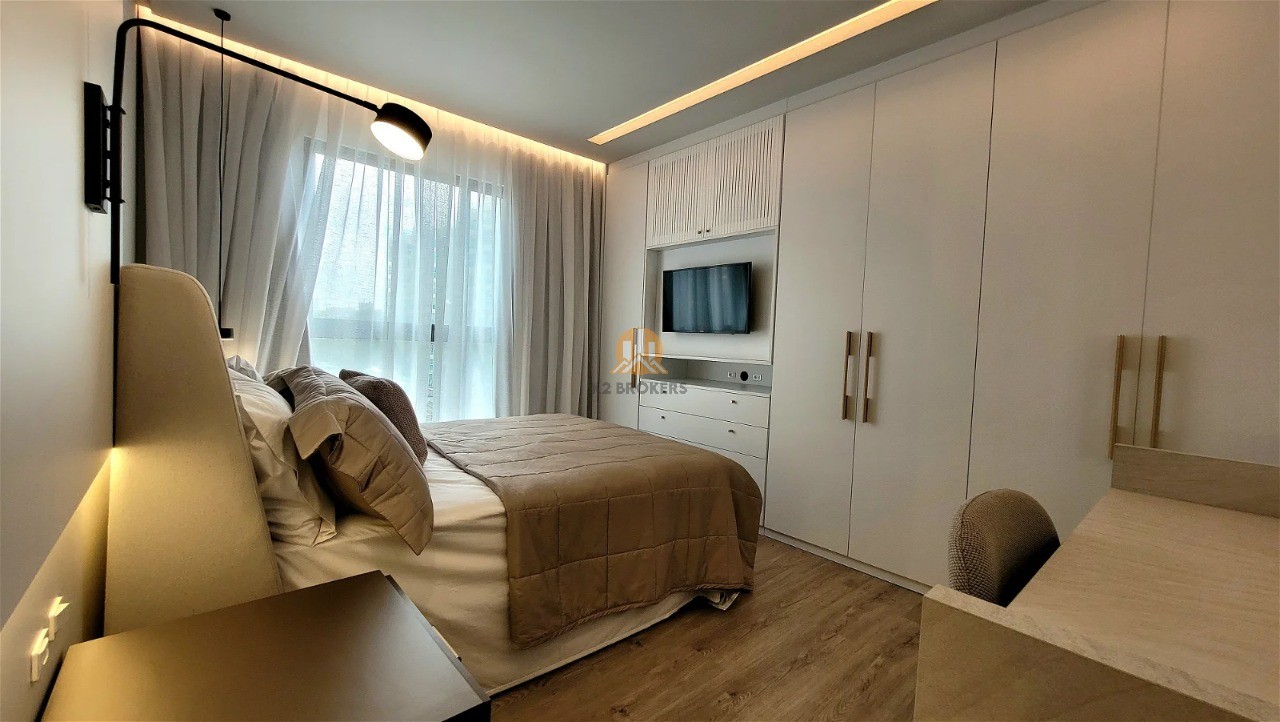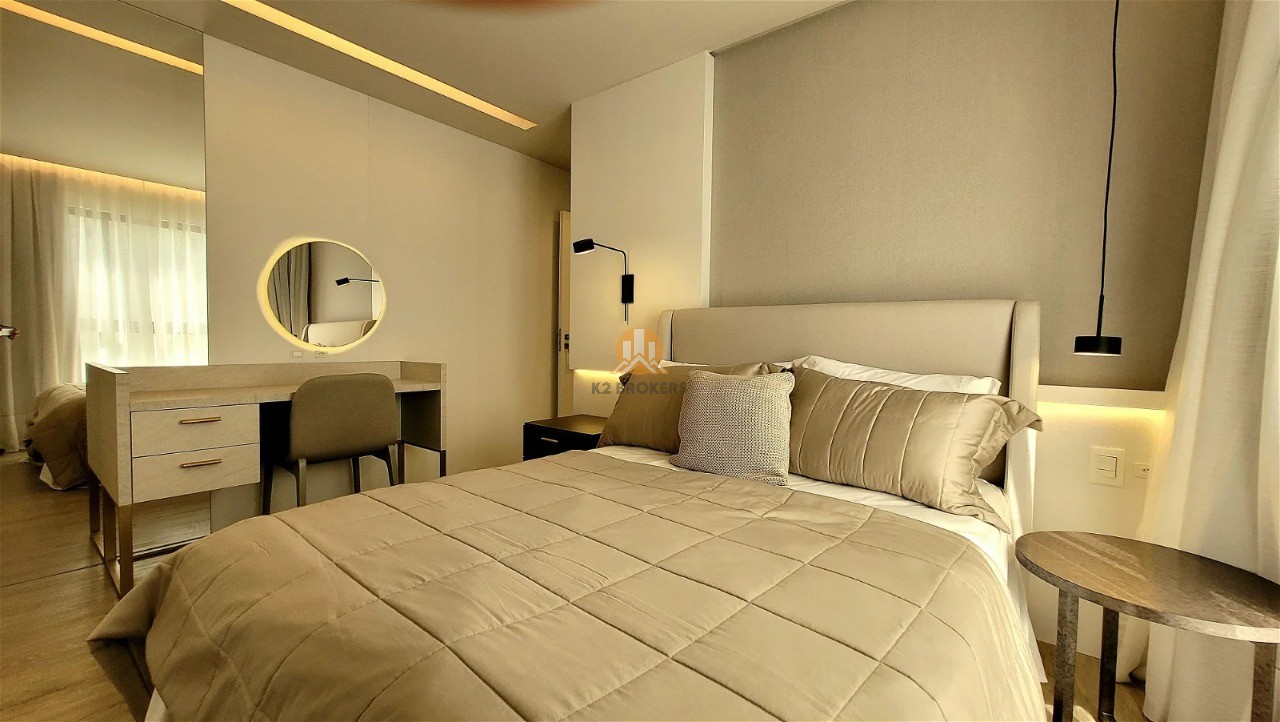Totalmente mobiliado e decorado, este apartamento oferece acabamento em gesso, 2 vagas de garagem, acessibilidade para PNE, aquecimento a gás, ar condicionado, cozinha americana, área de serviço, lavabo, porcelanato, varanda gourmet e muito mais. Tudo pensado para proporcionar o máximo de luxo e praticidade para os seus moradores.