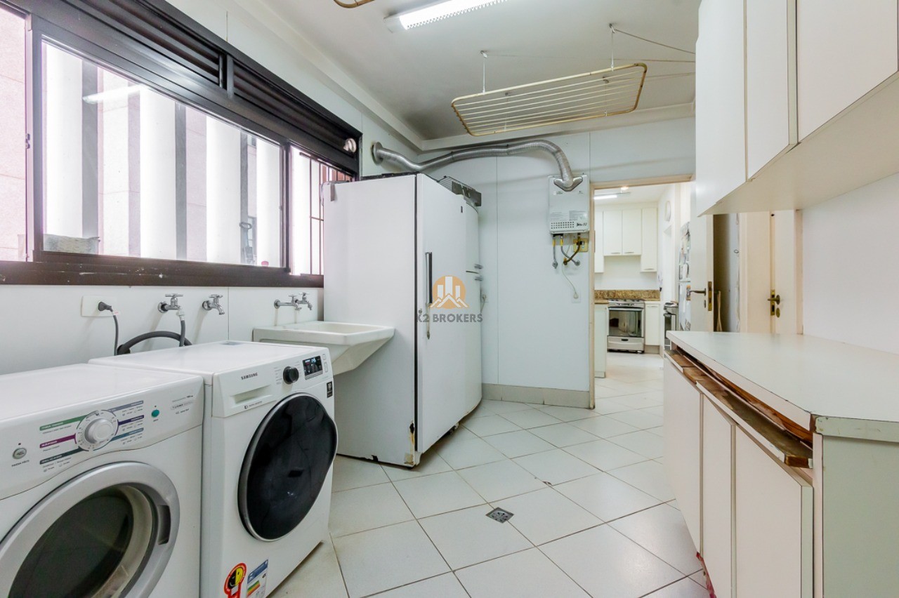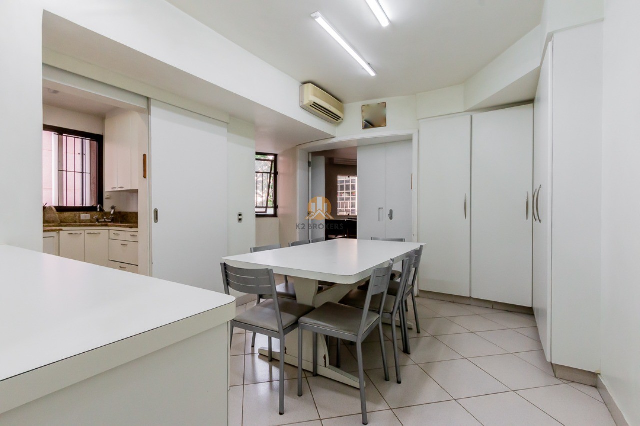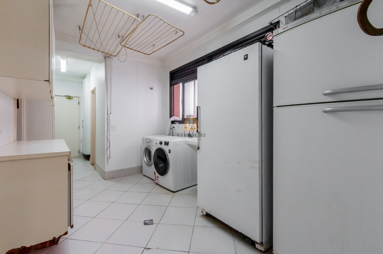 A sala de jantar e a copa, totalmente equipadas, são ideais para receber amigos e familiares, enquanto a cozinha ampla e organizada facilita o preparo das suas refeições diárias. A área de serviço conta com muitos armários e espaço para suas máquinas, além das dependências de funcionários com banheiro.