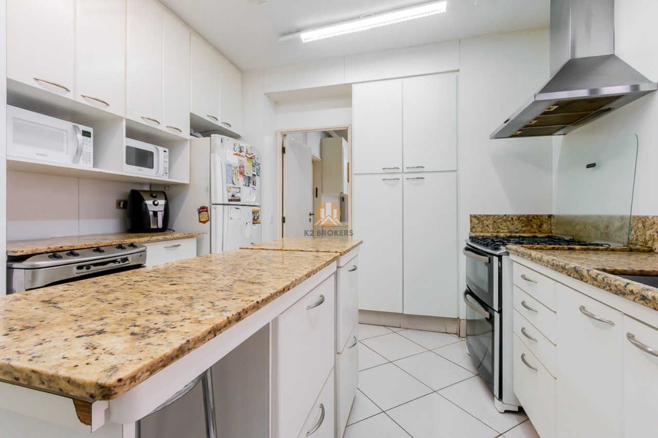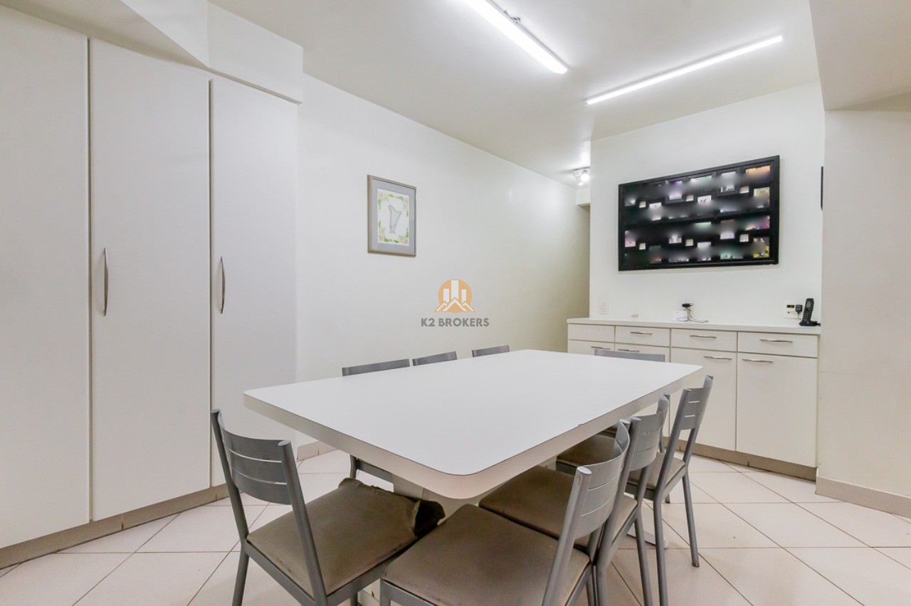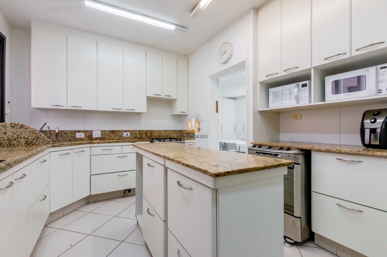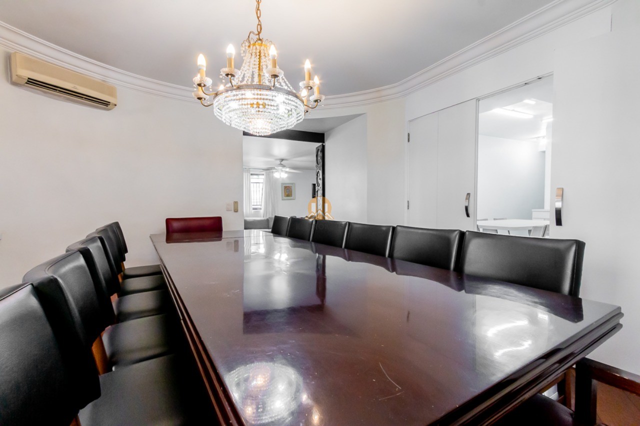 A sala de jantar e a copa, totalmente equipadas, são ideais para receber amigos e familiares, enquanto a cozinha ampla e organizada facilita o preparo das suas refeições diárias. A área de serviço conta com muitos armários e espaço para suas máquinas, além das dependências de funcionários com banheiro.