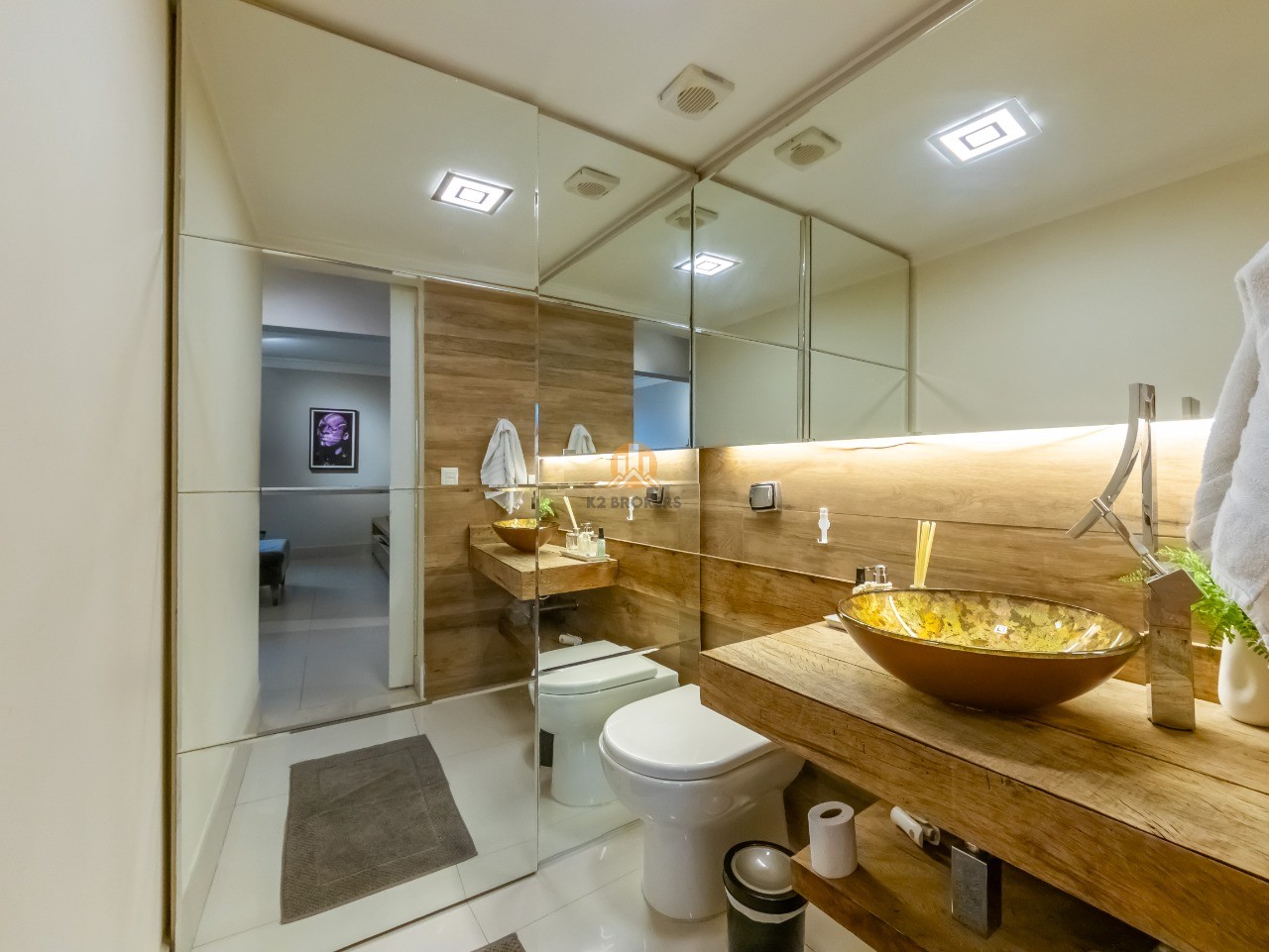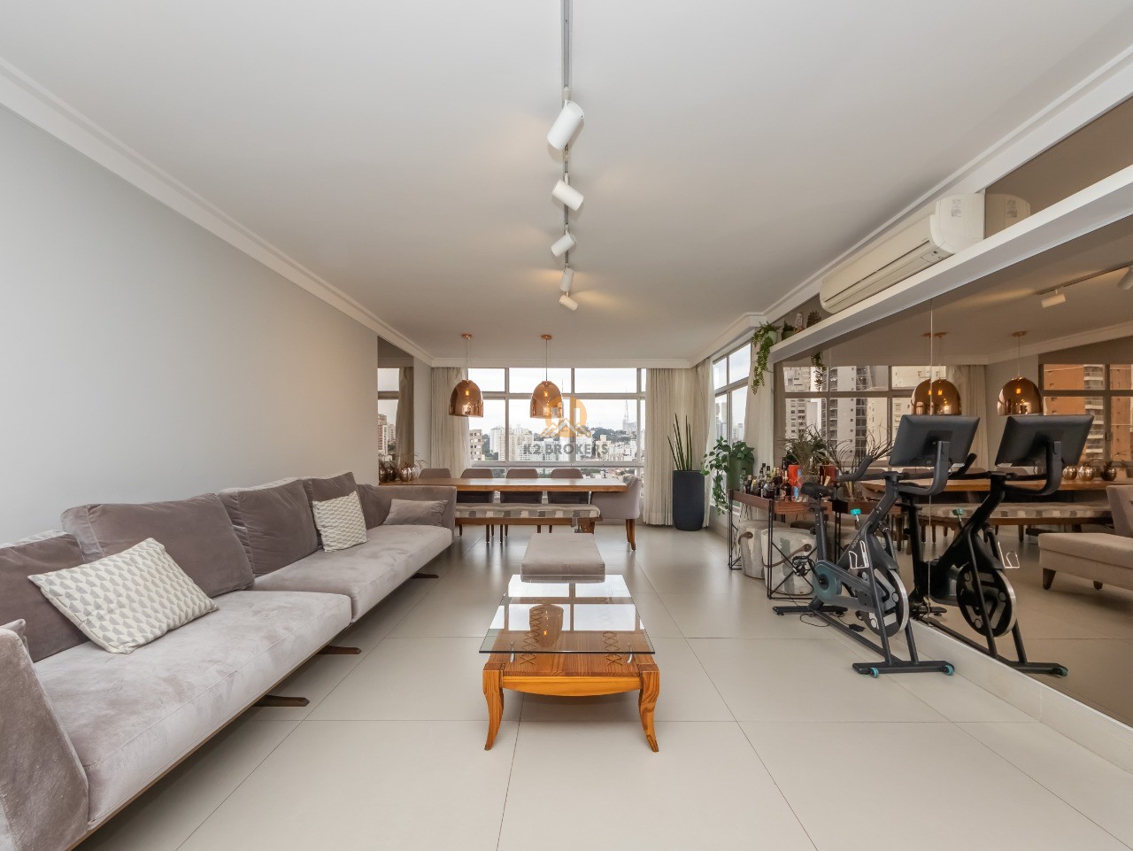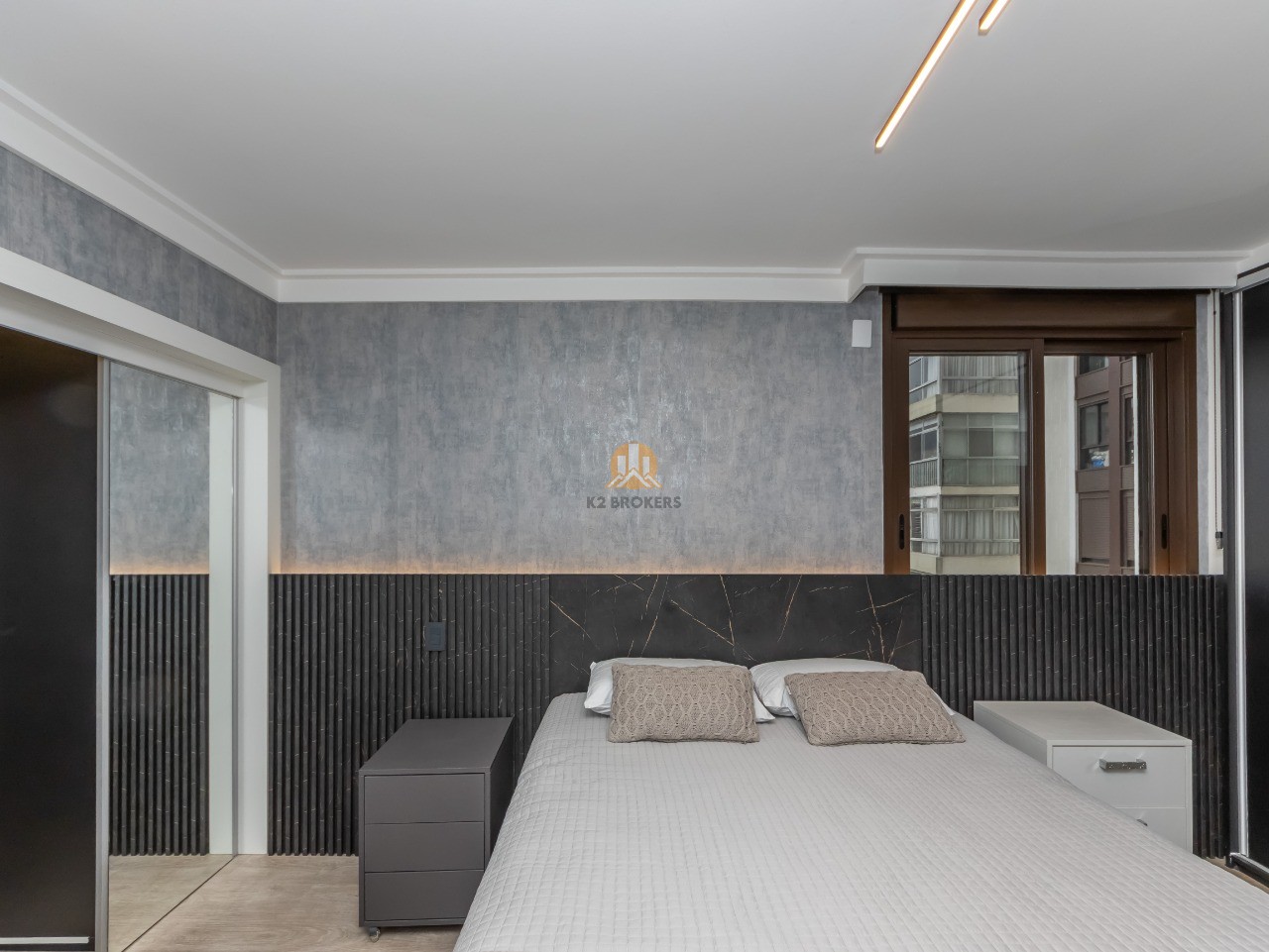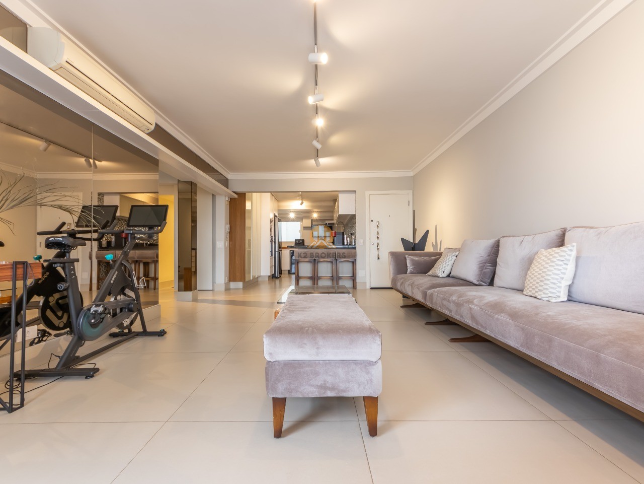 Localizado em um andar alto, com uma vista deslumbrante, o apartamento possui 123m² de área útil, originalmente com 3 dormitórios, sendo um deles convertido em uma acolhedora sala de TV (que pode ser facilmente revertida), além de uma suíte master, cozinha integrada com a sala e área de serviço com banheiro.