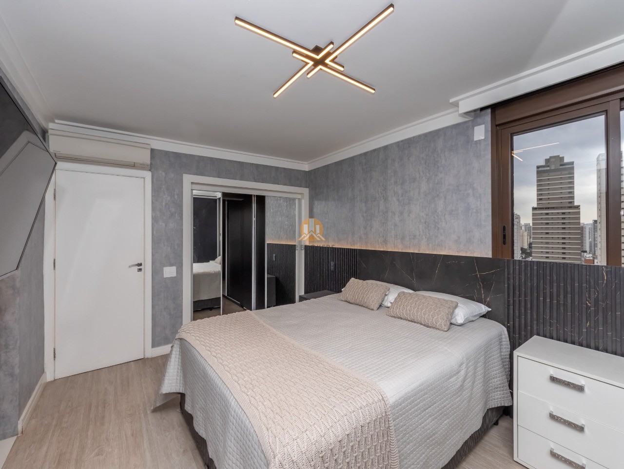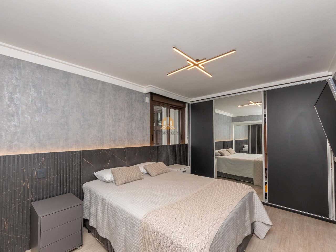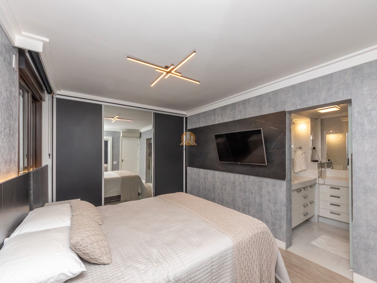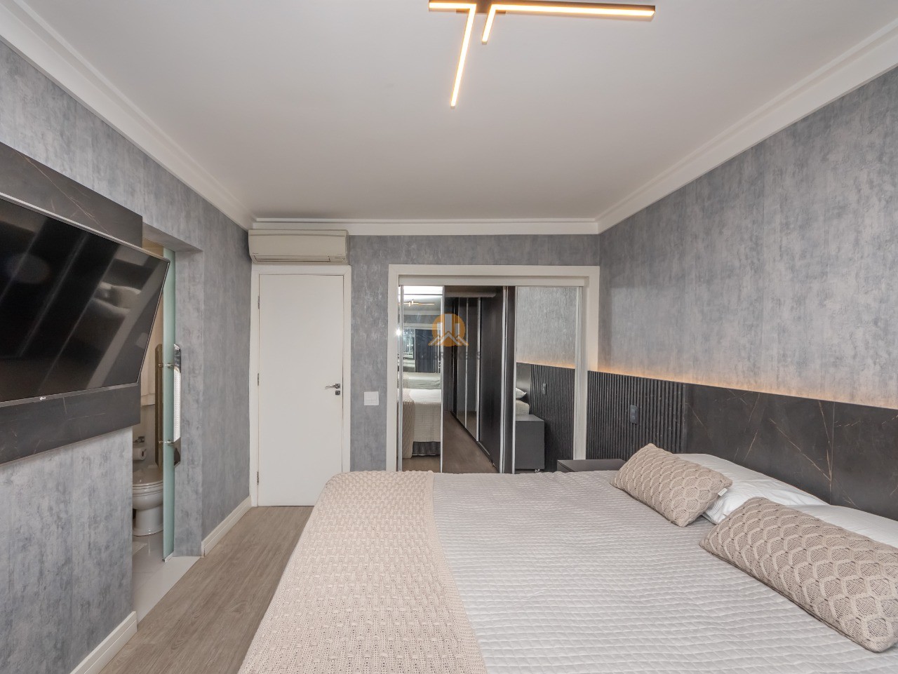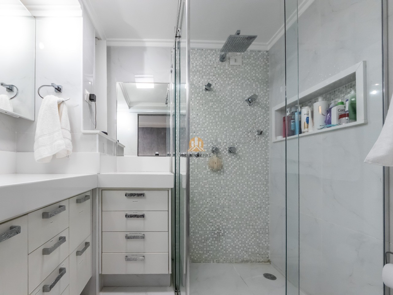 Localizado em um andar alto, com uma vista deslumbrante, o apartamento possui 123m² de área útil, originalmente com 3 dormitórios, sendo um deles convertido em uma acolhedora sala de TV (que pode ser facilmente revertida), além de uma suíte master, cozinha integrada com a sala e área de serviço com banheiro.