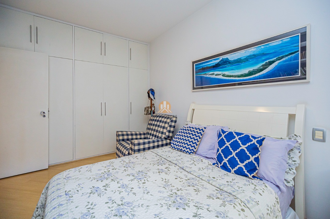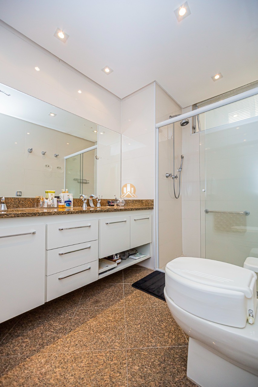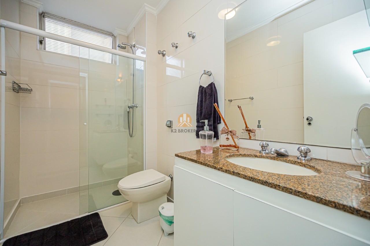 A suíte master é um verdadeiro refúgio, com um walking closet espaçoso, banheiro sofisticado com pias para o Sr. e Sra., aquecimento a gás e ventilação natural. Os outros dois quartos são atendidos por uma suíte americana, com banheiro completo e armários planejados.