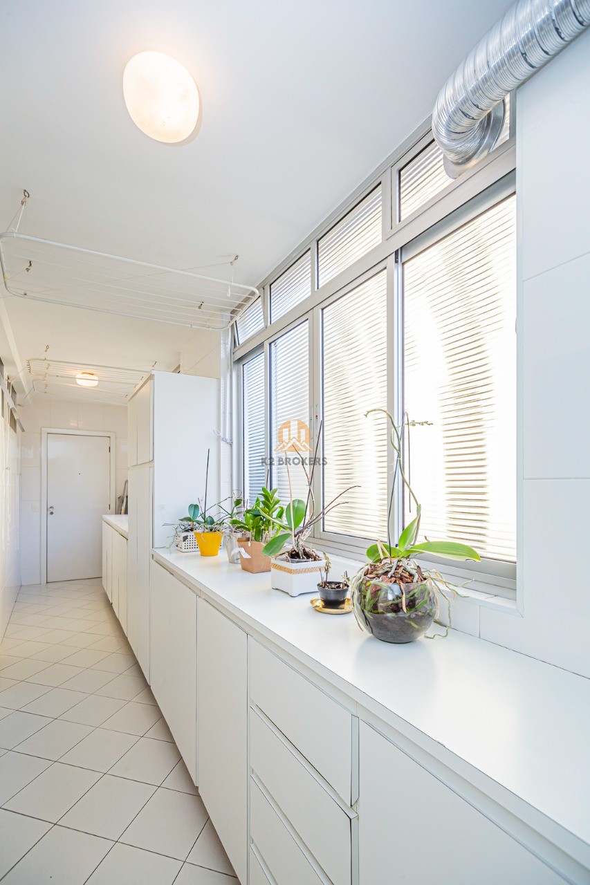 A cozinha é ampla e funcional, com copa arejada e equipamentos modernos. A área de serviço é um apartamento à parte, com a possibilidade de transformar a dependência de serviço em outra suíte.