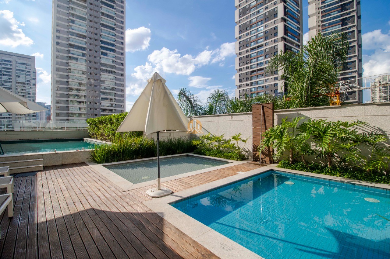 O condomínio oferece uma infraestrutura de lazer completa, com 3 piscinas aquecidas (adulto e infantil externa, além de uma raia semi olímpica aquecida de 25m), espaço gourmet, brinquedoteca, academia profissional, sauna, salão de festas, churrasqueira externa e quadra de areia. A portaria funciona 24 horas para garantir a segurança de todos os moradores.