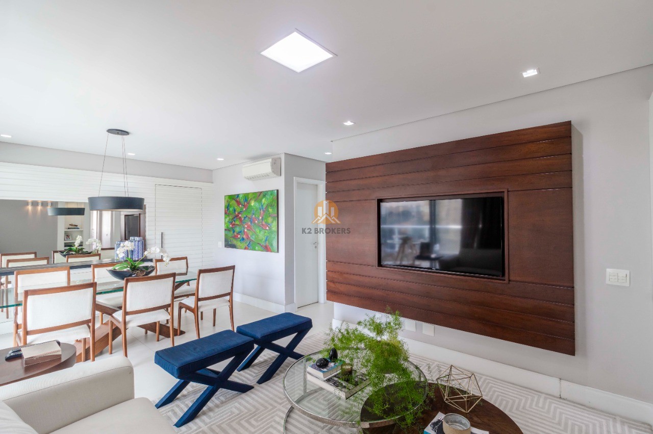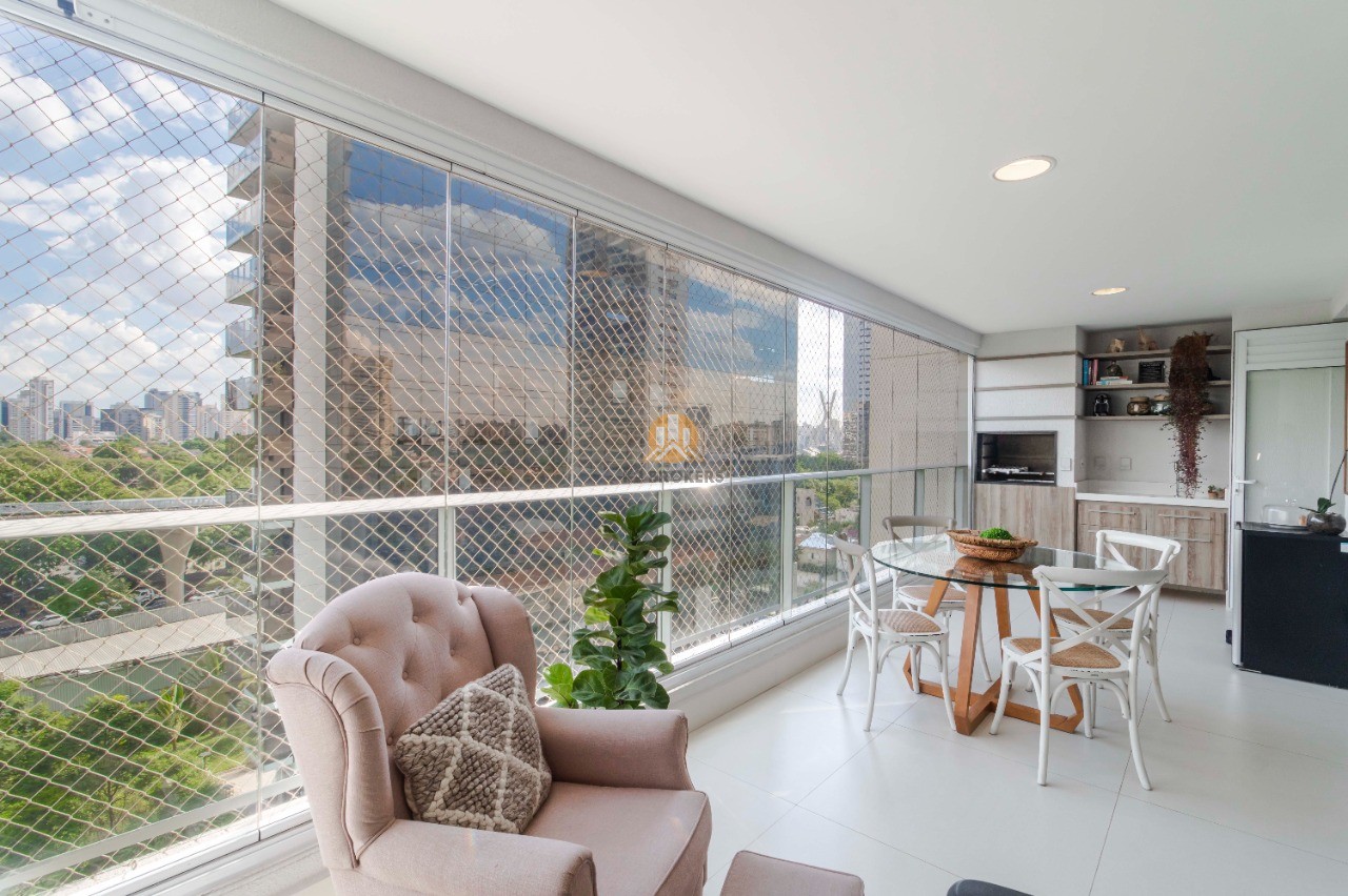 Com móveis planejados de alta qualidade, ar condicionado em todos os ambientes, sala integrada com varanda gourmet e churrasqueira, lavabo, cozinha repleta de armários e área de serviço completa com despensa, este apartamento é puro luxo e conforto. Além disso, conta com 2 vagas de garagem e depósito privativo.