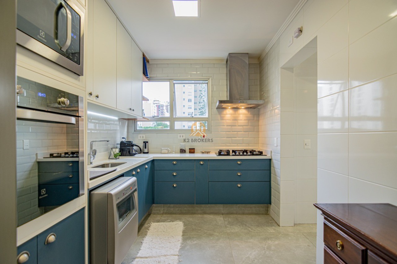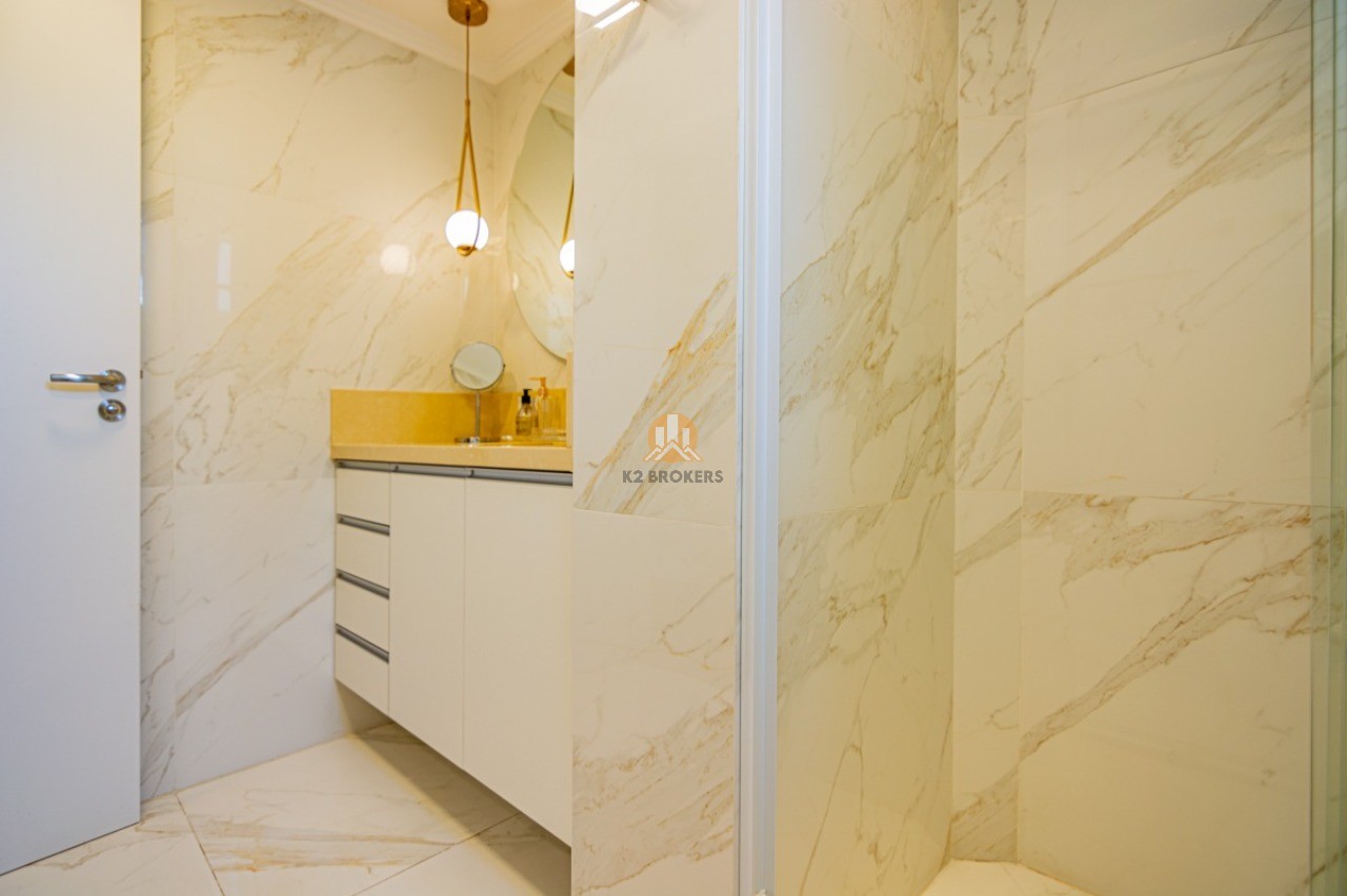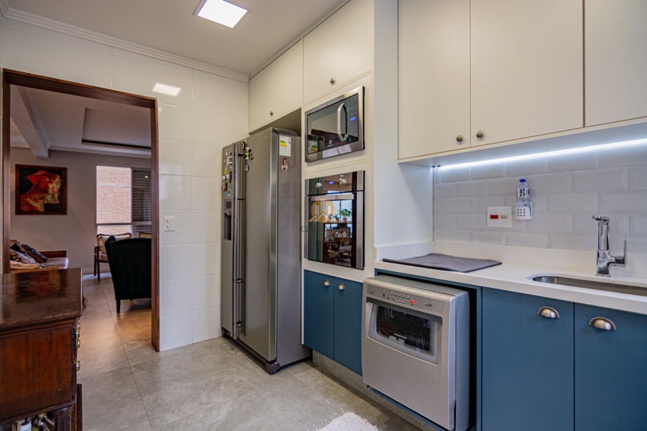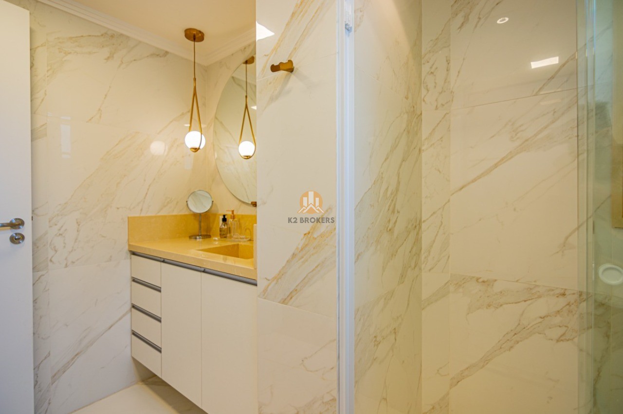 Os armários planejados da marca Valcenter, com garantia vitalícia, são um destaque à parte, trazendo elegância e funcionalidade à cozinha ampla, que conta com janelas amplas e torneiras de água quente. A área de serviço conta com despensa e escritório, tornando as tarefas do dia a dia mais práticas e organizadas.