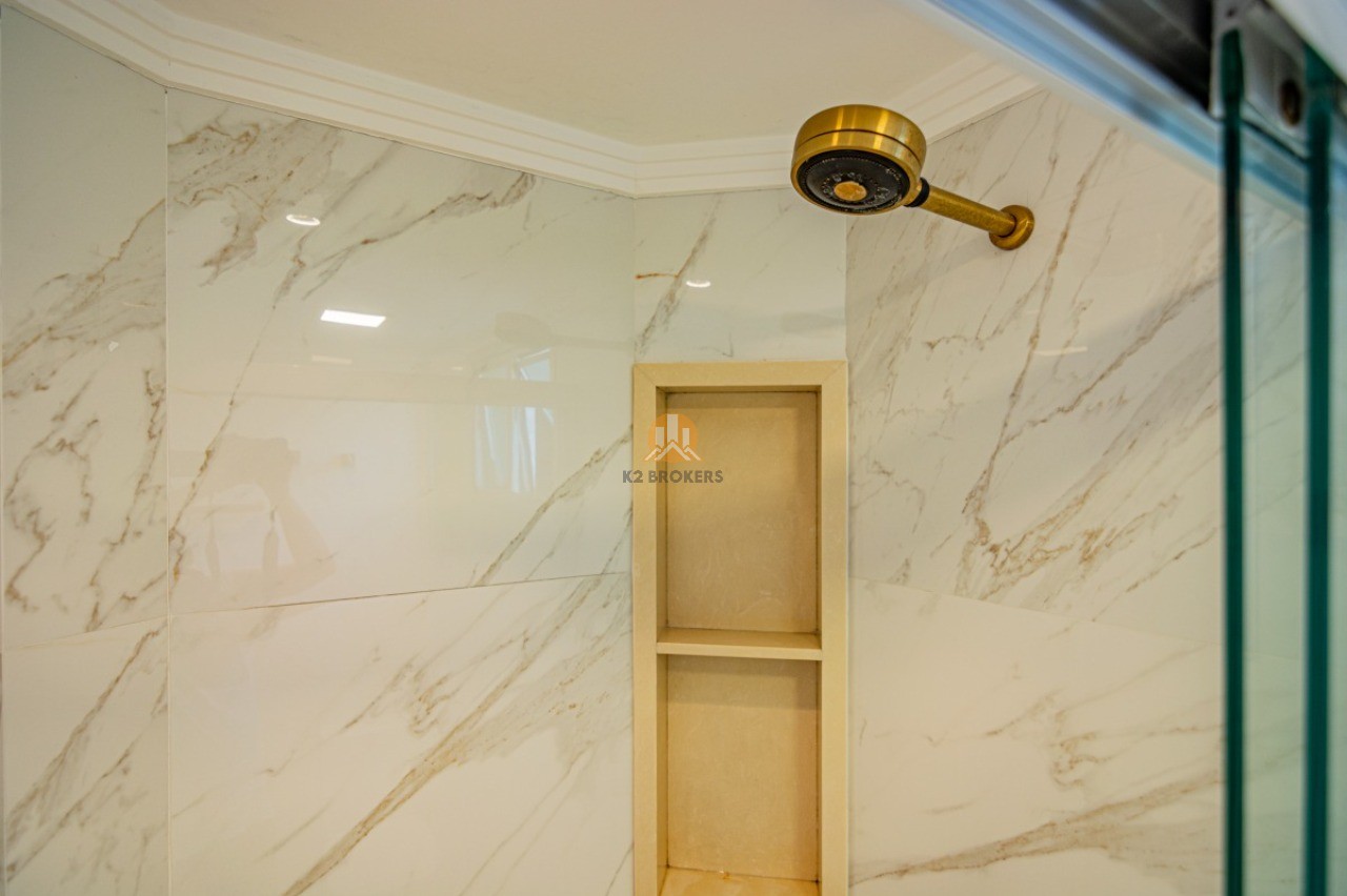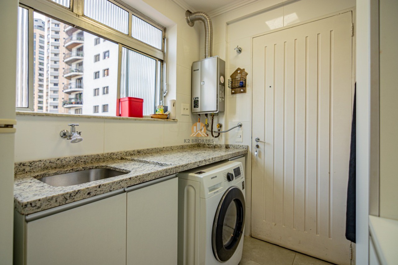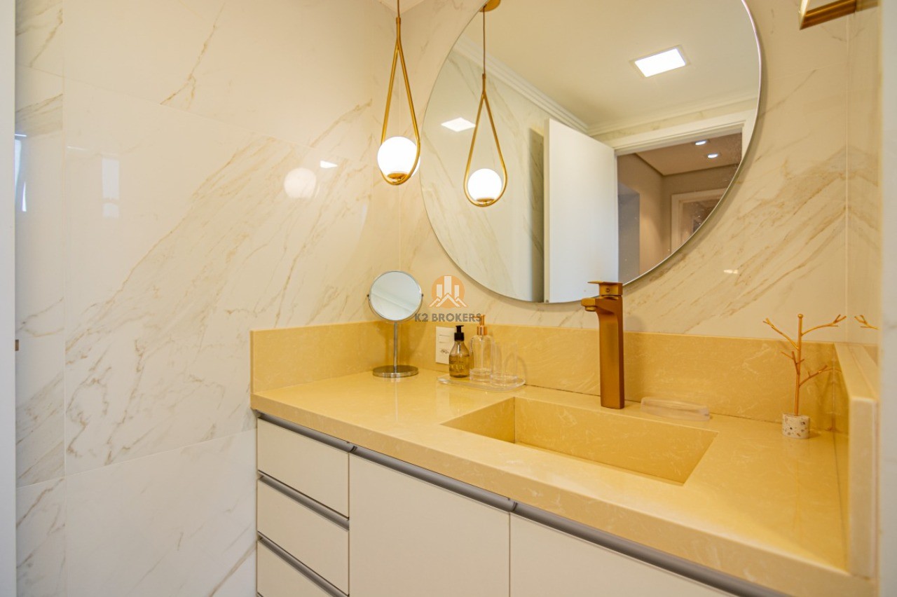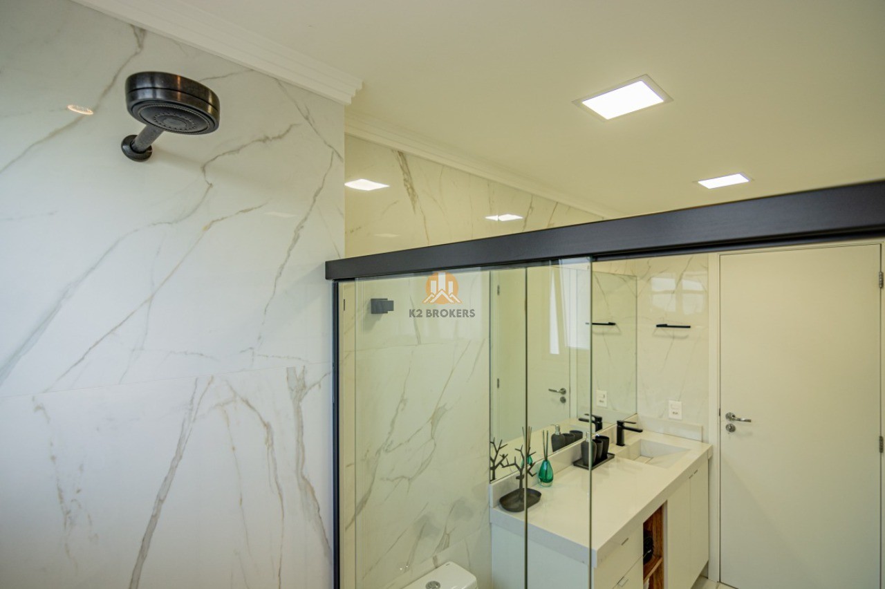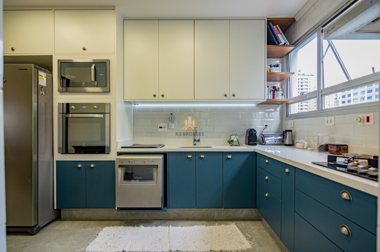 Os armários planejados da marca Valcenter, com garantia vitalícia, são um destaque à parte, trazendo elegância e funcionalidade à cozinha ampla, que conta com janelas amplas e torneiras de água quente. A área de serviço conta com despensa e escritório, tornando as tarefas do dia a dia mais práticas e organizadas.