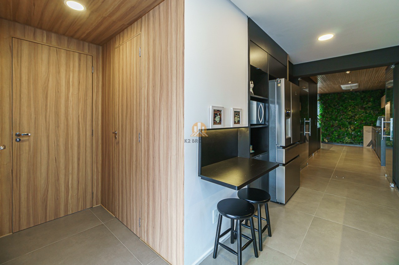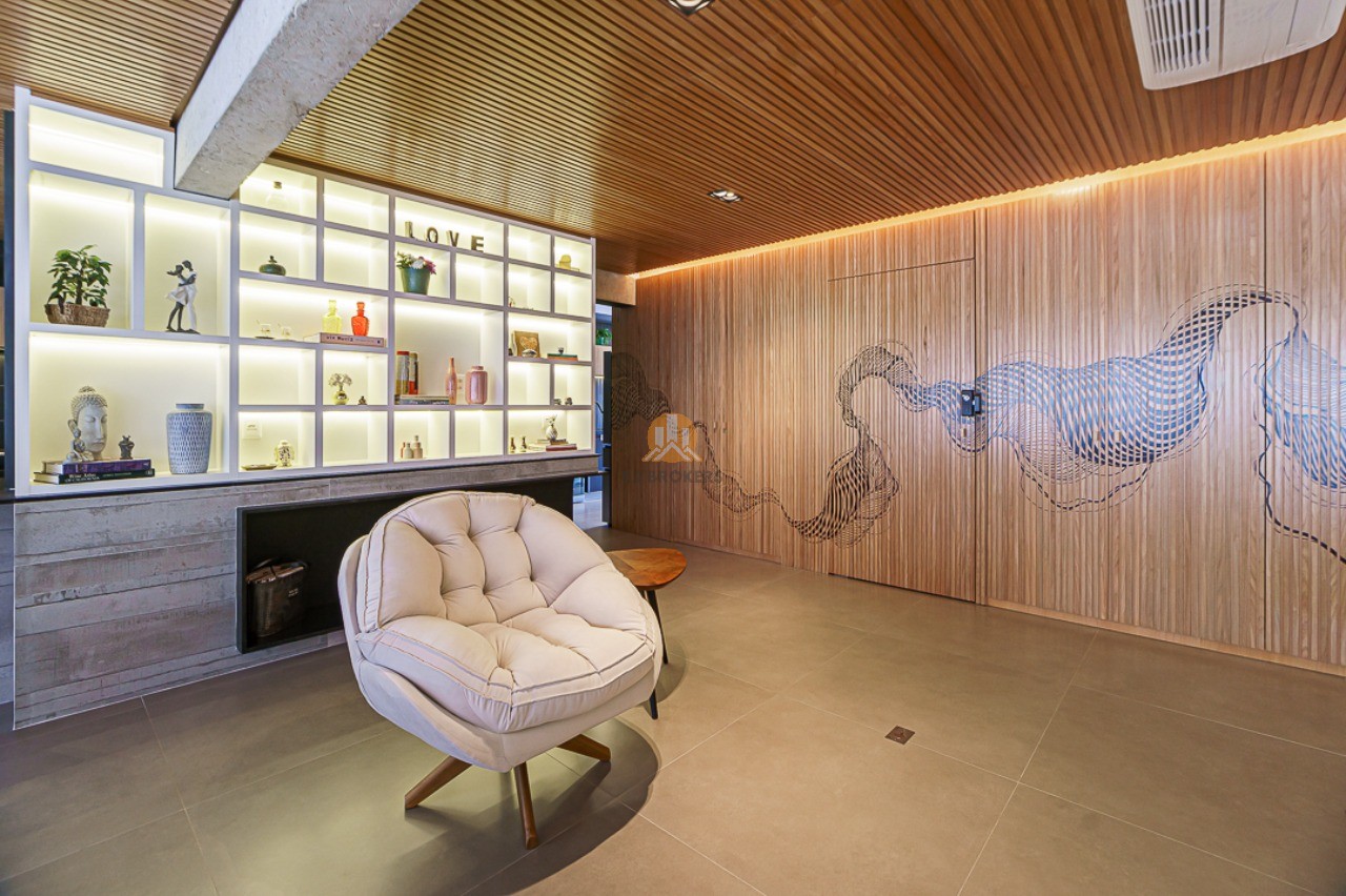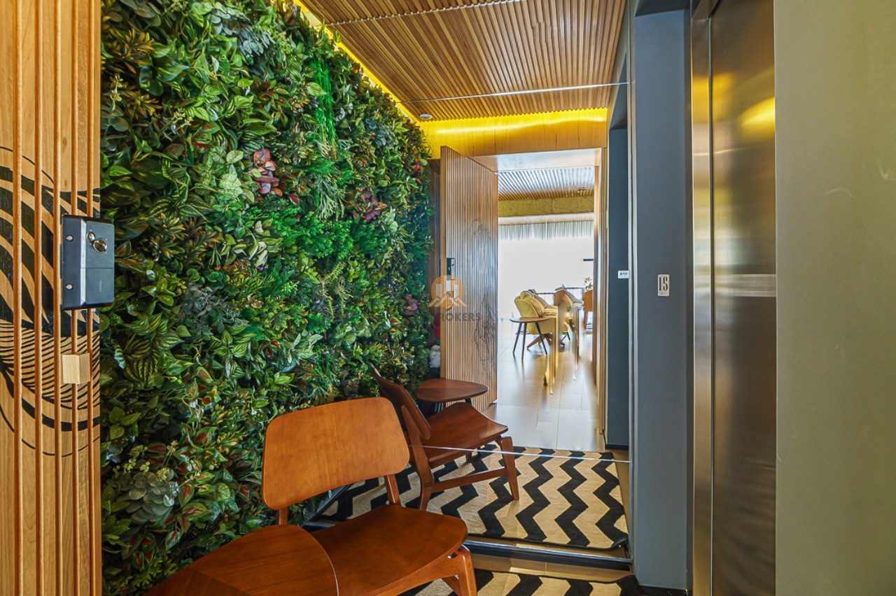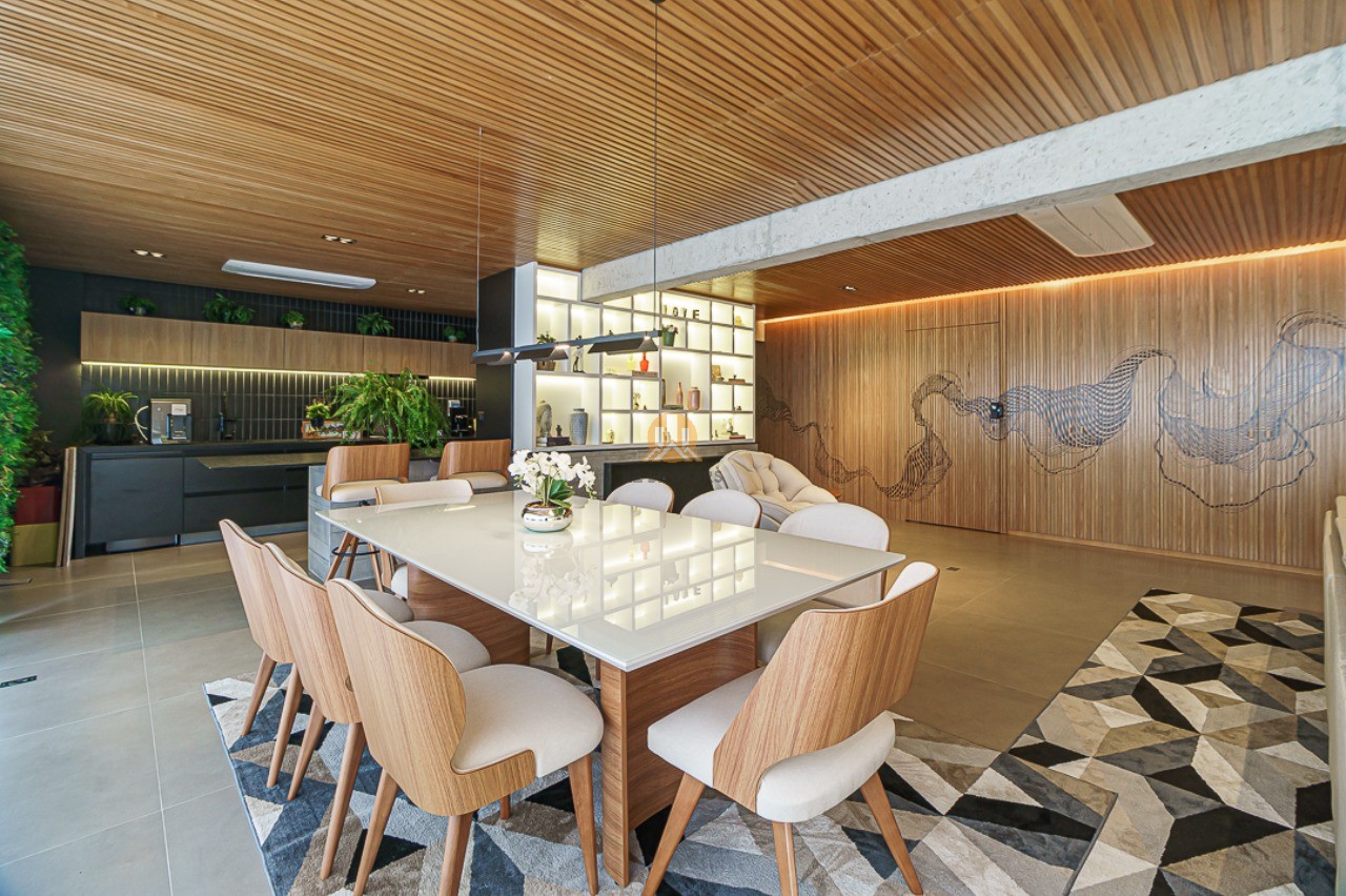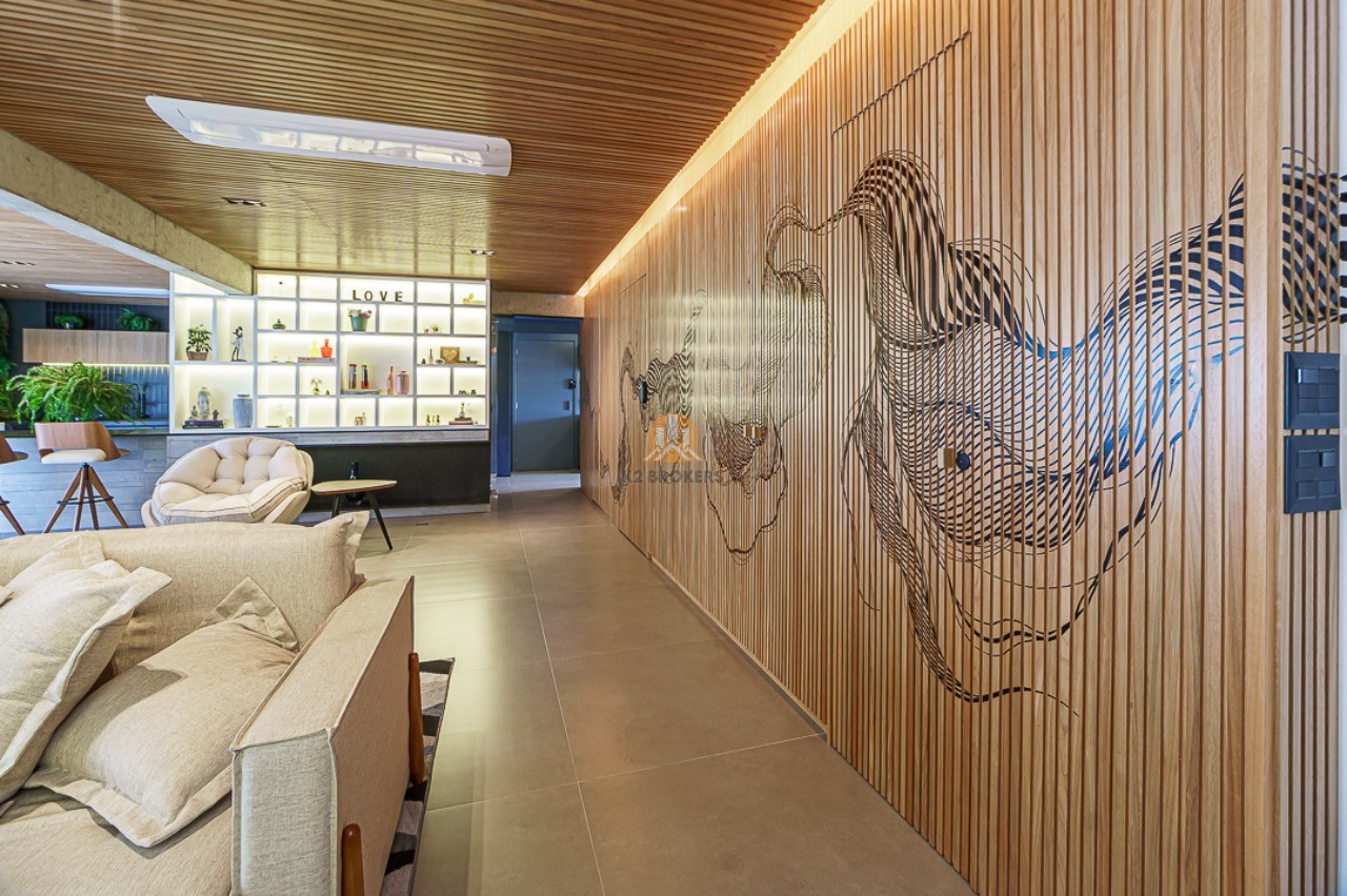 Ao entrar neste apartamento, você será recebido por um lindo hall social privativo com um jardim vertical e um espelho elegante. O living é espaçoso e integrado à sala de jantar e ao espaço gourmet, todos envidraçados para proporcionar uma vista incrível. O ambiente conta com ar condicionado de teto, jardim vertical, churrasqueira e uma maravilhosa obra de arte do renomado artista plástico Giuliano Martinuzzo.