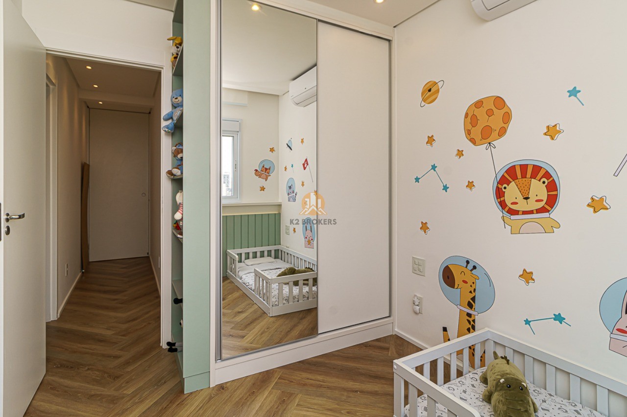 A cozinha é ampla e funcional, a lavanderia é espaçosa e a brinquedoteca foi montada em uma das varandas. O condomínio oferece uma infraestrutura completa com piscina aquecida, brinquedoteca, playground, quadras esportivas, academia, salão de jogos, salão de festas, área gourmet com churrasqueira, pet place e muito mais.