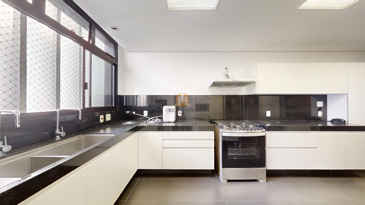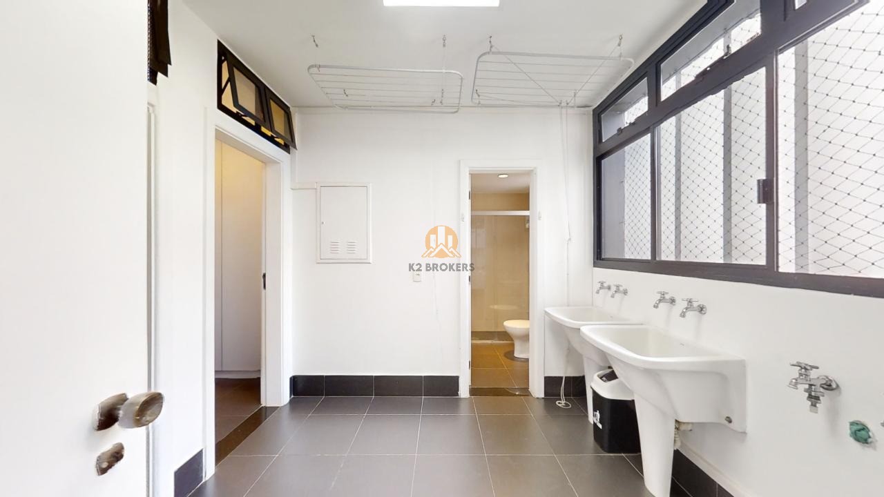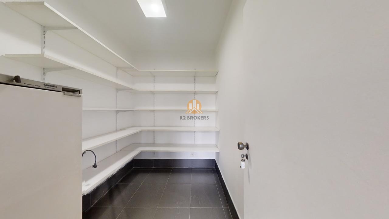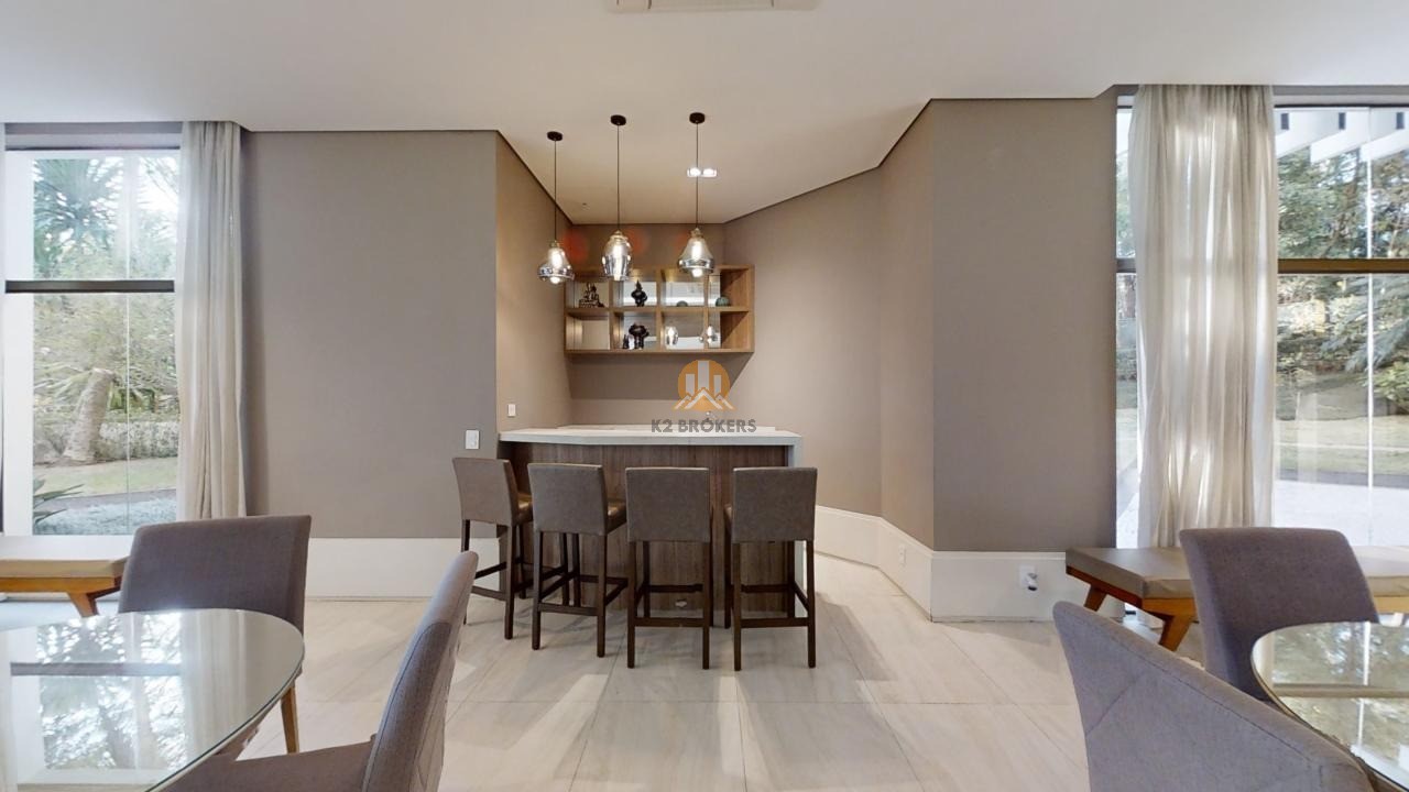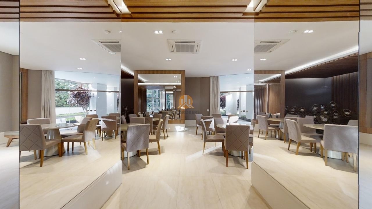 O apartamento conta com acabamentos de alto padrão, como armários da italiana Misura Emme na suíte principal e rouparia, marcenaria da Segatto no escritório, cozinha e copa gourmet com armários Securit, bancada de aço inox Mekal e eletrodomésticos em aço inox. A sala de jantar, sala de estar e Hometheater integrados dão acesso a um terraço envidraçado com deck de madeira e uma vista deslumbrante para o bosque.