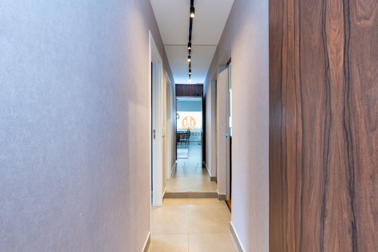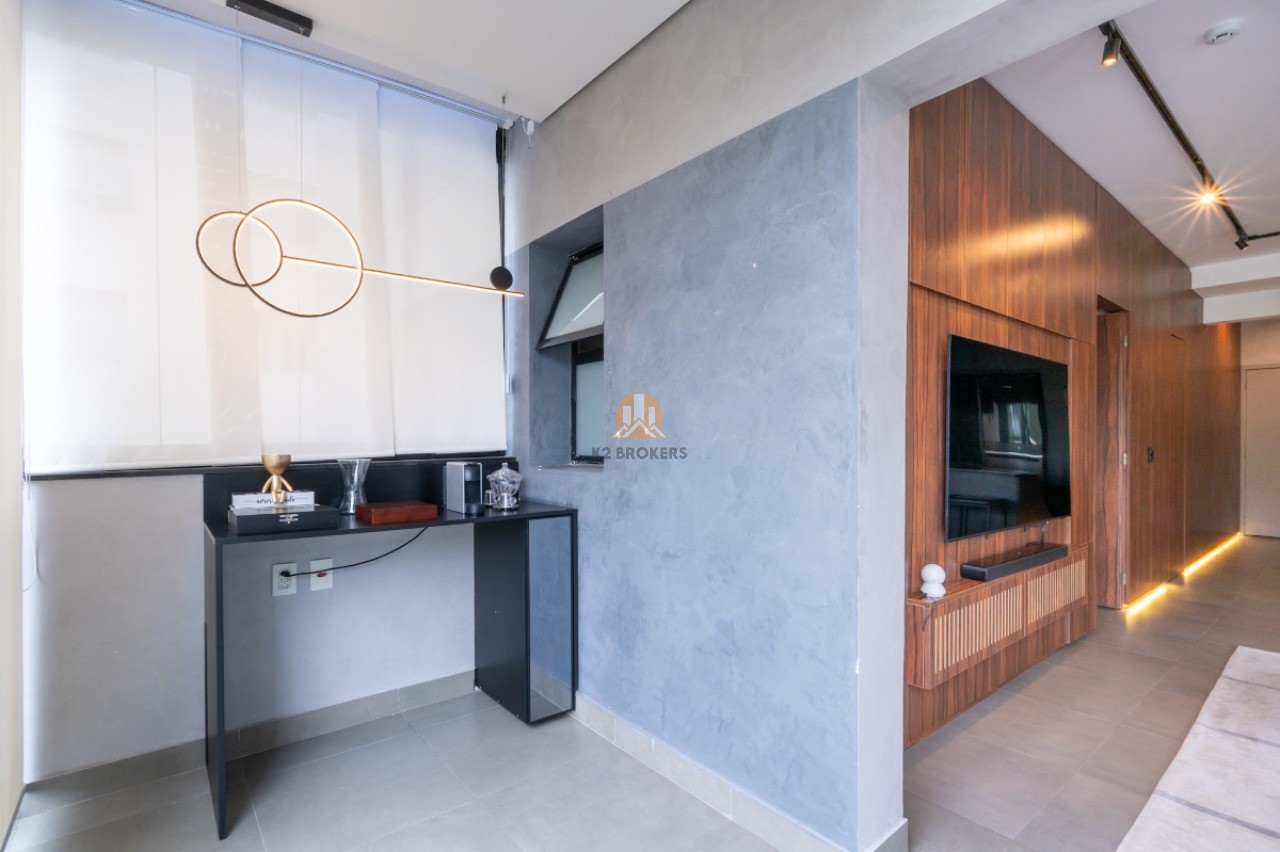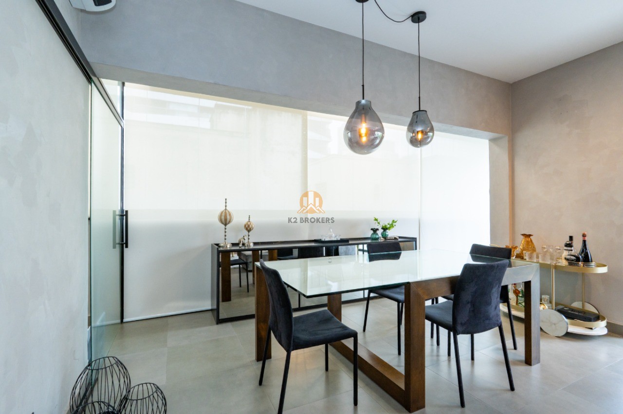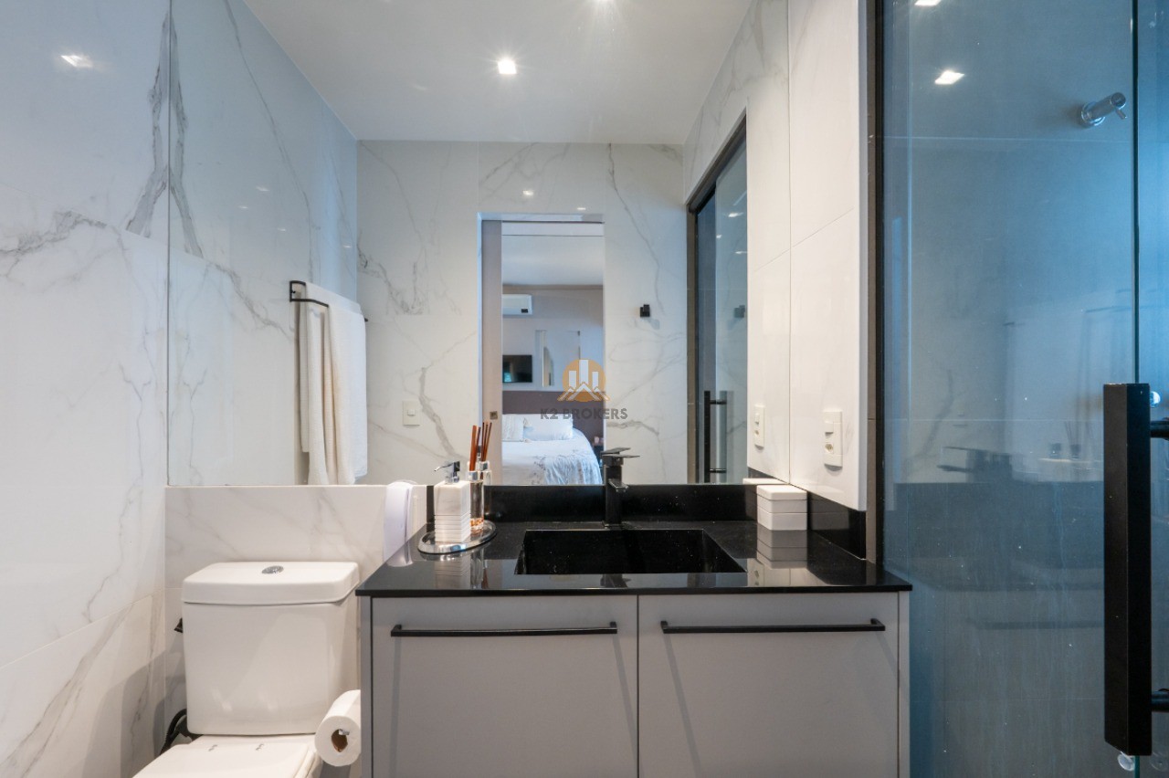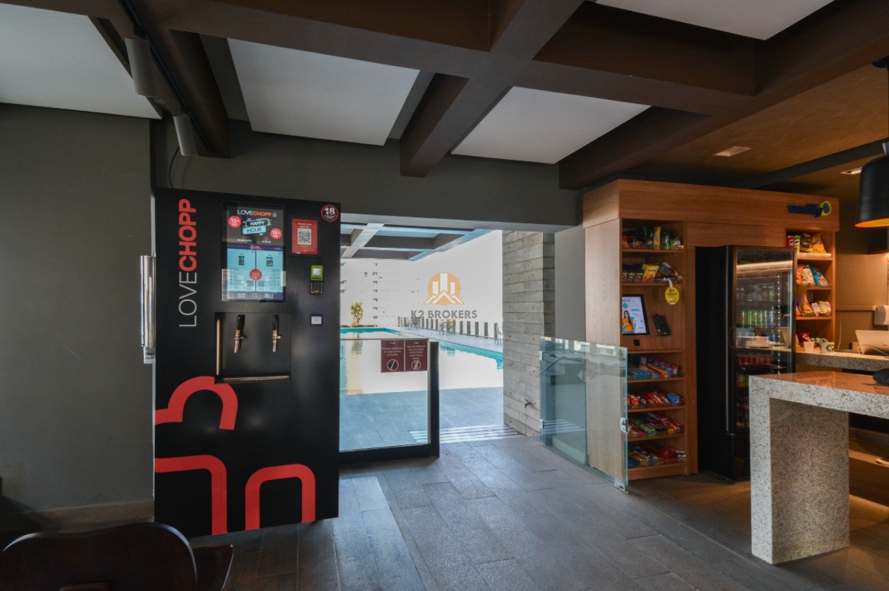 Com uma sala ampla integrada à cozinha, sala de jantar e varanda, este apartamento possui 2 quartos, ambos suítes, e 3 banheiros, incluindo um lavabo. Além disso, conta com uma cozinha funcional, área de serviço e 2 vagas de garagem.