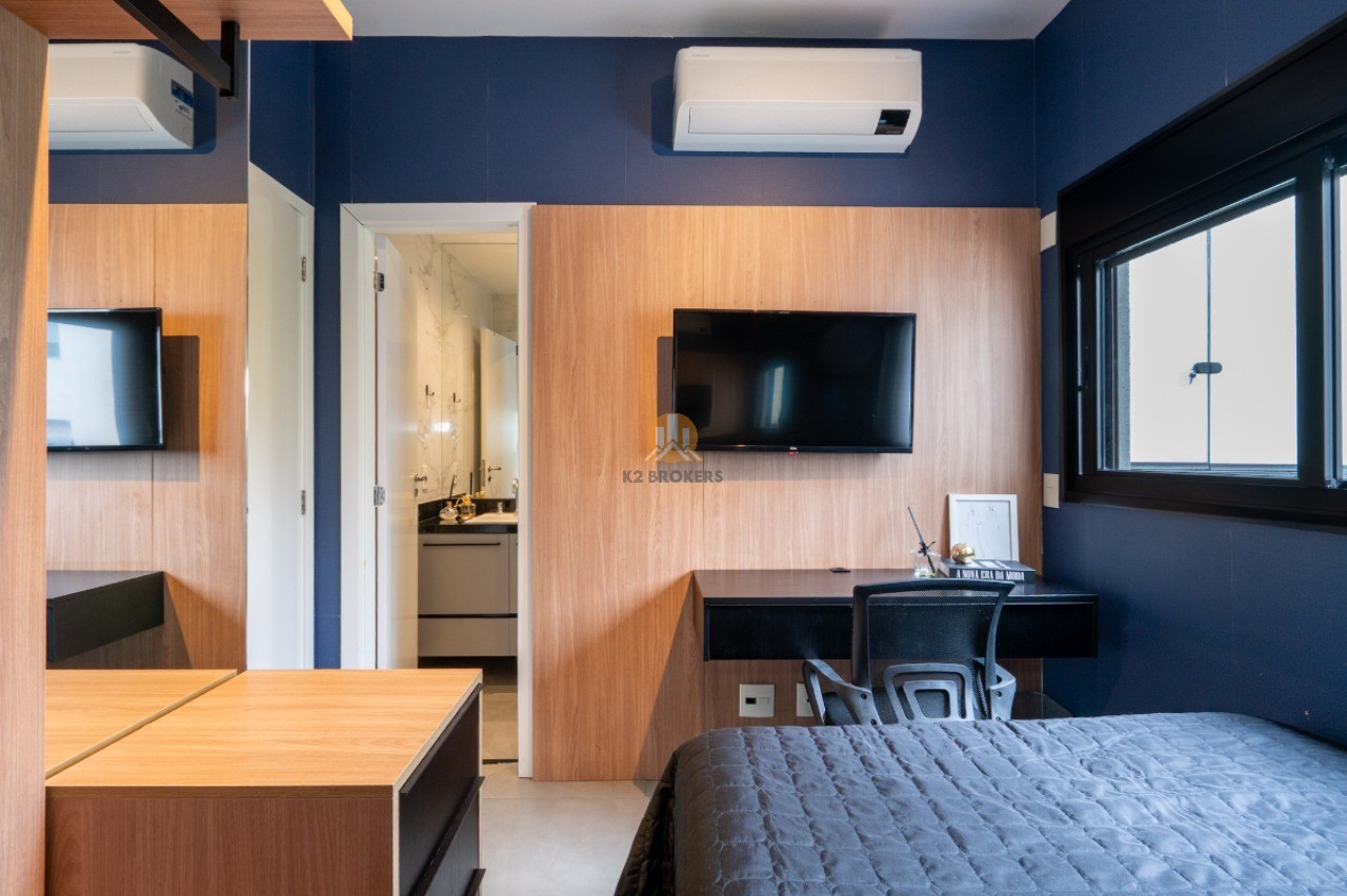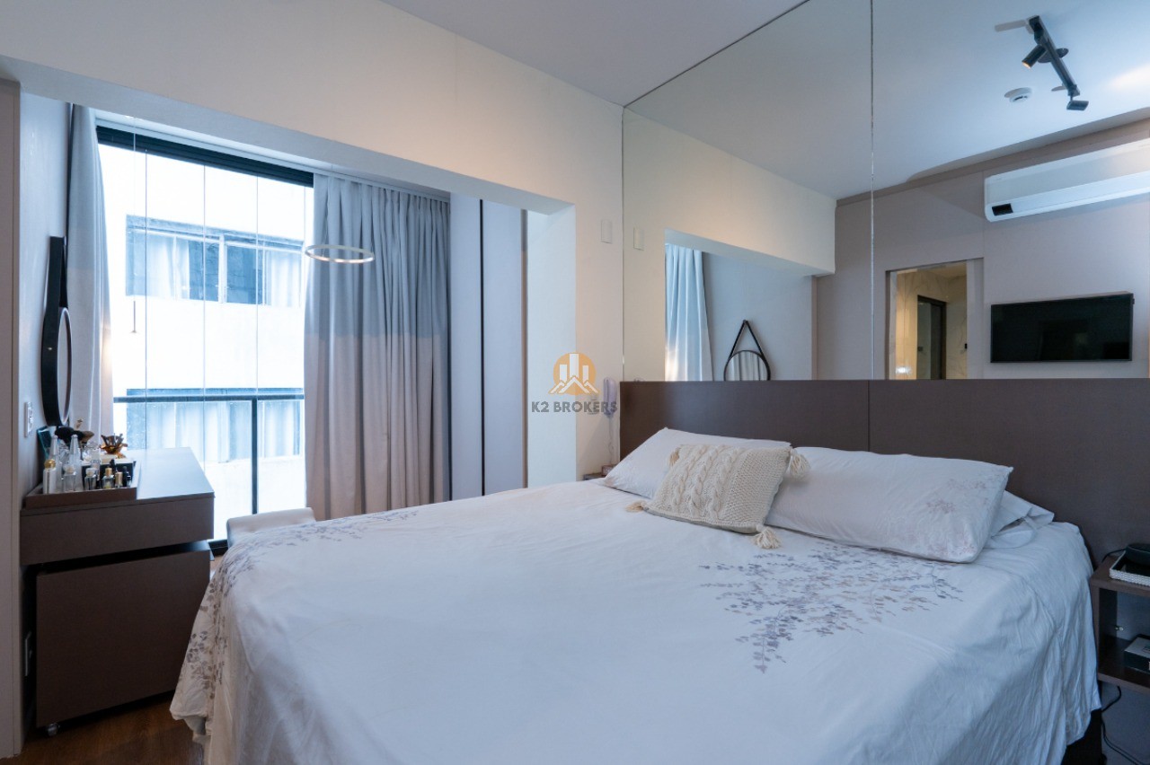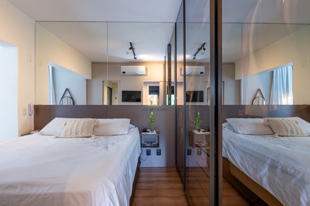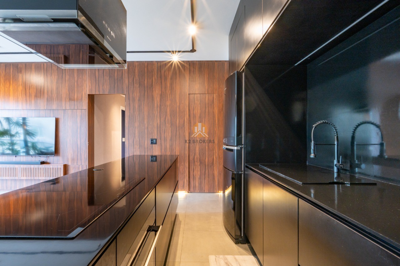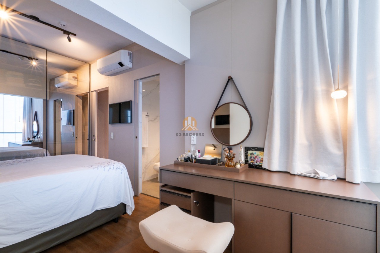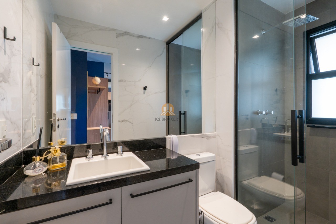 Com uma sala ampla integrada à cozinha, sala de jantar e varanda, este apartamento possui 2 quartos, ambos suítes, e 3 banheiros, incluindo um lavabo. Além disso, conta com uma cozinha funcional, área de serviço e 2 vagas de garagem.