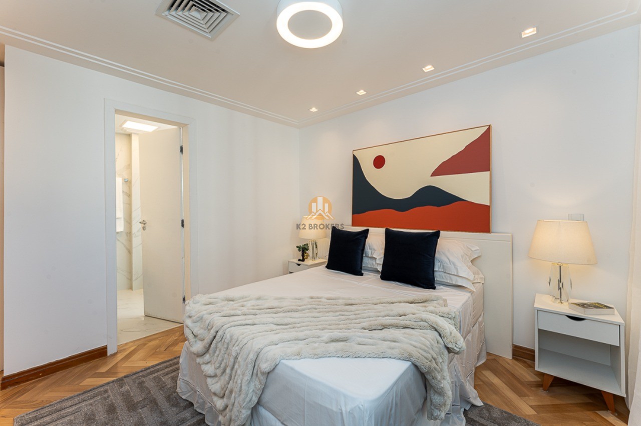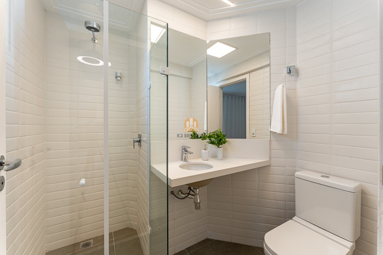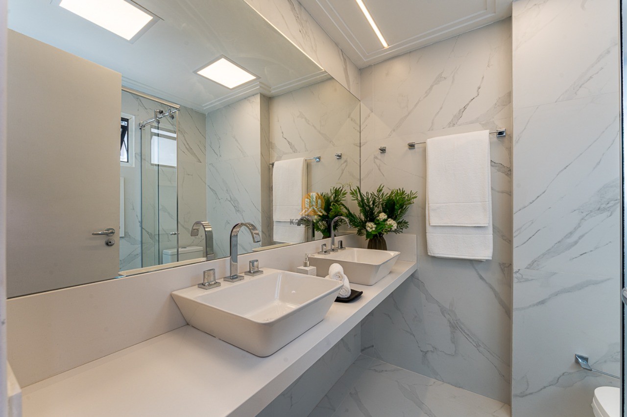 Na área íntima, duas suítes, sendo uma suíte master com varanda, pia dupla no banheiro e espaço para closet. Os acabamentos de alta qualidade garantem elegância e sofisticação aos ambientes. O imóvel ainda conta com duas vagas de garagem.