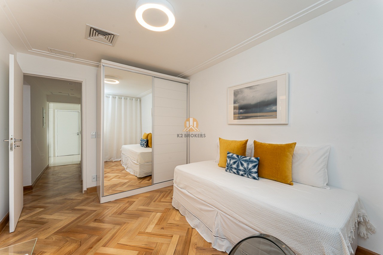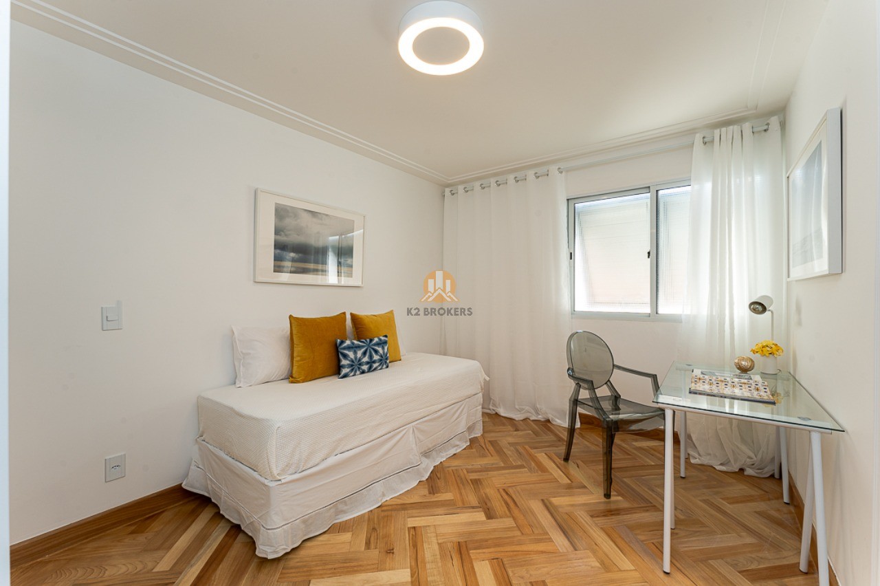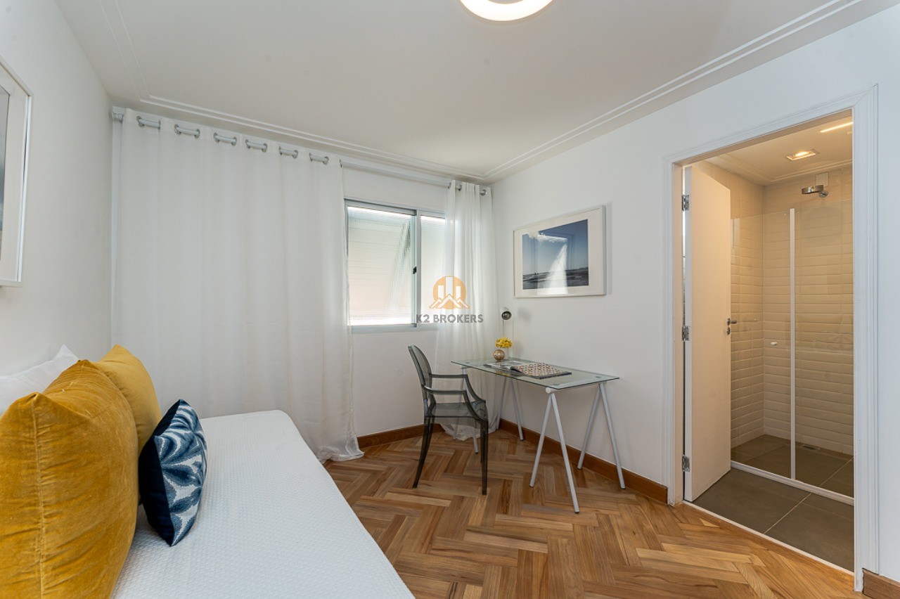 Na área íntima, duas suítes, sendo uma suíte master com varanda, pia dupla no banheiro e espaço para closet. Os acabamentos de alta qualidade garantem elegância e sofisticação aos ambientes. O imóvel ainda conta com duas vagas de garagem.