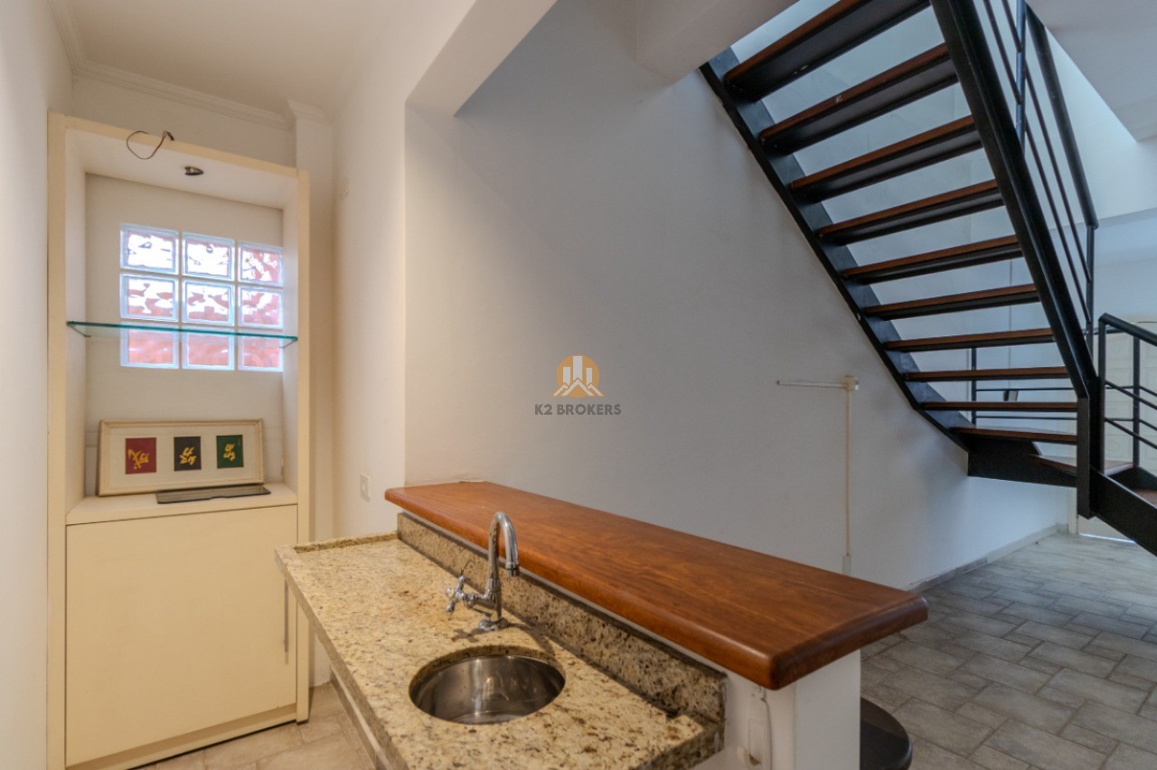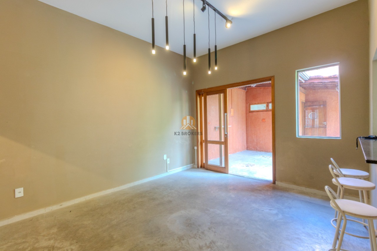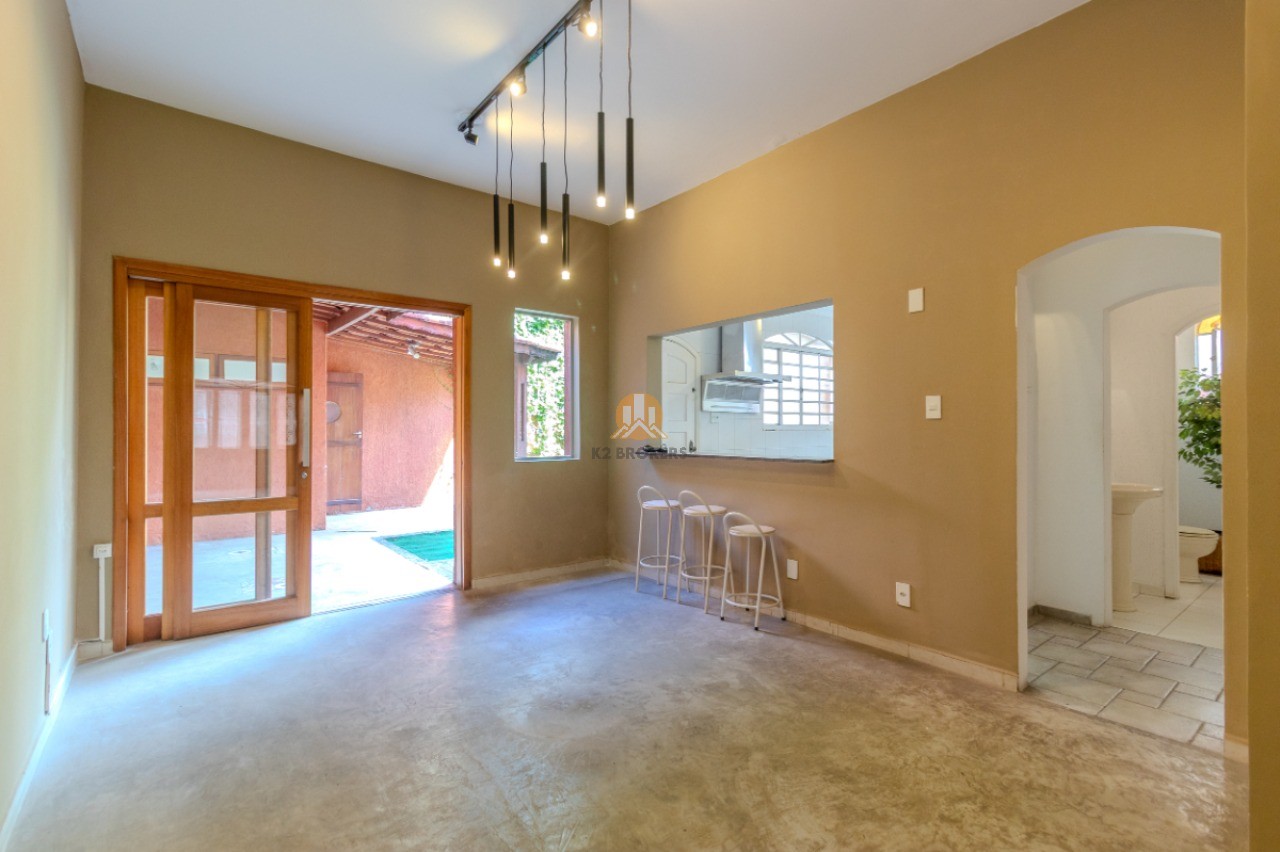 A sala possui 3 ambientes - sala de jantar, sala de estar e bar - e uma área externa perfeita para receber amigos e familiares, com churrasqueira e banheiro. A cozinha americana é clara e espaçosa, com acesso direto à área externa.