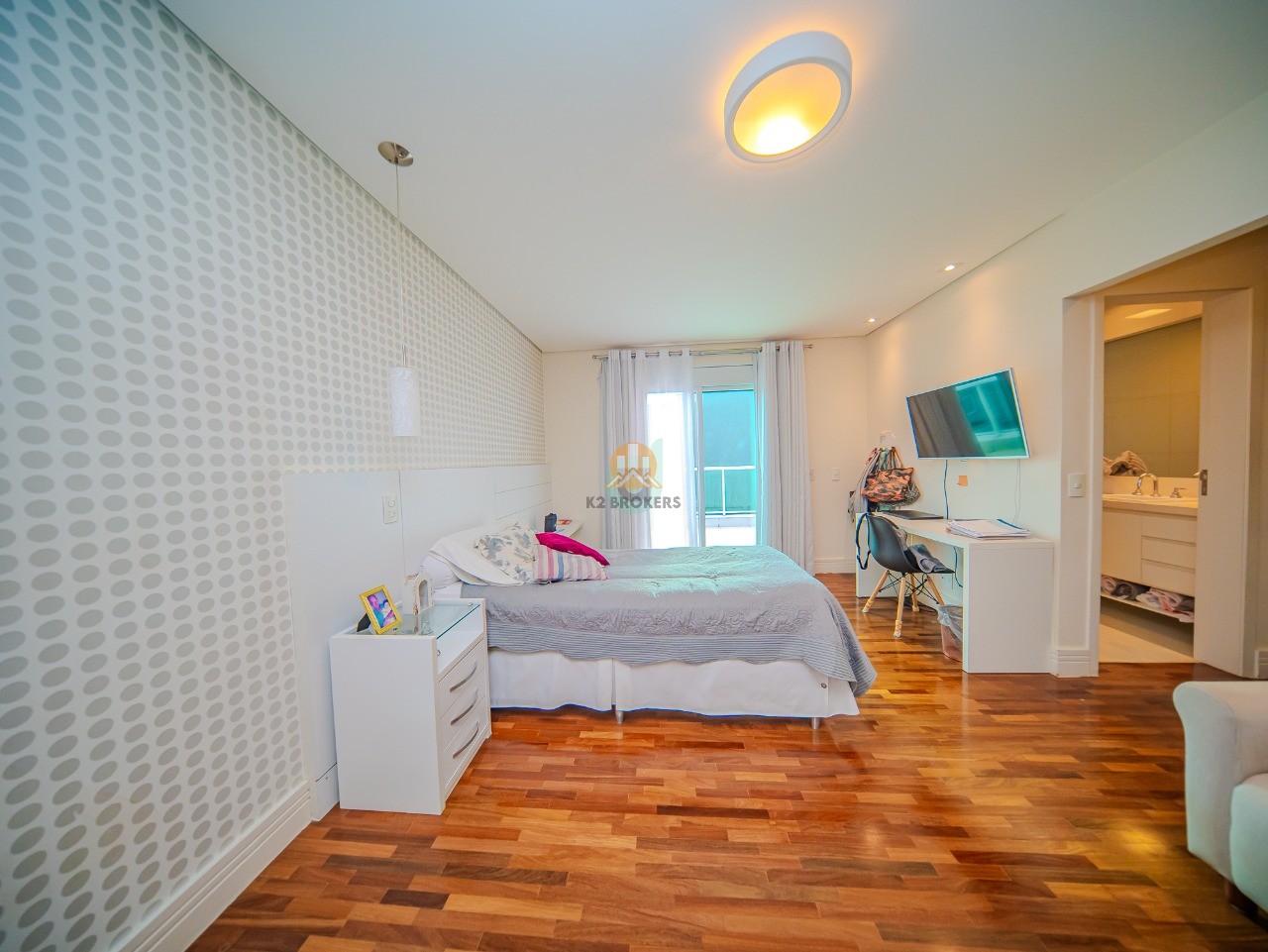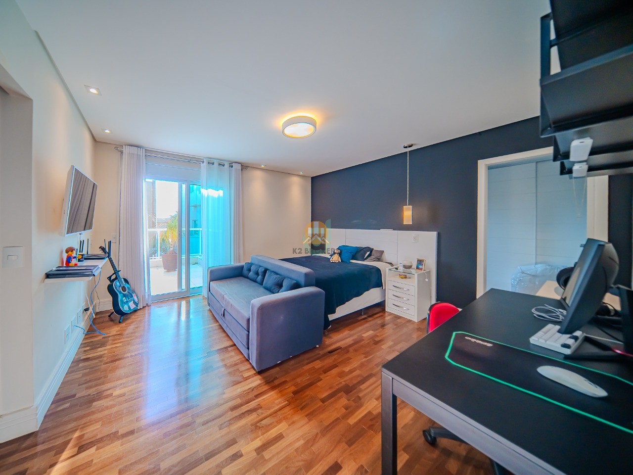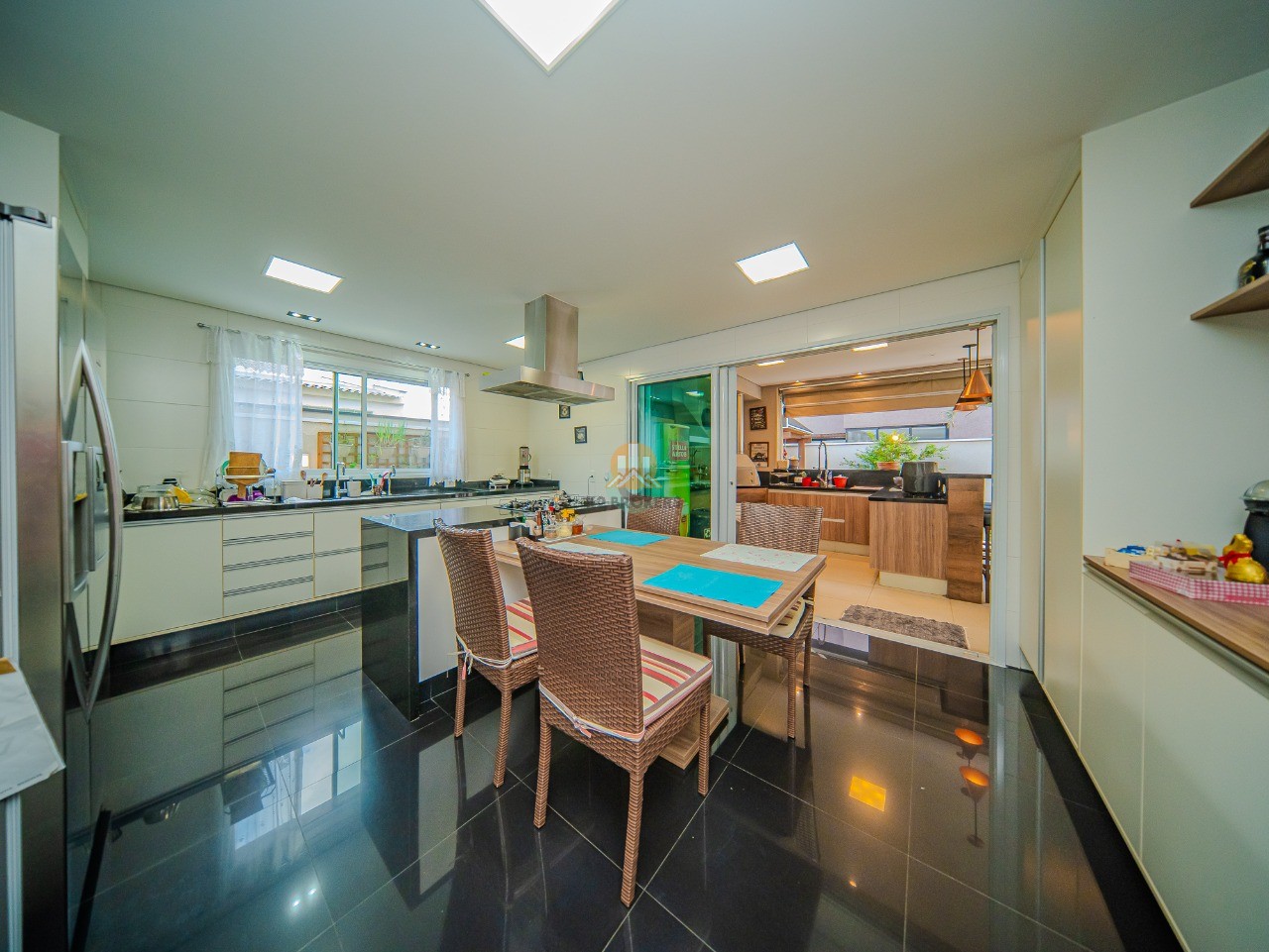 A cozinha planejada com marcenaria de alto padrão e o escritório montado são perfeitos para quem busca um espaço funcional, como um home office. A sala de estar integrada com a área gourmet proporciona momentos únicos em família, e o espaço gourmet completo com churrasqueira, forno de pizza, cooktop e armários planejados é um convite à boa gastronomia.
