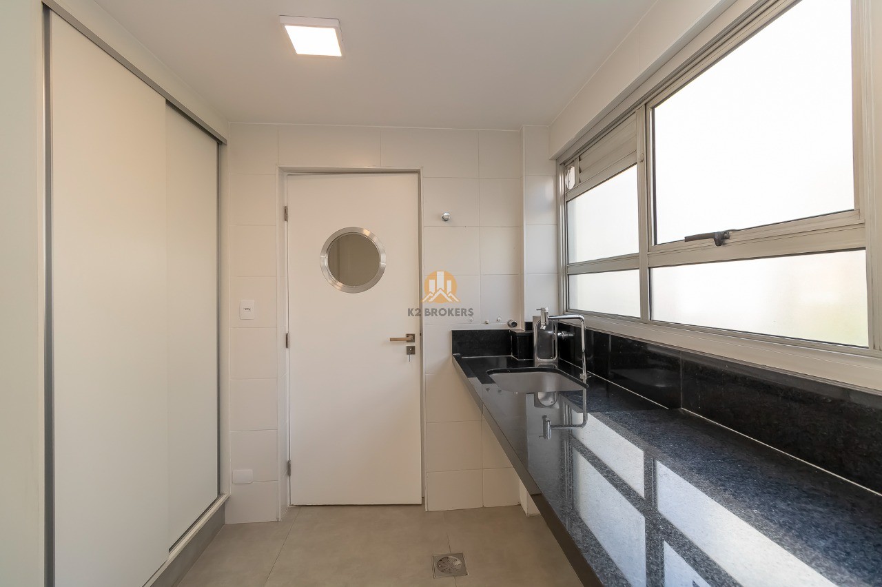 Além disso, o apartamento conta com 3 vagas de garagem, sendo 2 no subsolo e 1 no térreo. Possui também um banheiro social, lavabo, cozinha, copa, área de serviço e banheiro de serviço.
