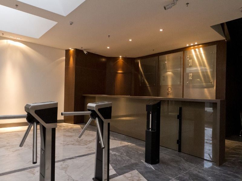 Este Conjunto Corporativo oferece uma área privativa de 939,17m², com salas já equipadas com acabamentos e ar condicionado, além de um hall decorado com sistema de controle de acesso e catracas. Com 808 vagas de estacionamento operacionais, você e seus funcionários não terão problemas para estacionar e 4 elevadores.