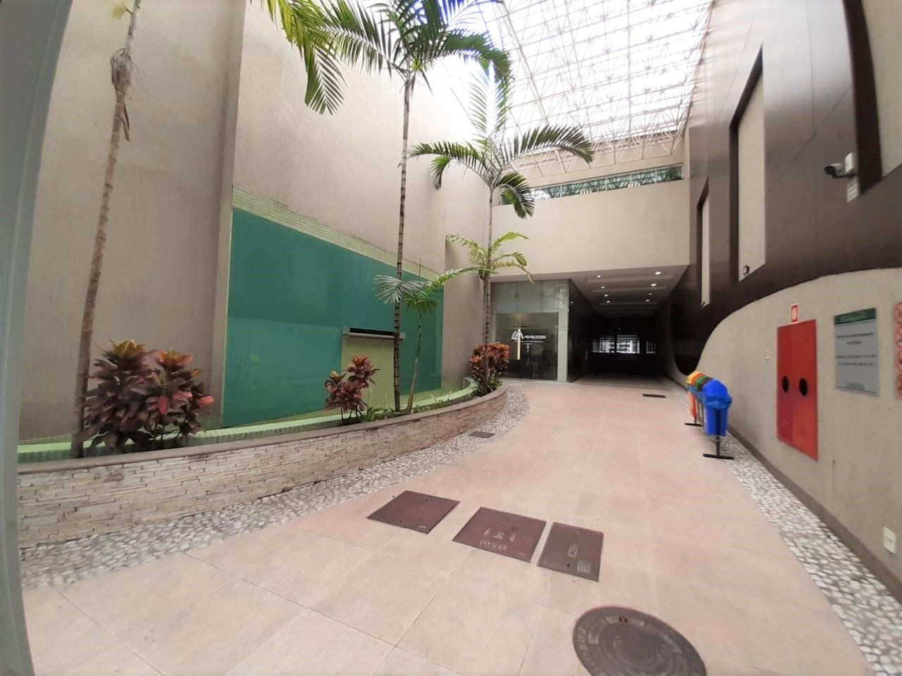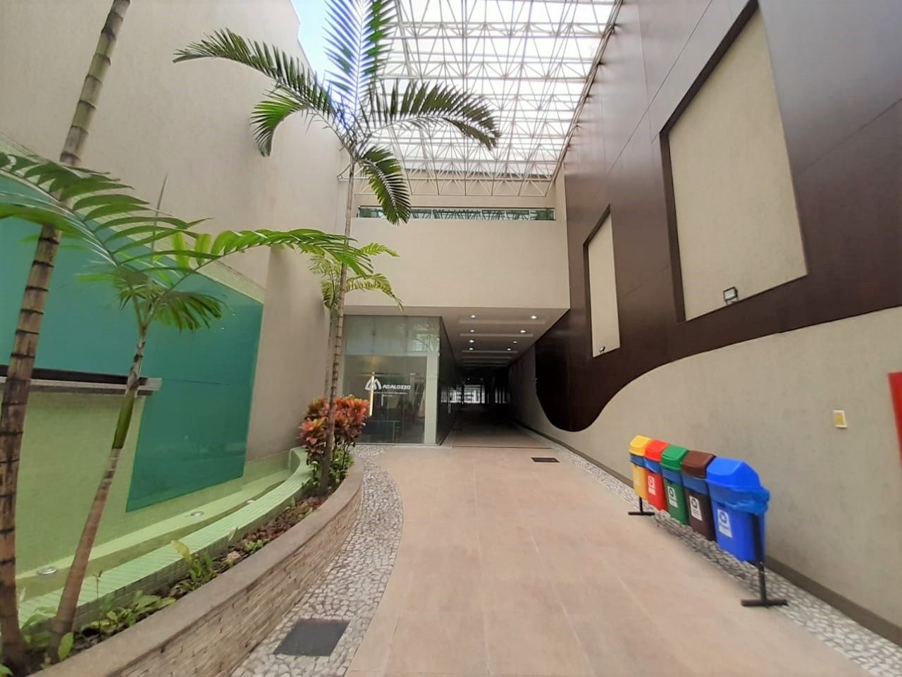 A galeria possui um belíssimo paisagismo, com fonte, espelho de água e iluminação natural, criando um ambiente acolhedor e agradável para clientes e visitantes.