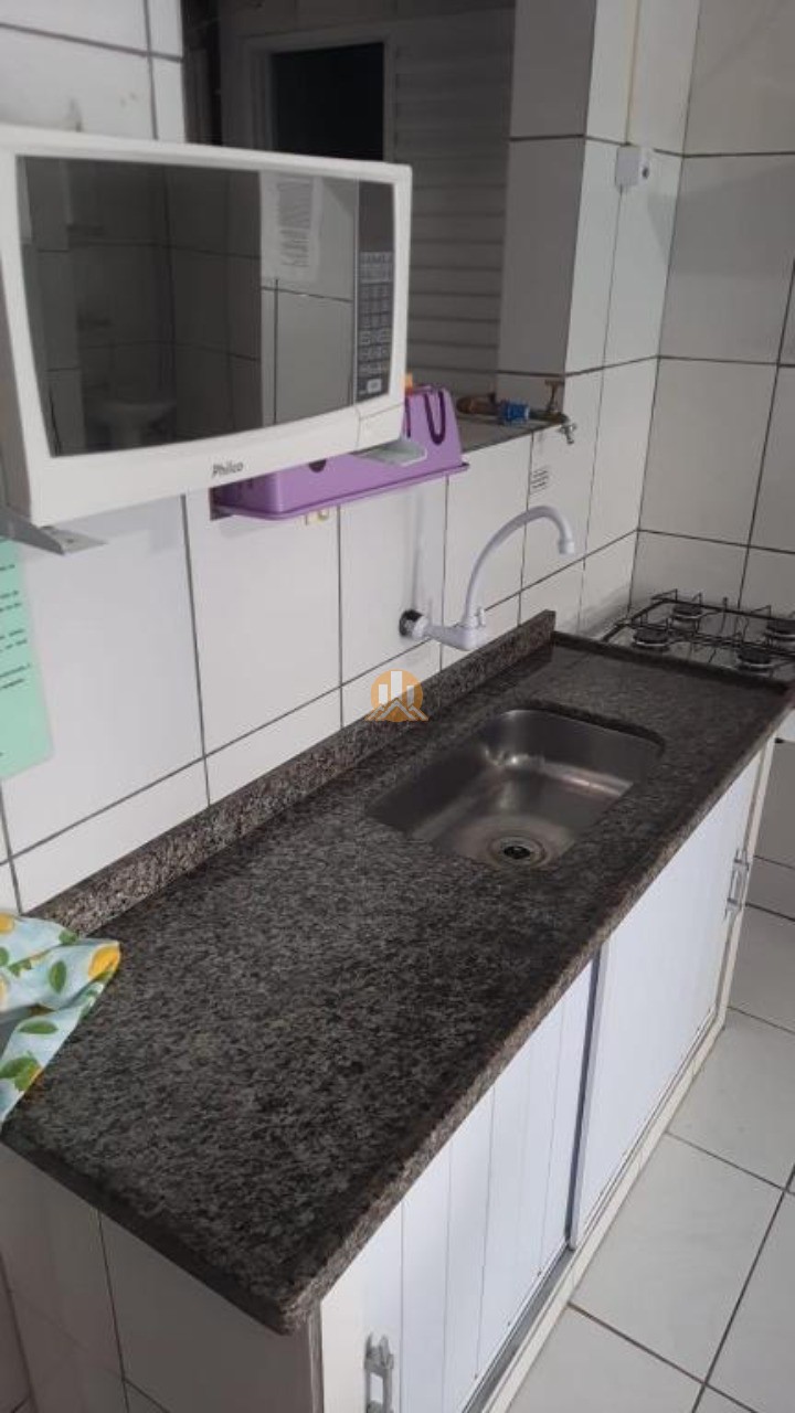 Sala e cozinha equipada (fogão, geladeira, micro-ondas, TV)