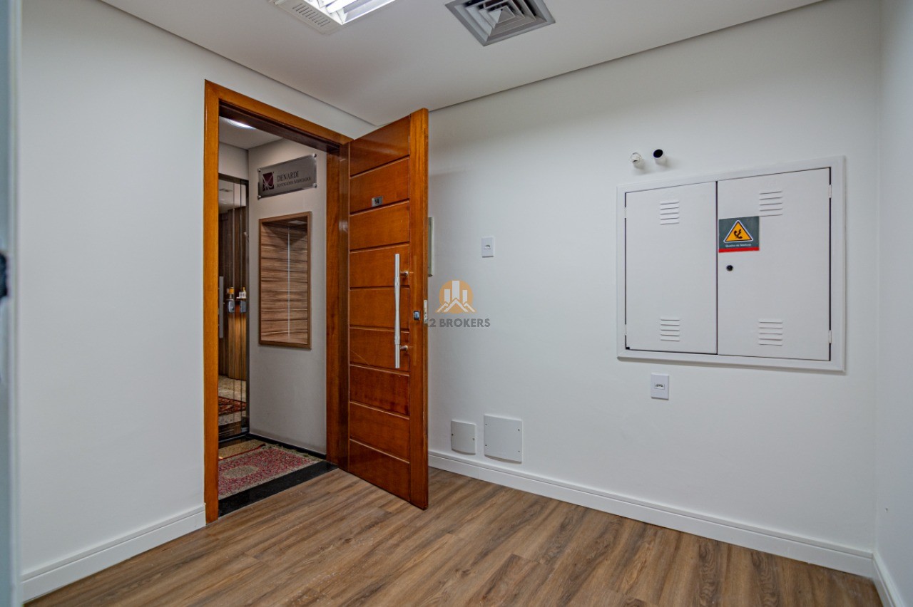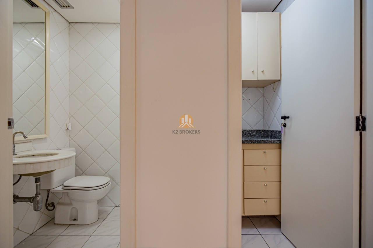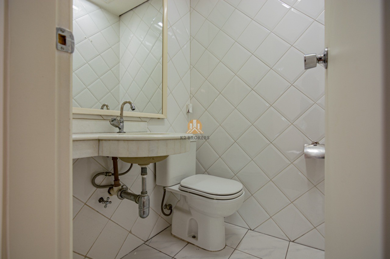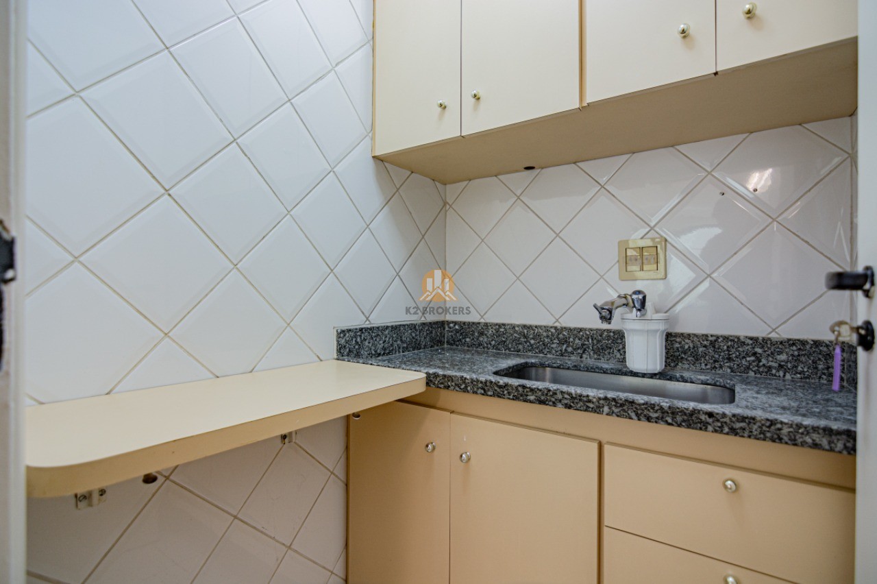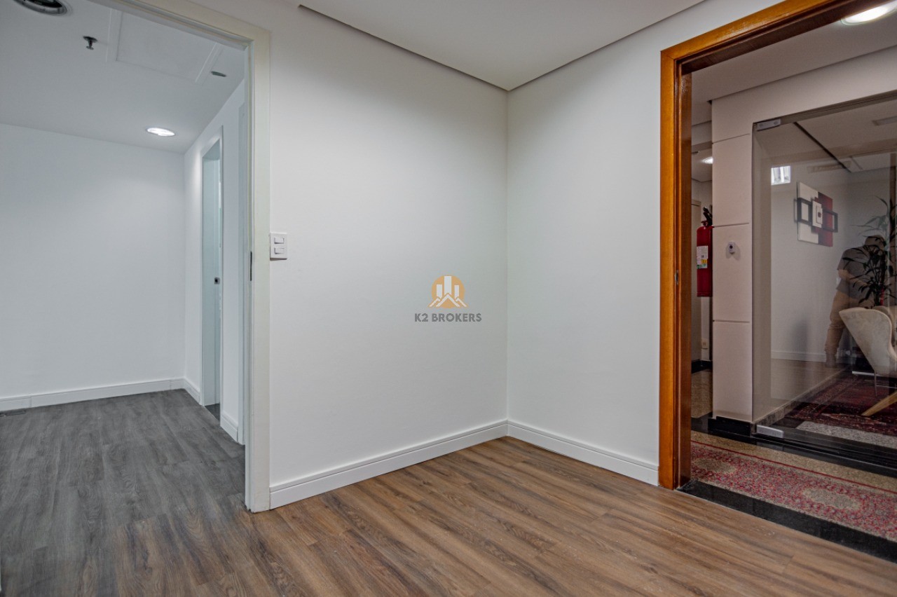 Com grandes janelas de vidro que proporcionam uma vista para um belo jardim, esta sala é iluminada e espaçosa, oferecendo um ambiente agradável para trabalhar. Além disso, conta com ar-condicionado central, lavabo, copa e uma vaga de garagem, proporcionando praticidade e conforto.
