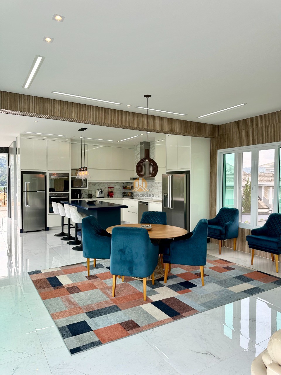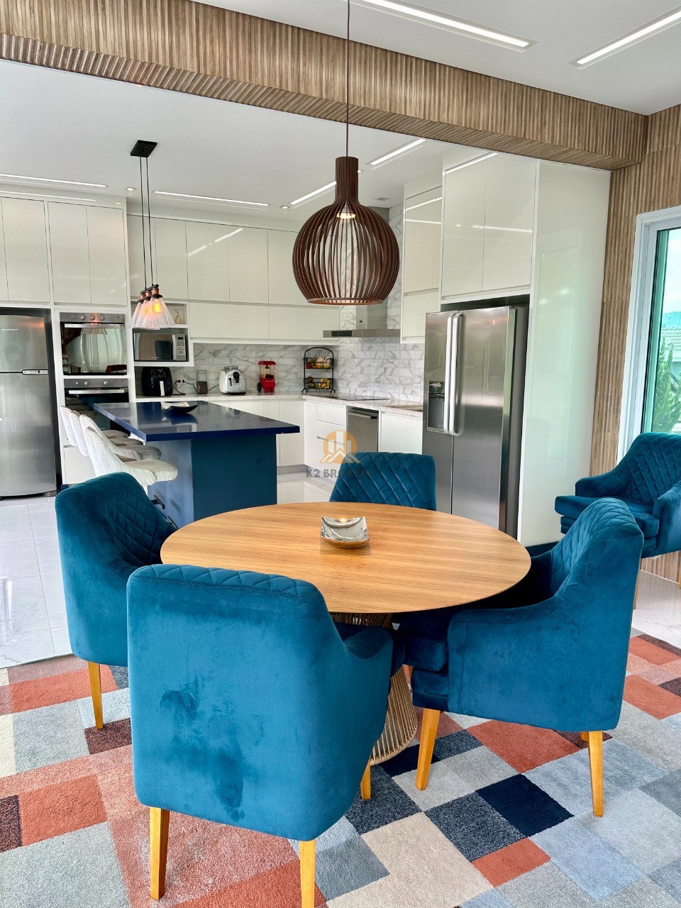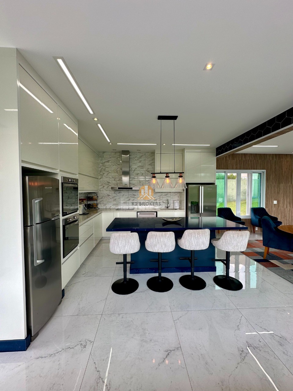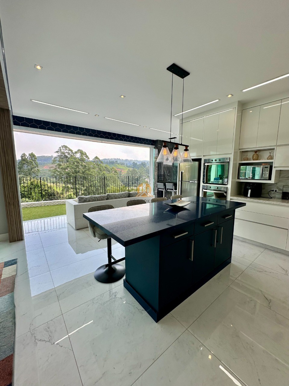 A cozinha é totalmente equipada com eletrodomésticos de ponta, incluindo 2 geladeiras, 2 fornos (elétrico e a gás), lava louças e muito mais, ideal para quem valoriza praticidade e elegância.