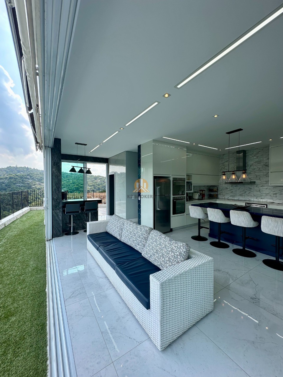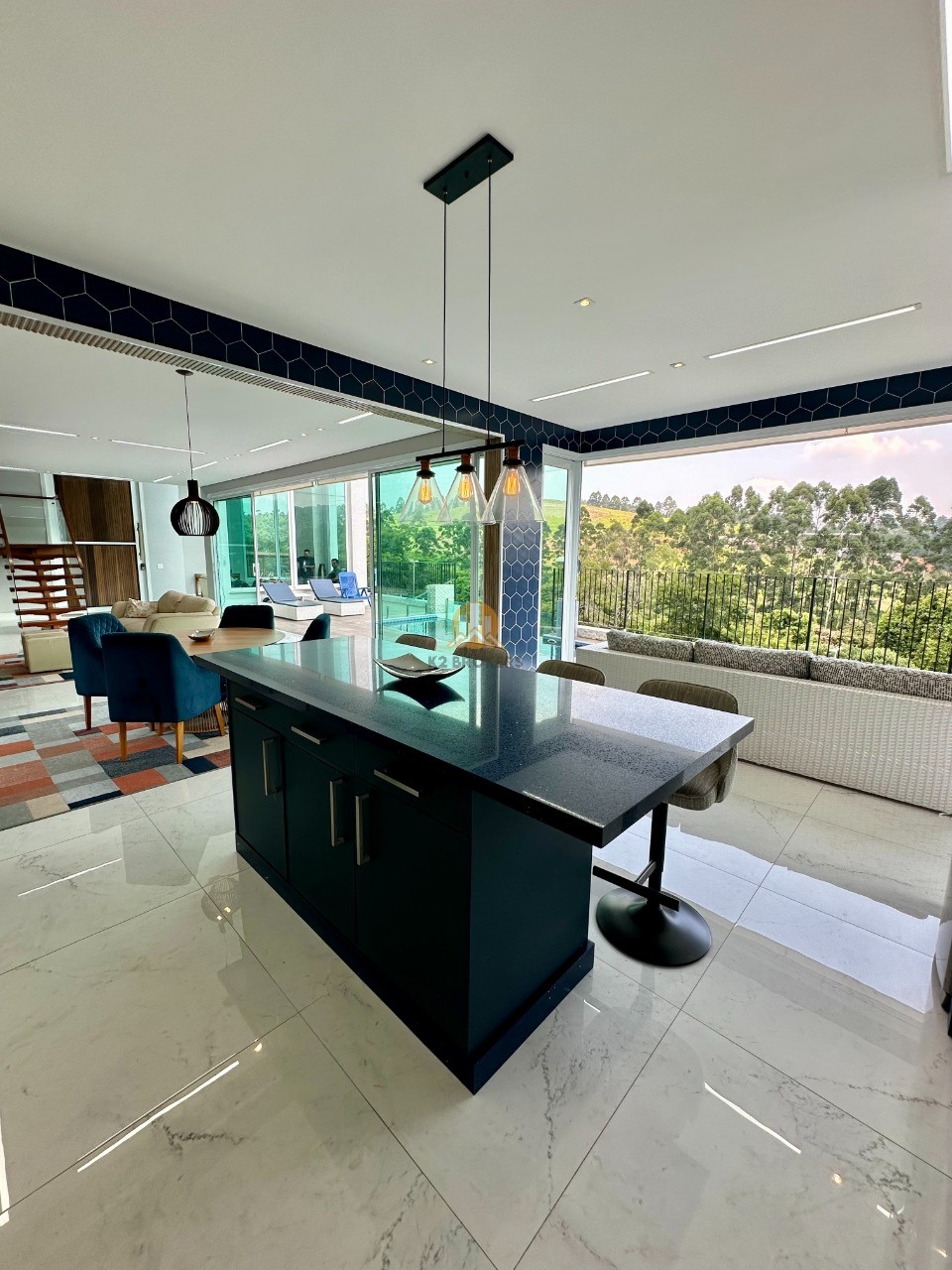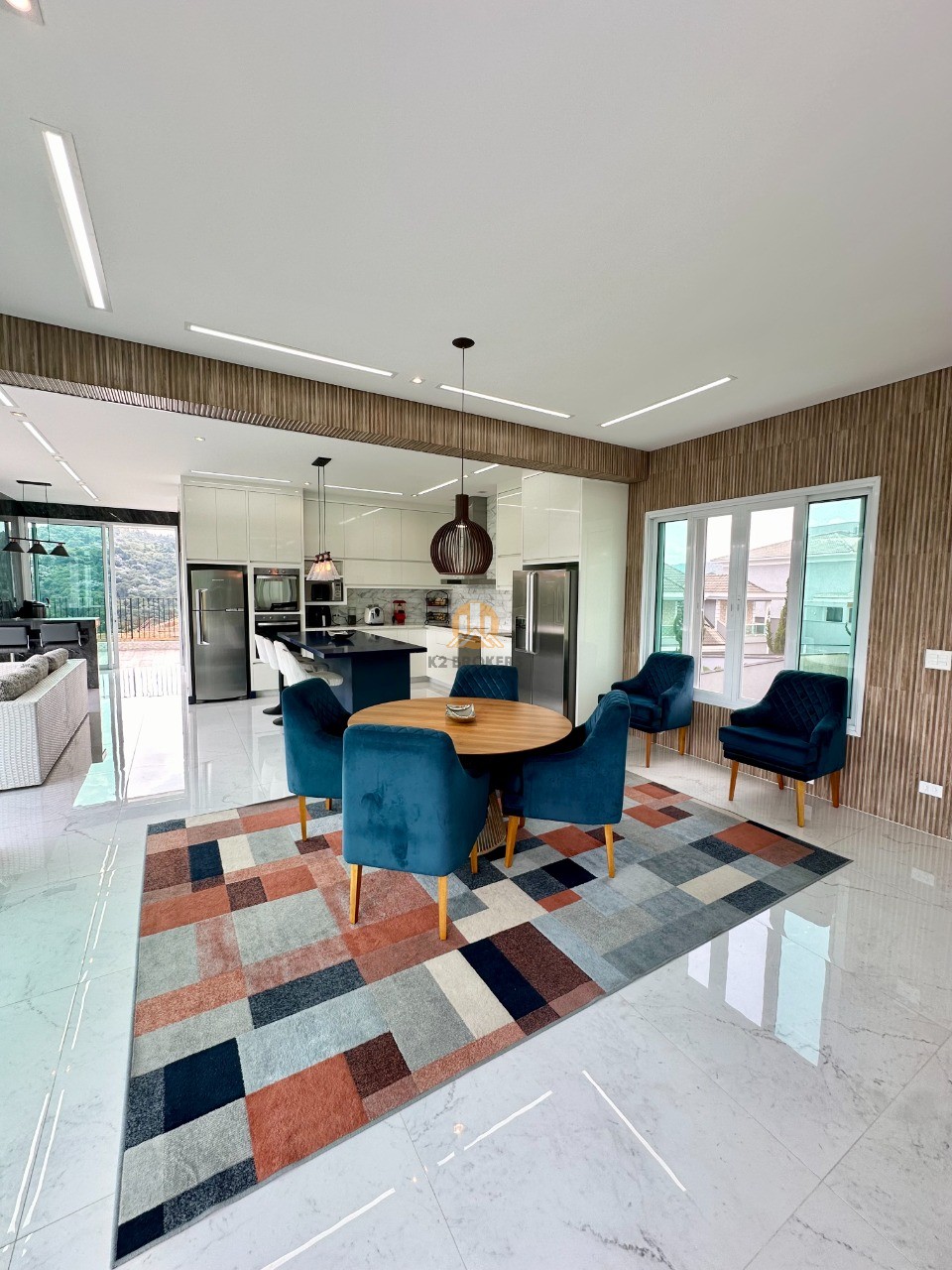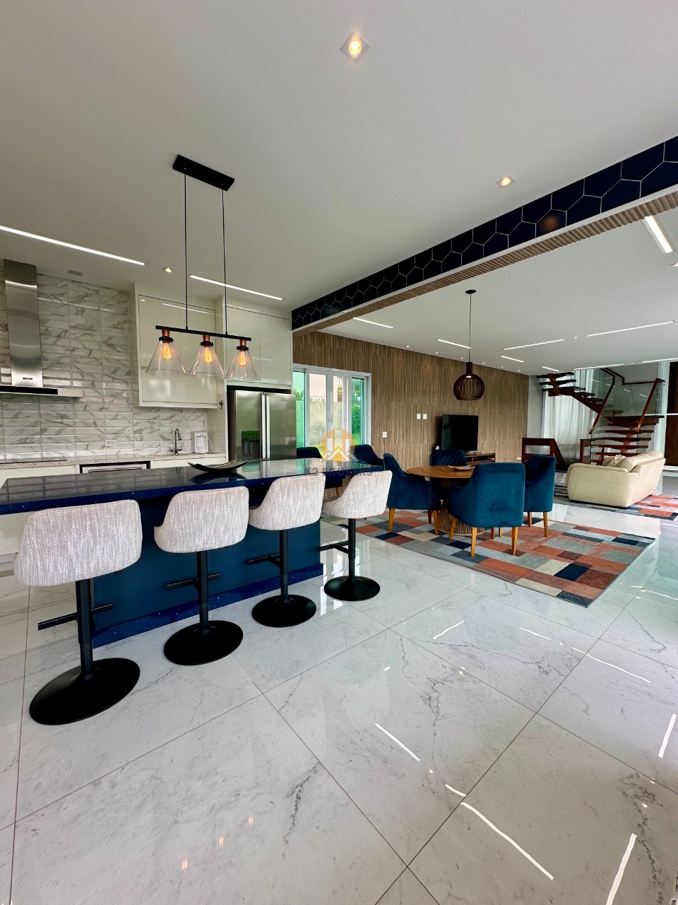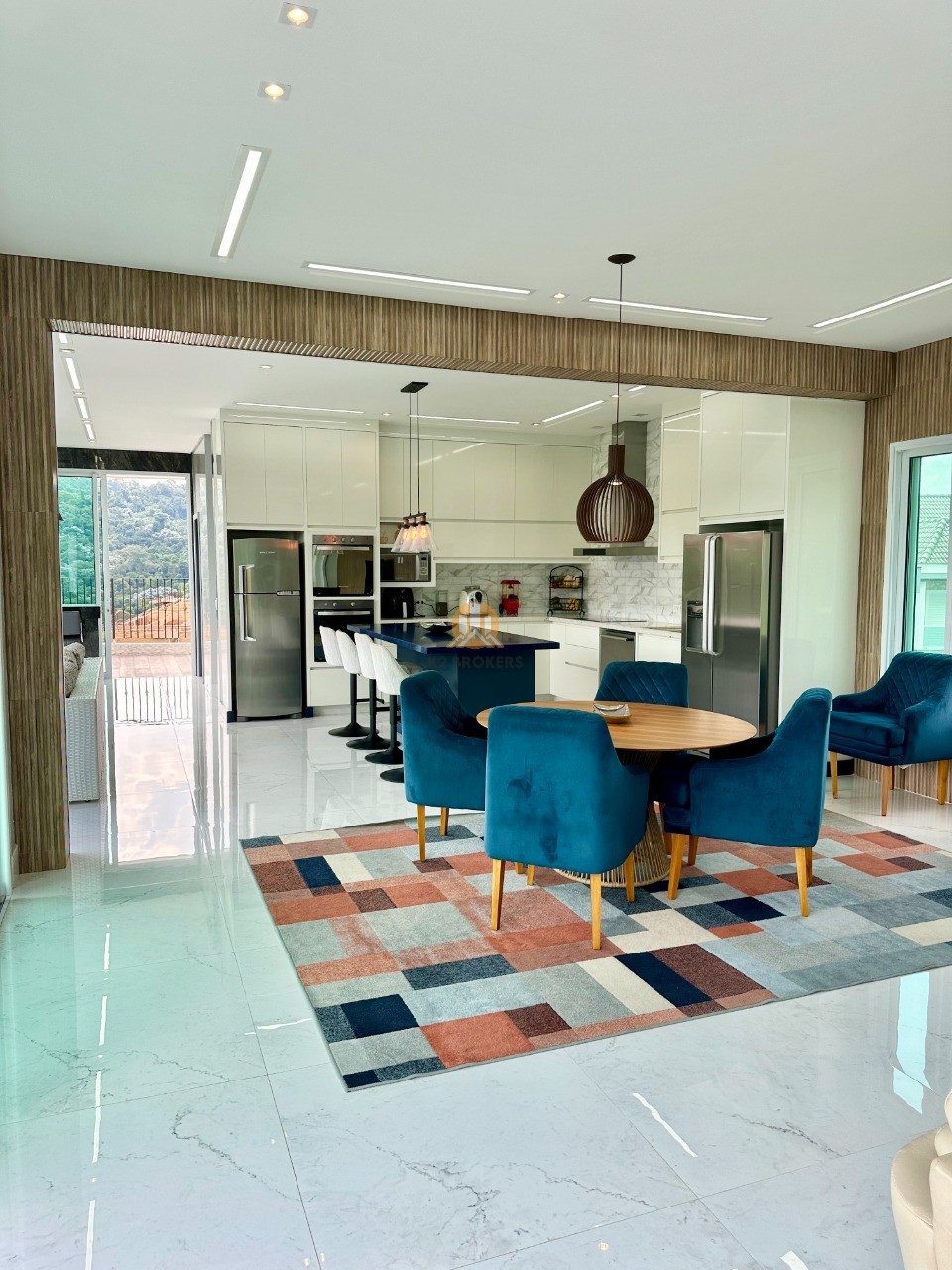 A cozinha é totalmente equipada com eletrodomésticos de ponta, incluindo 2 geladeiras, 2 fornos (elétrico e a gás), lava louças e muito mais, ideal para quem valoriza praticidade e elegância.