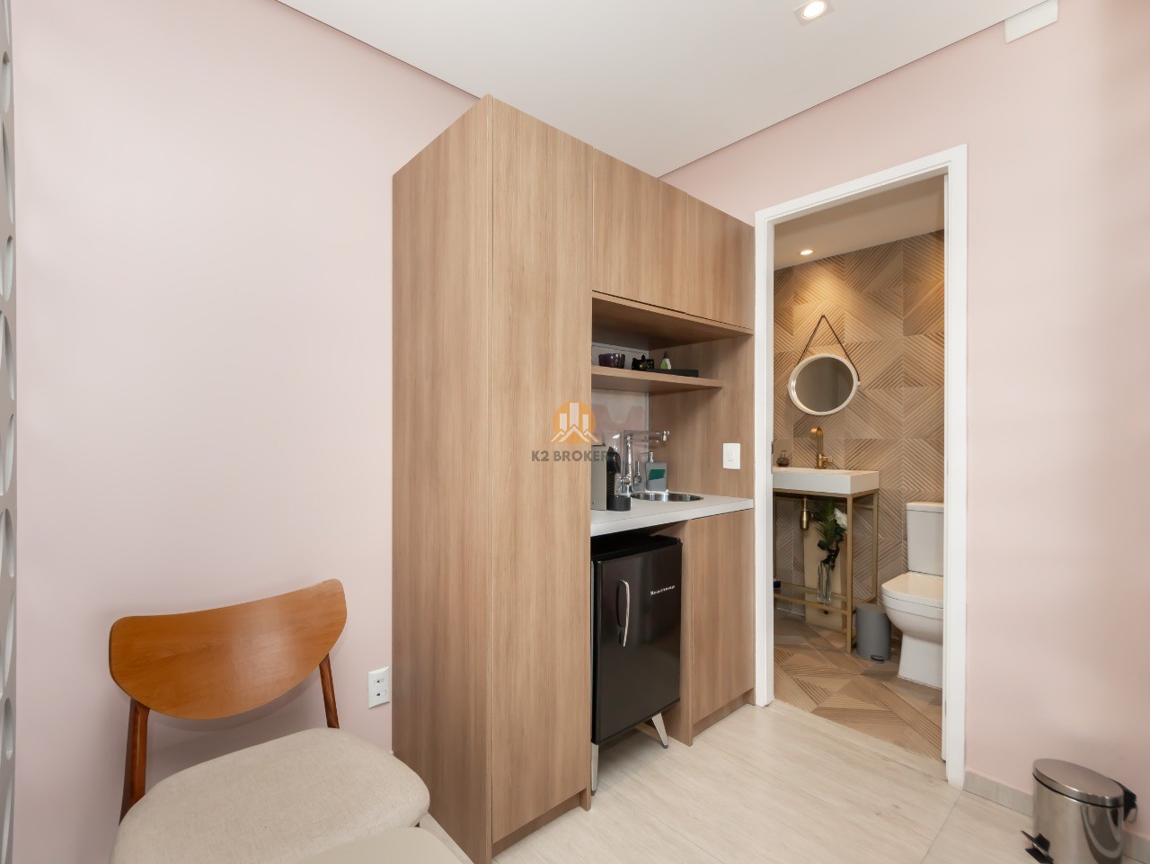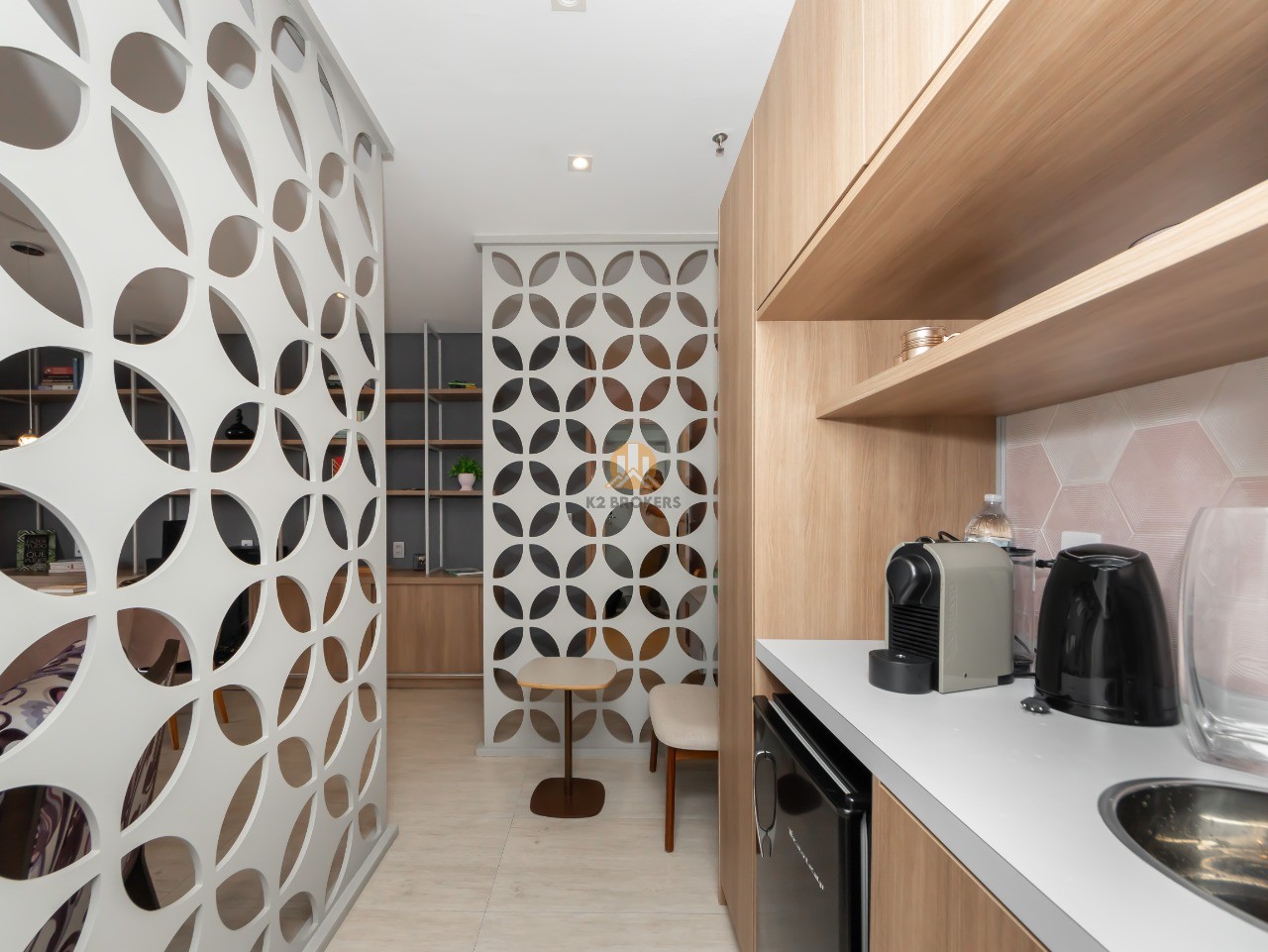 Totalmente reformado e pronto para uso, este espaço conta com uma sala ampla e bem iluminada, banheiro, vaga de garagem, varanda com área técnica, armários planejados, sala de reunião para eventos, estacionamento rotativo, portaria com controle de acesso e monitoramento por câmeras.